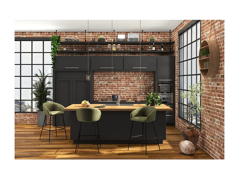 CHLOE-Sedia da bar in tessuto verde (x2)