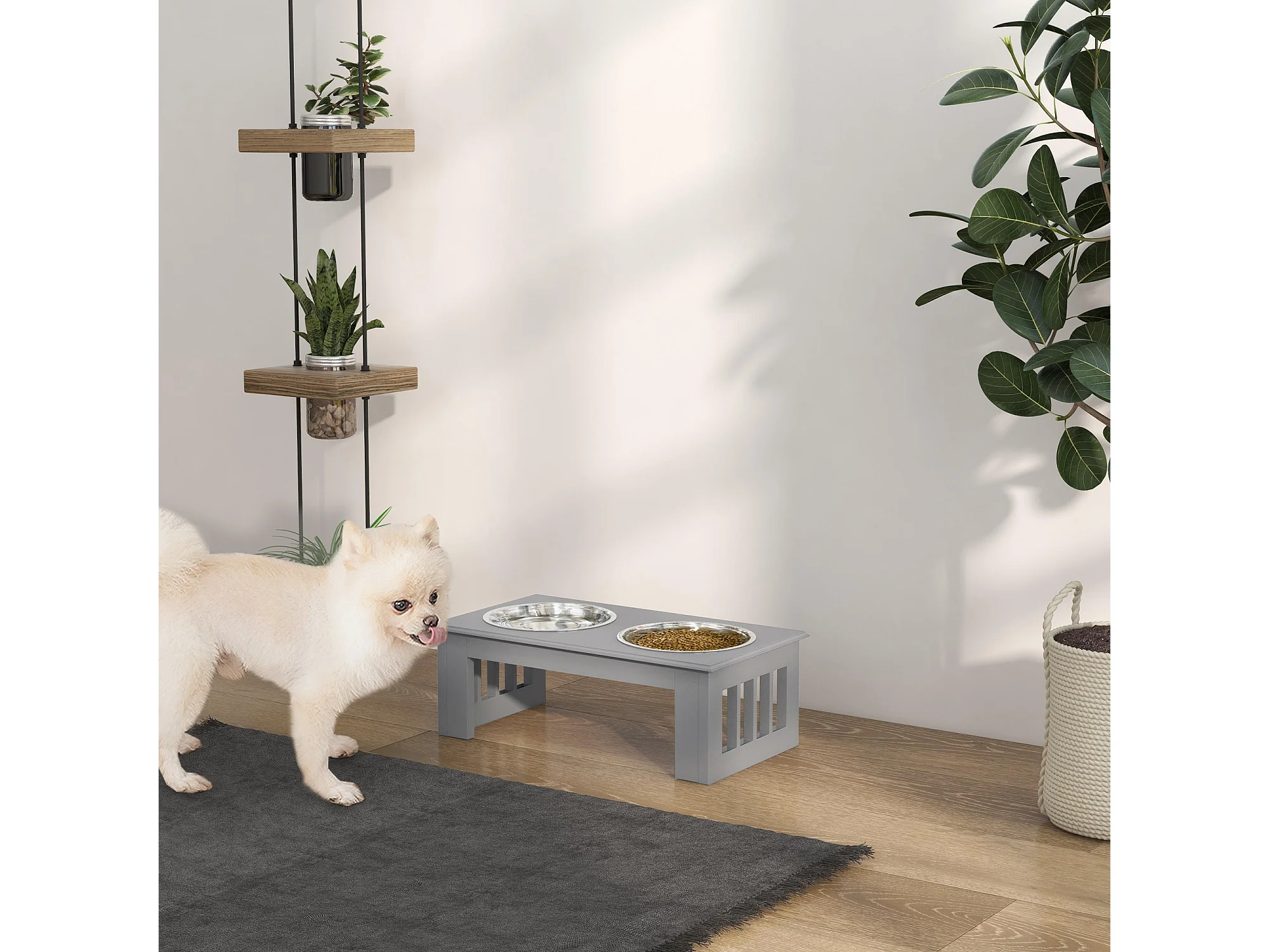 Portaciotole rialzato per cani con 2 ciotole in acciaio inox