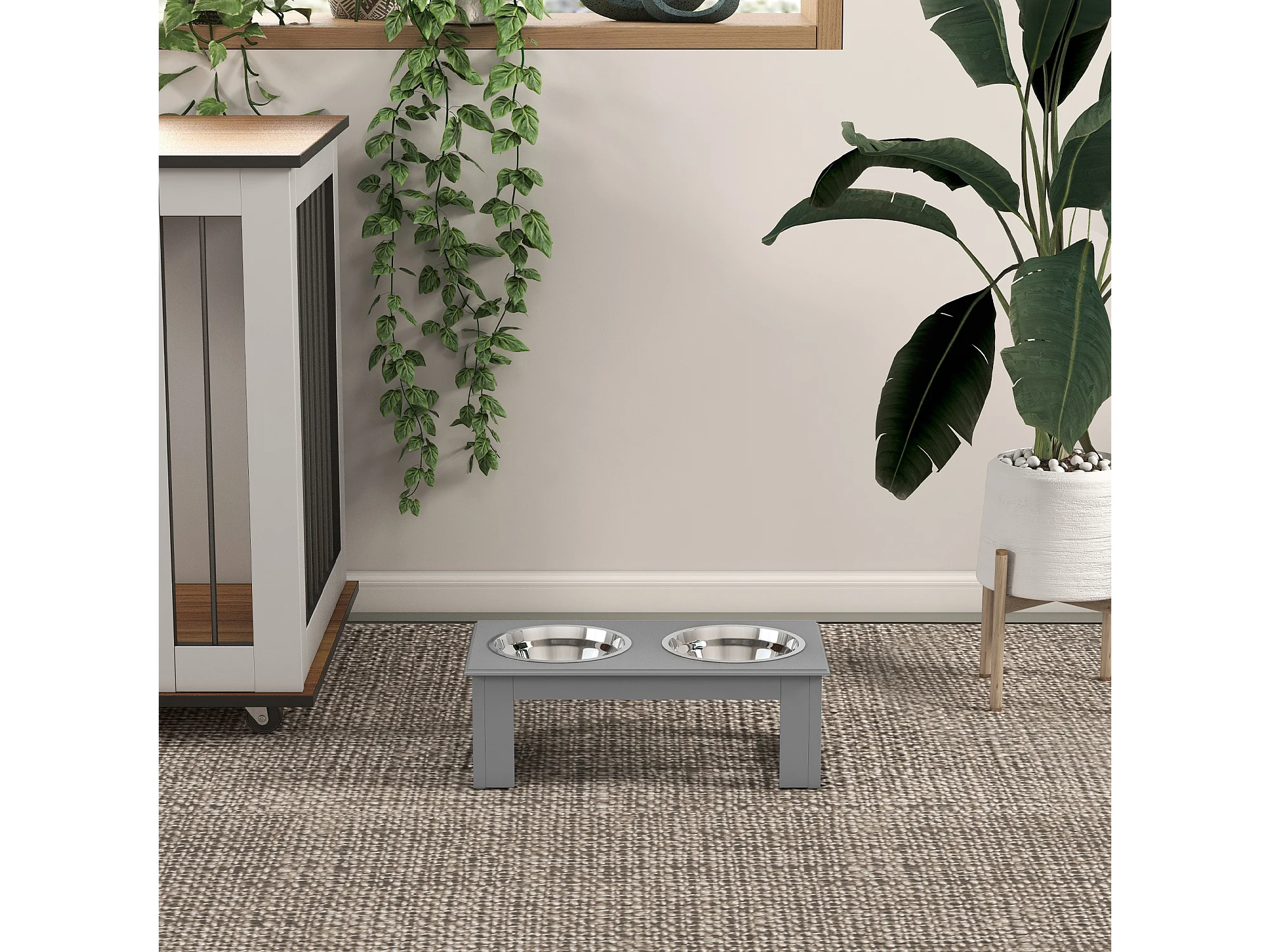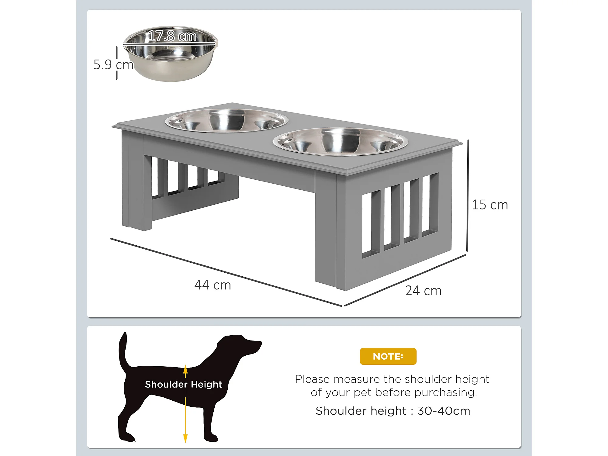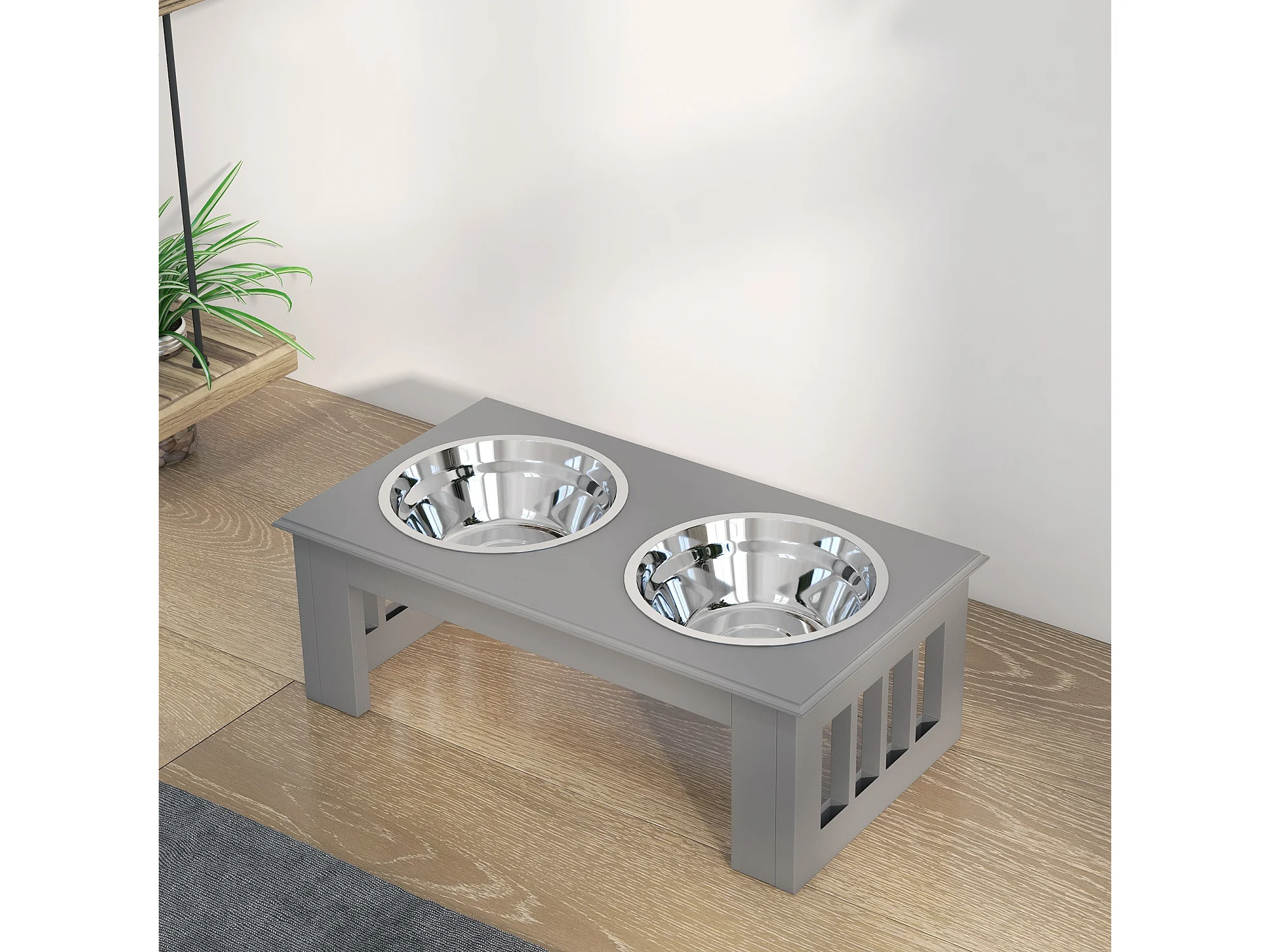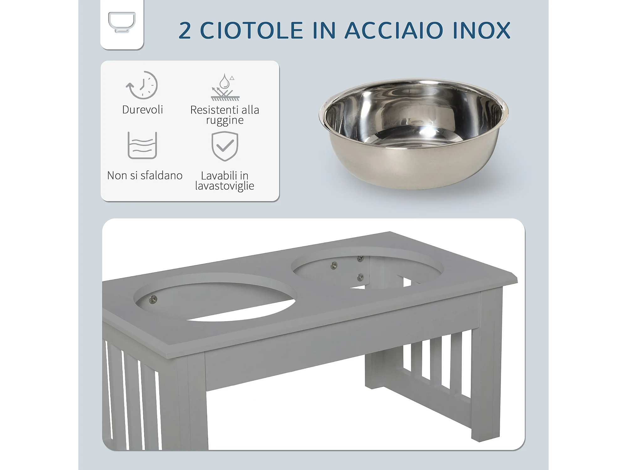 Ciotola rialzata per cani in acciaio inossidabile 2 scodelle grigio