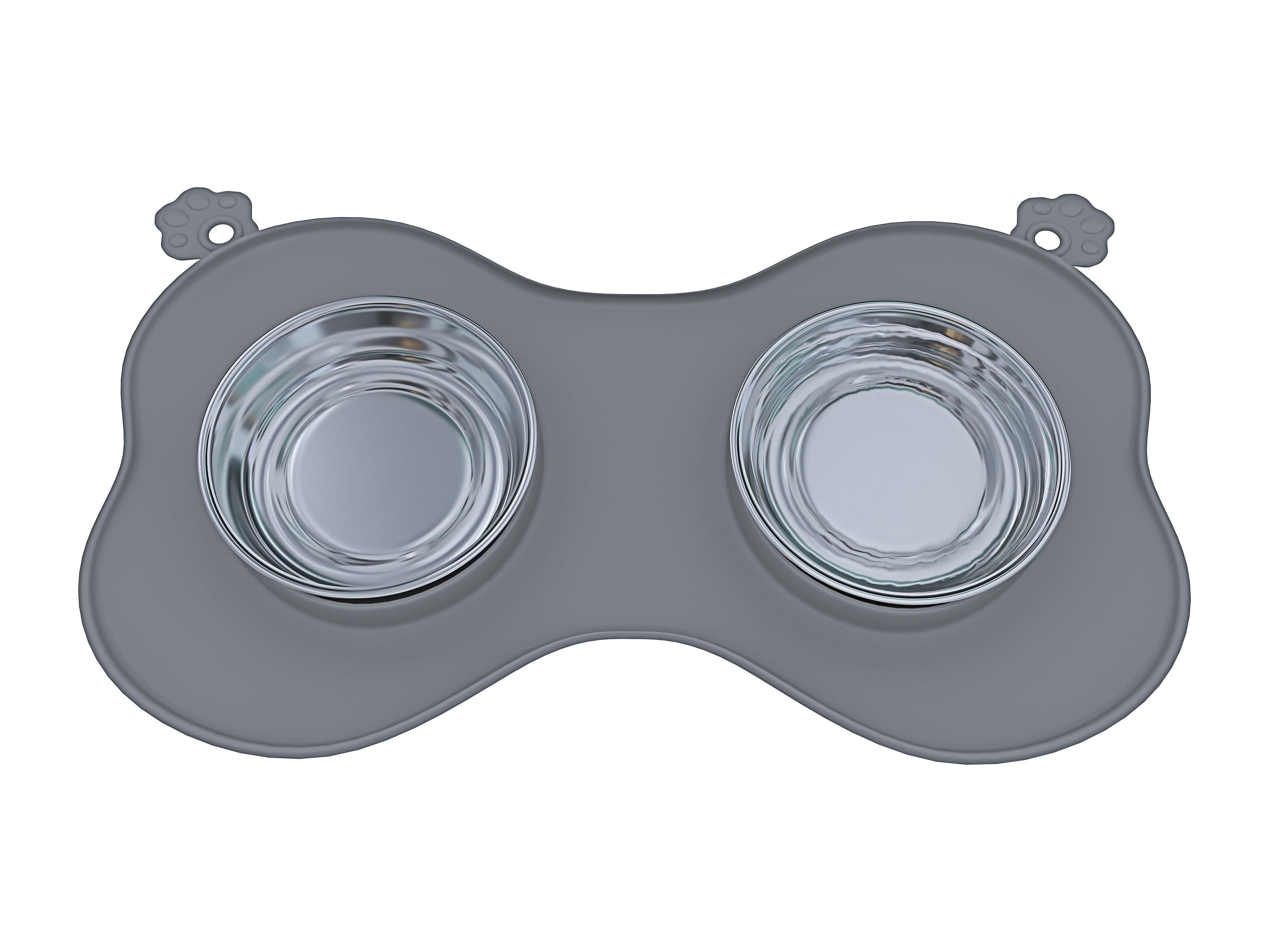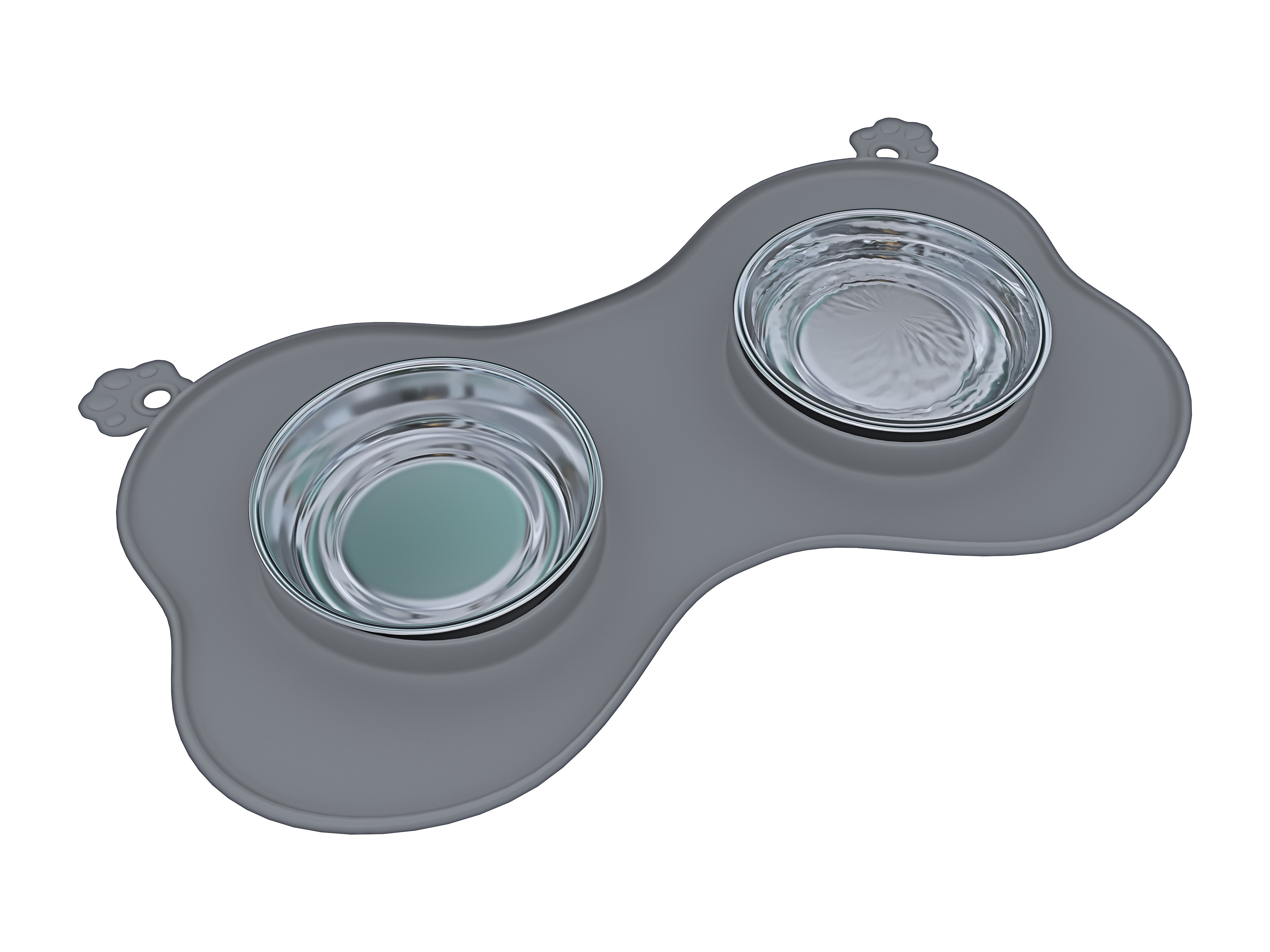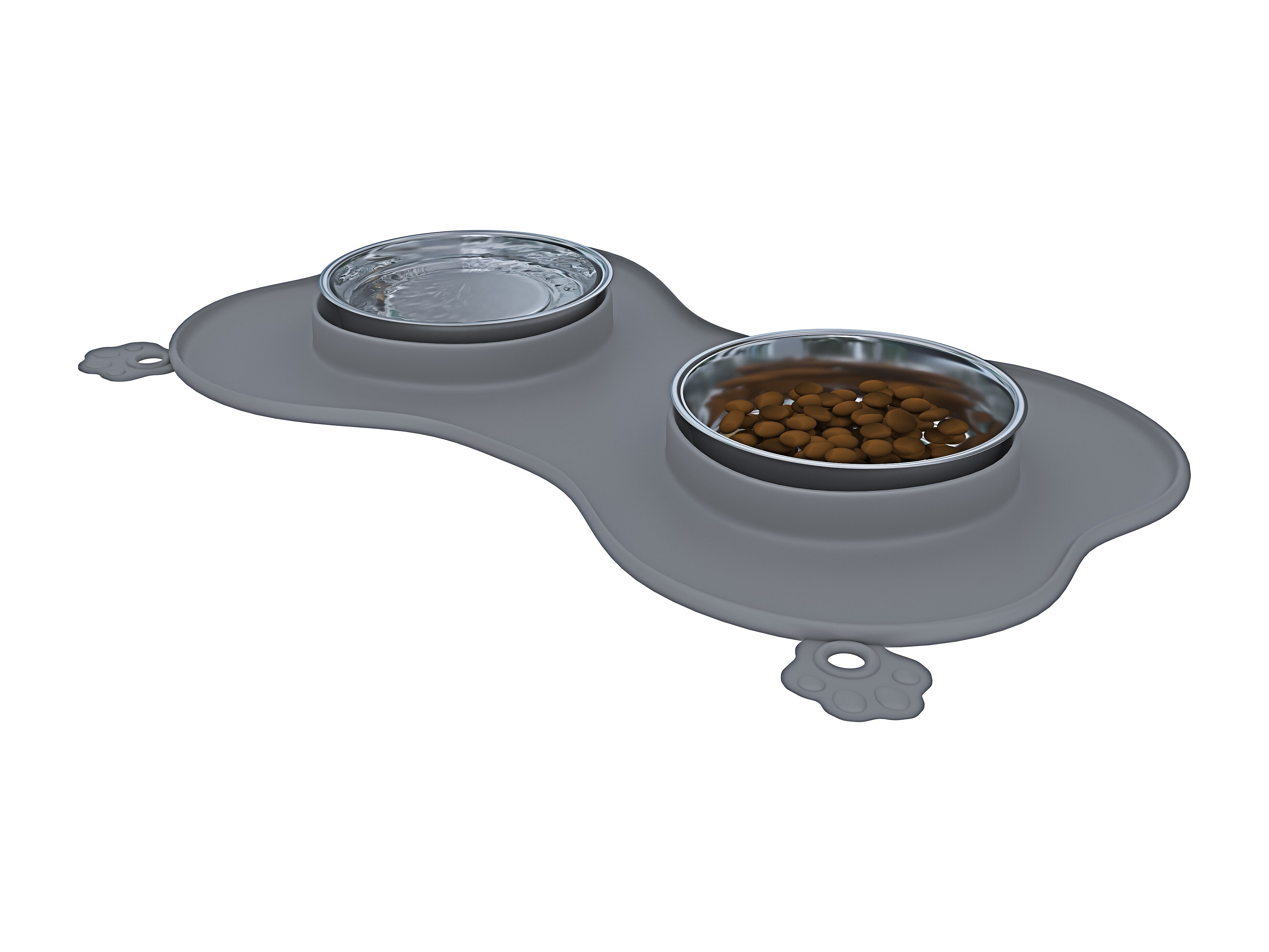 Barrow - Ciotole per cani in acciaio inox con tappetini in silicone grigio 35 x 25 x 3 cm