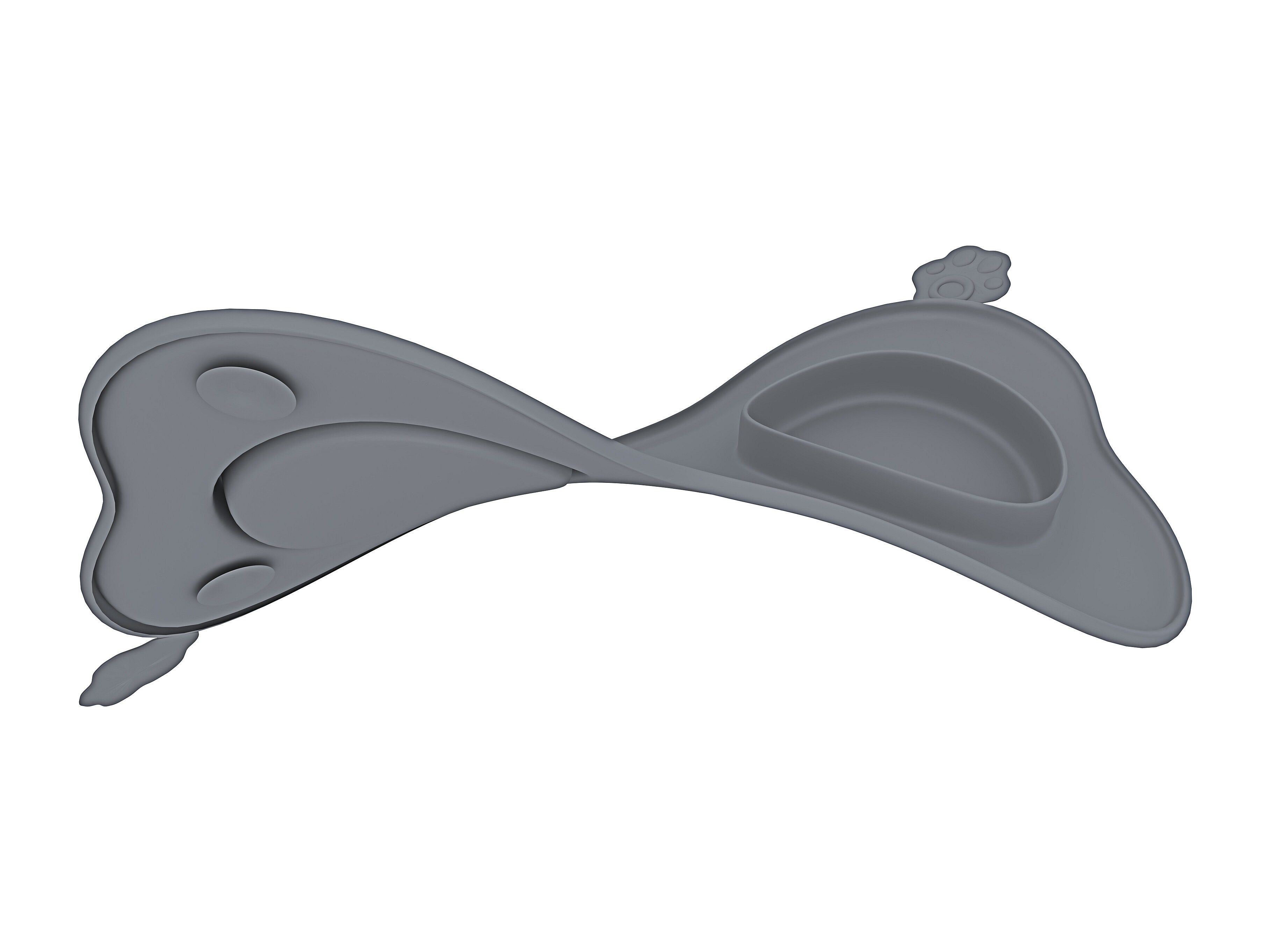 Ciotola Per Cani Gatti 3 In 1 Alimentazione Lenta Acciaio Inox Croccantini Acqua Tappetino in Silicone Antiribaltamento con Ventose 52 x 35 Cm Grigio