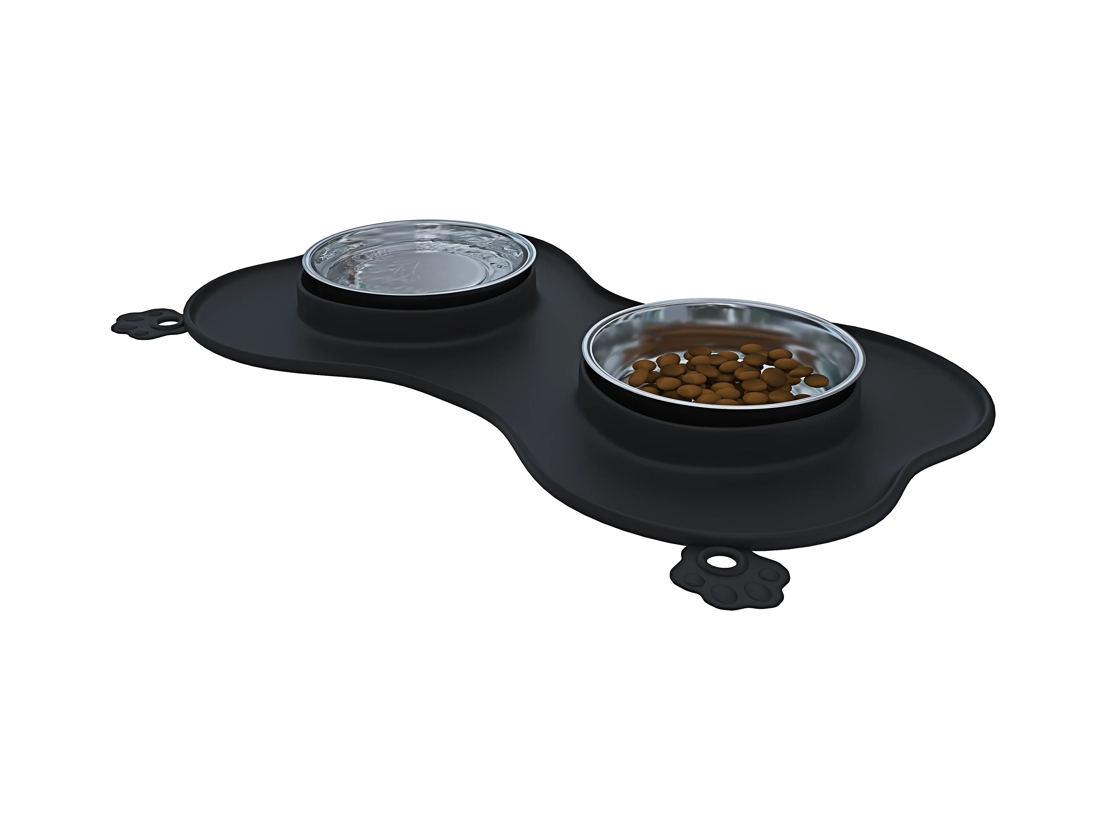 Ciotole Per Cani Gatti 3 In 1 Doppia Ciotola In Acciaio Inox Cibo Croccantini Acqua Tappetino In Silicone Antiribaltamento Antiscivolo Con Ventose(35 x 25 Cm, Nero)