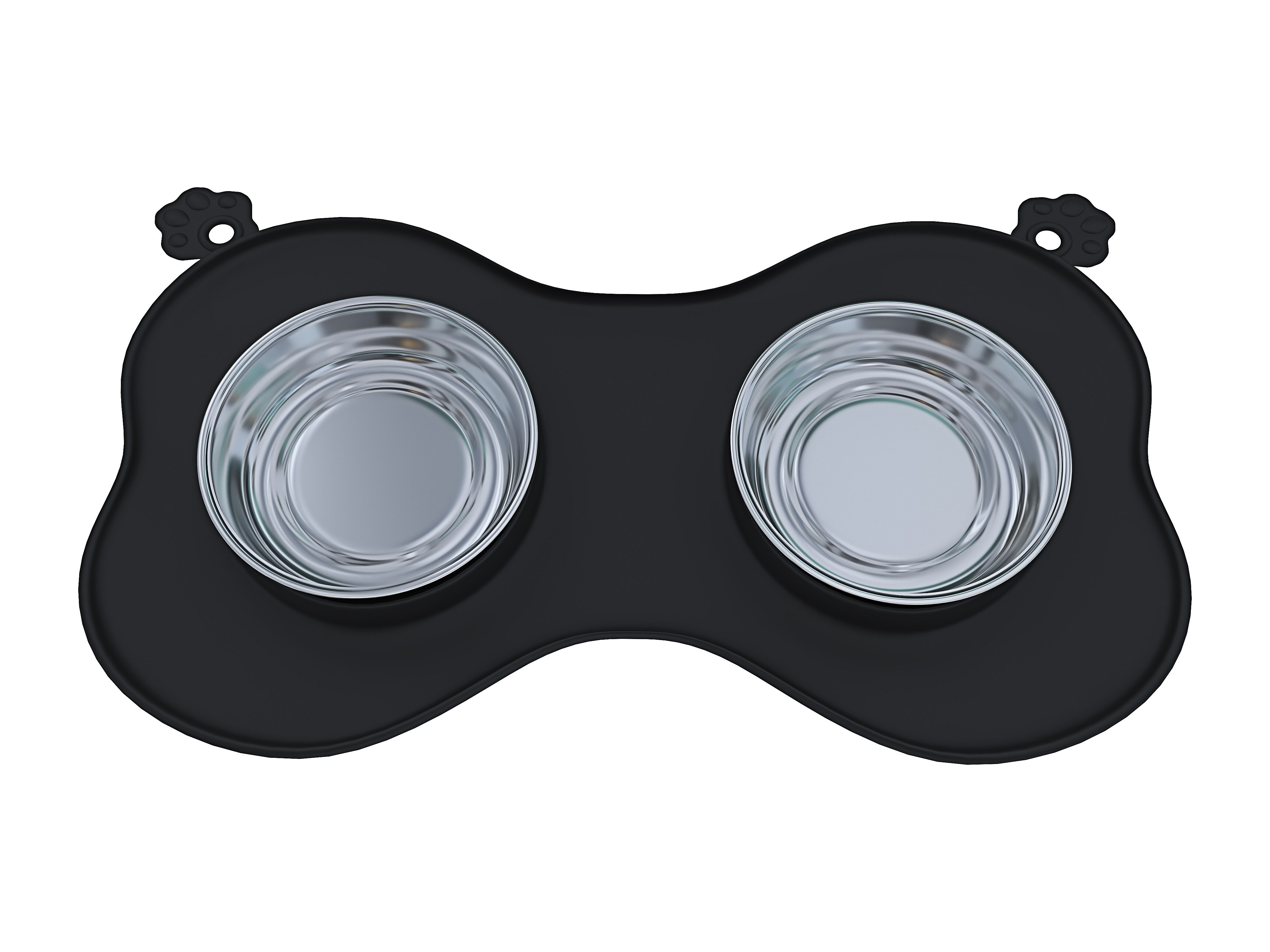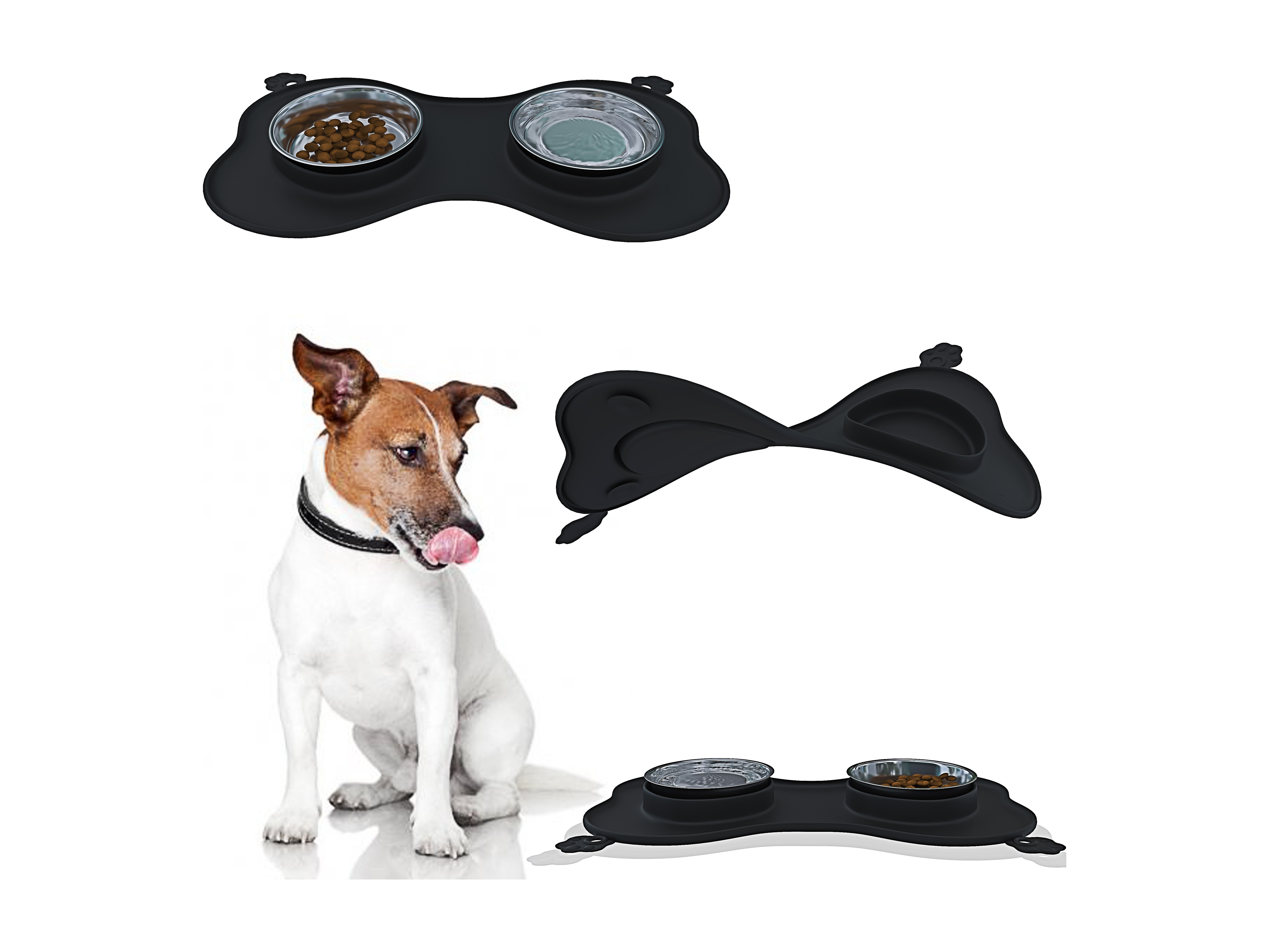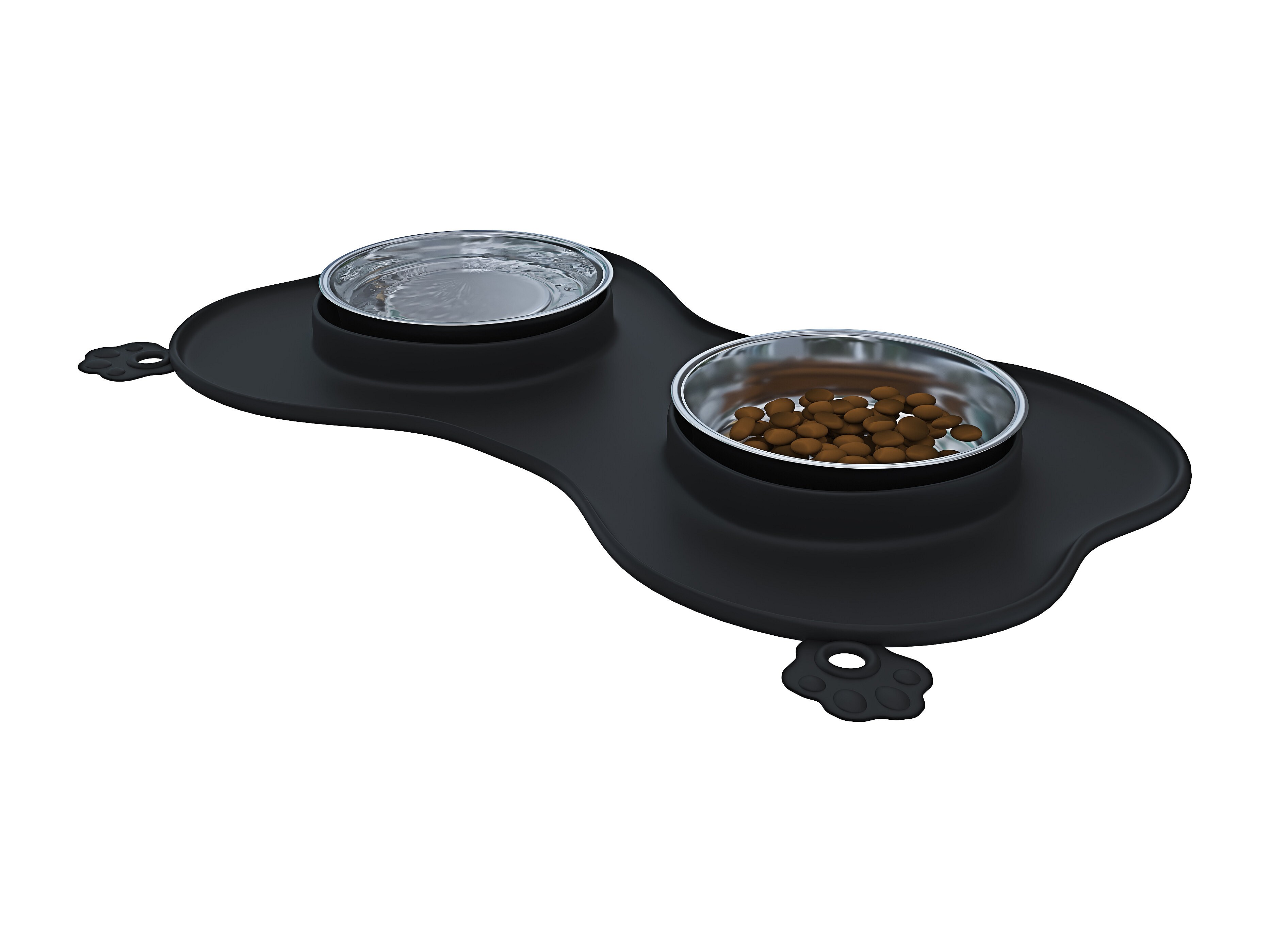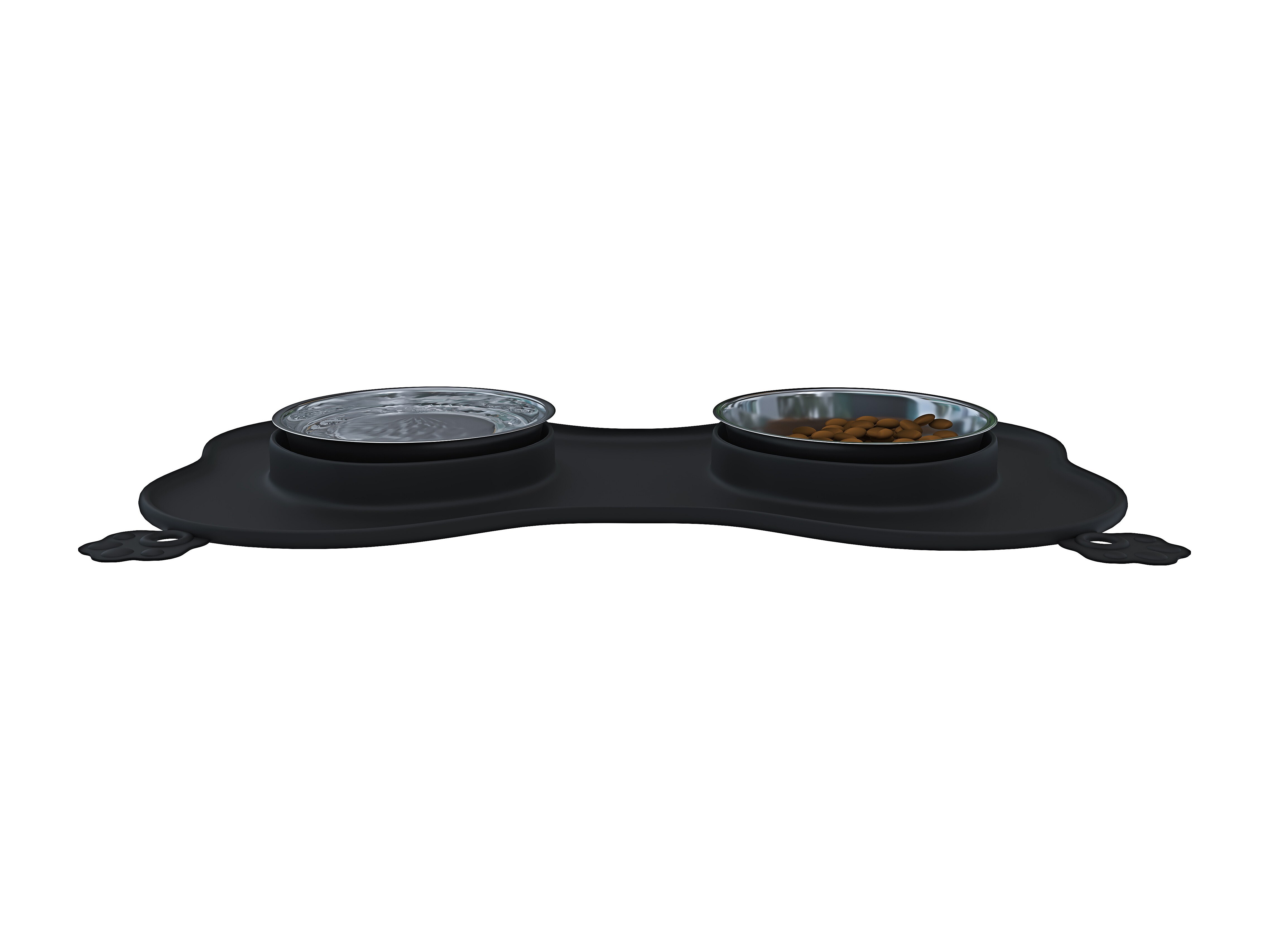 Barrow L - Ciotole per cani in acciaio inox con tappetini in silicone nero 52 x 35 x 3.5 cm