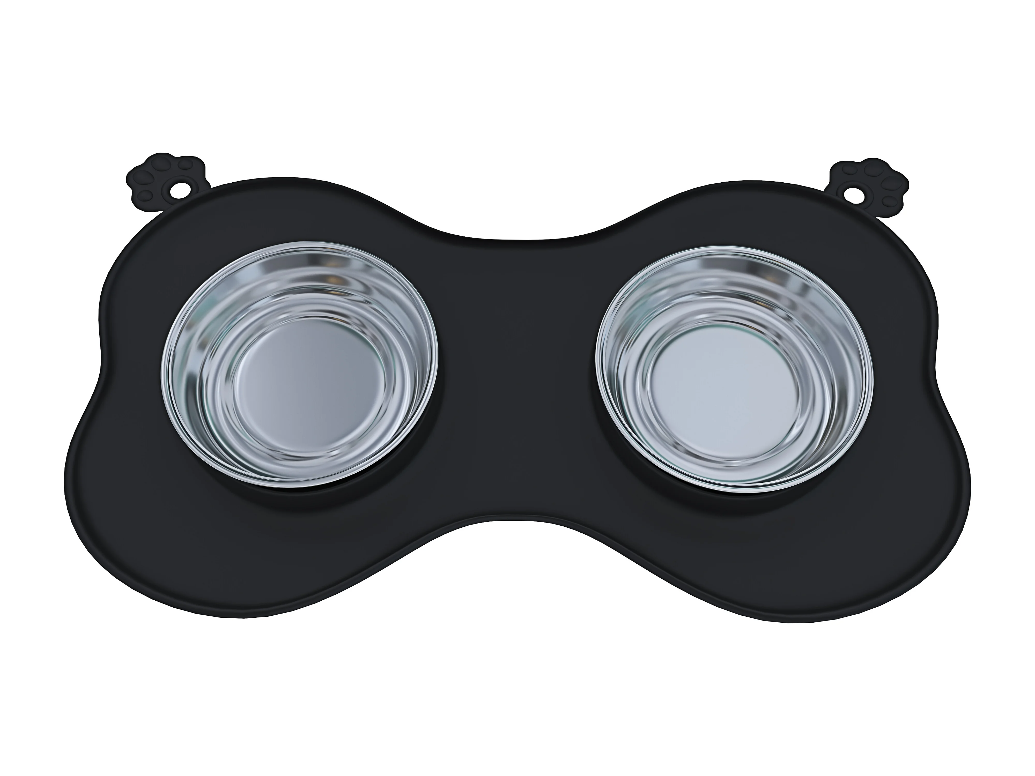 Ciotole Per Cani Gatti 3 In 1 Doppia Ciotola In Acciaio Inox Cibo Croccantini Tappetino In Silicone Antiribaltamento Antiscivolo Con Ventose (52 x 35 Cm, Nero)