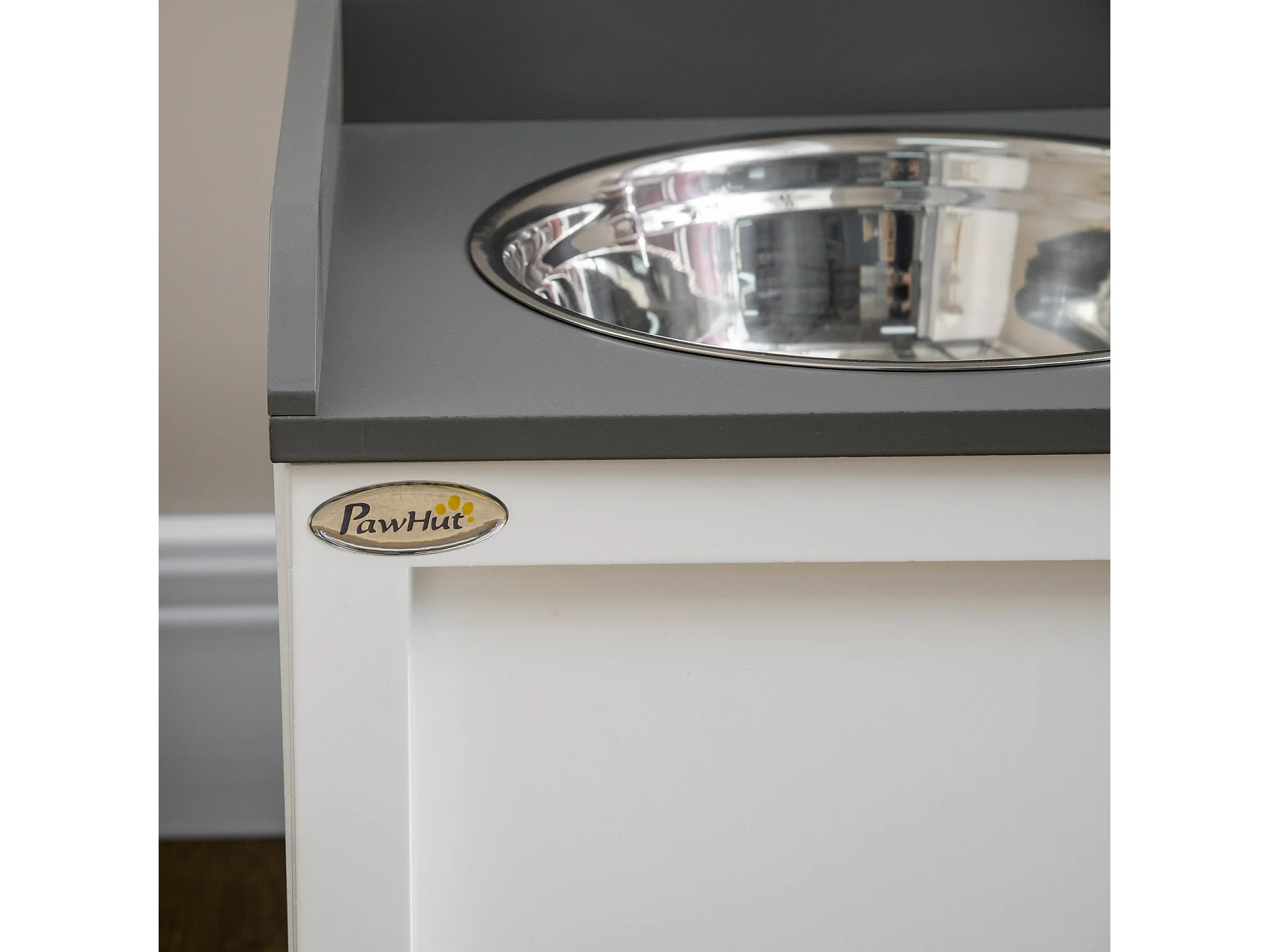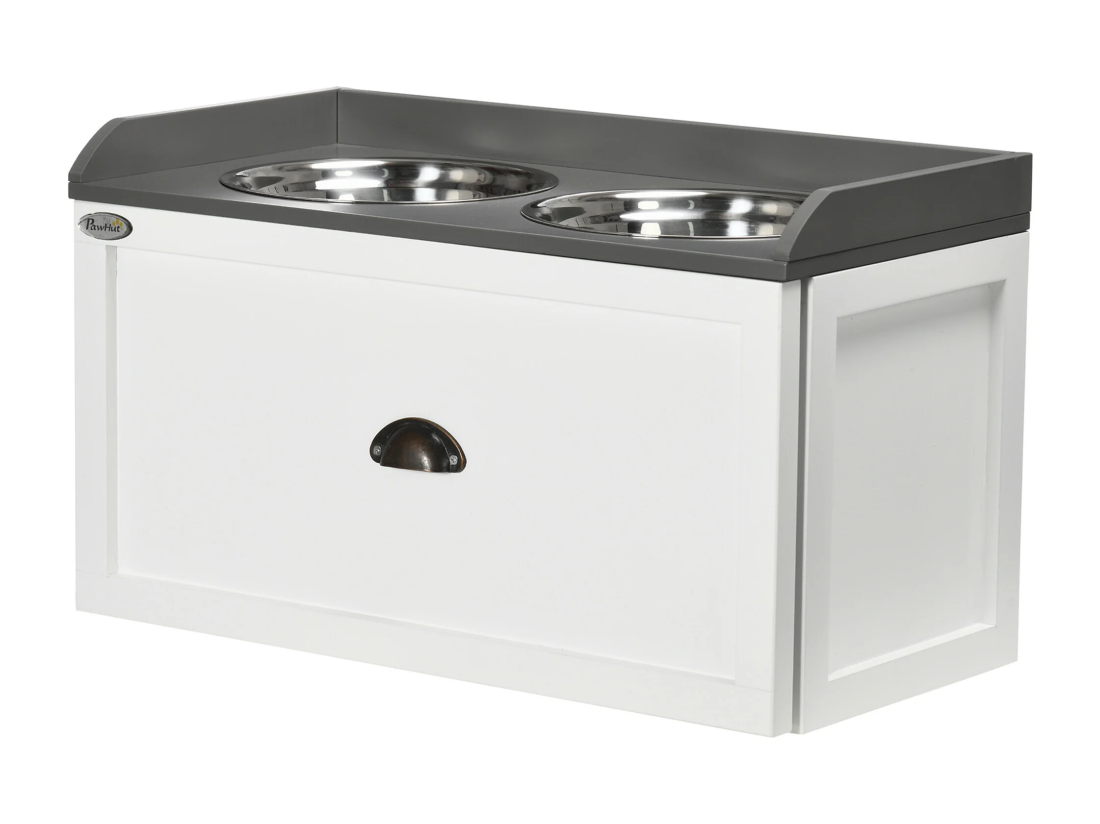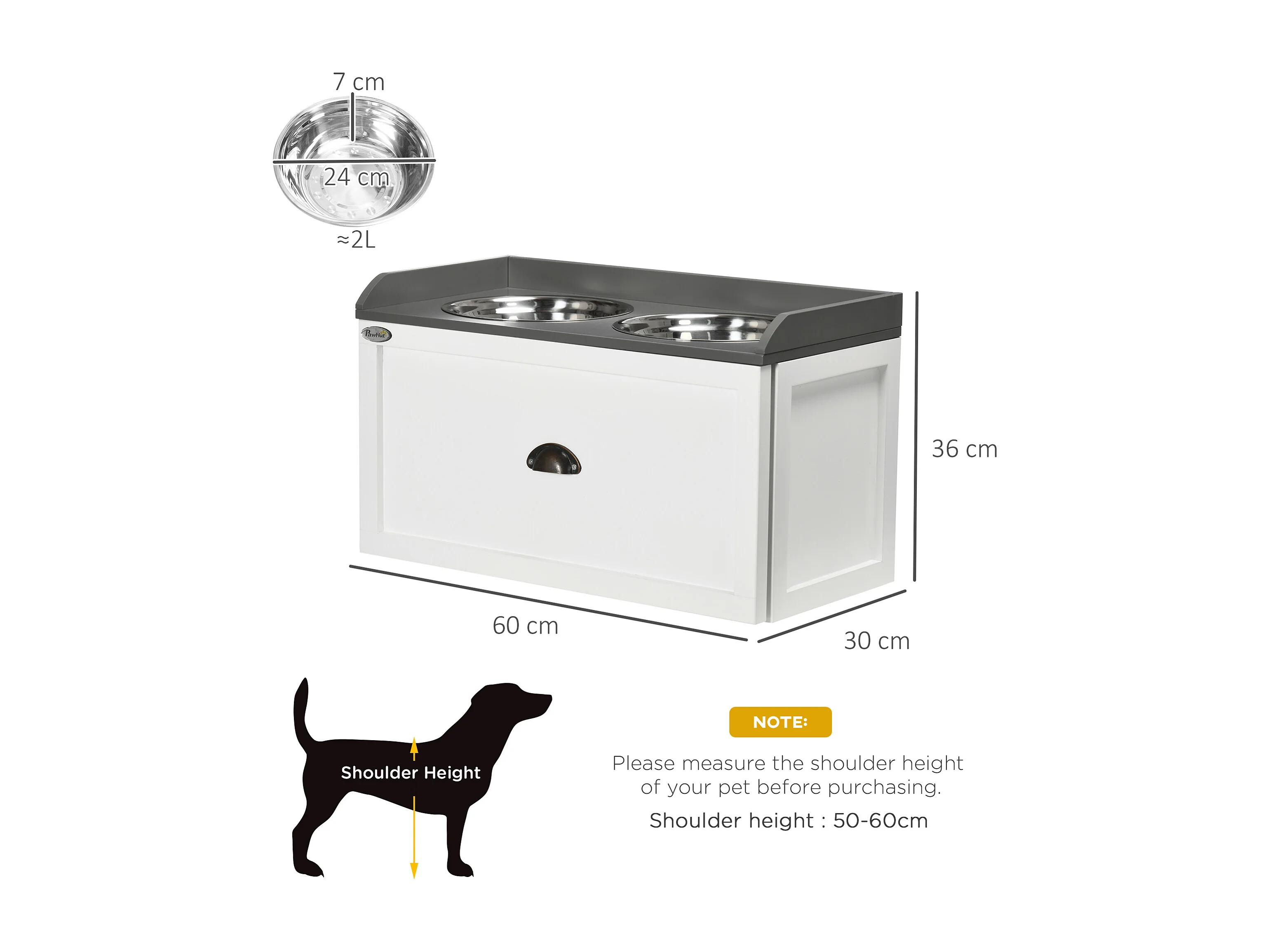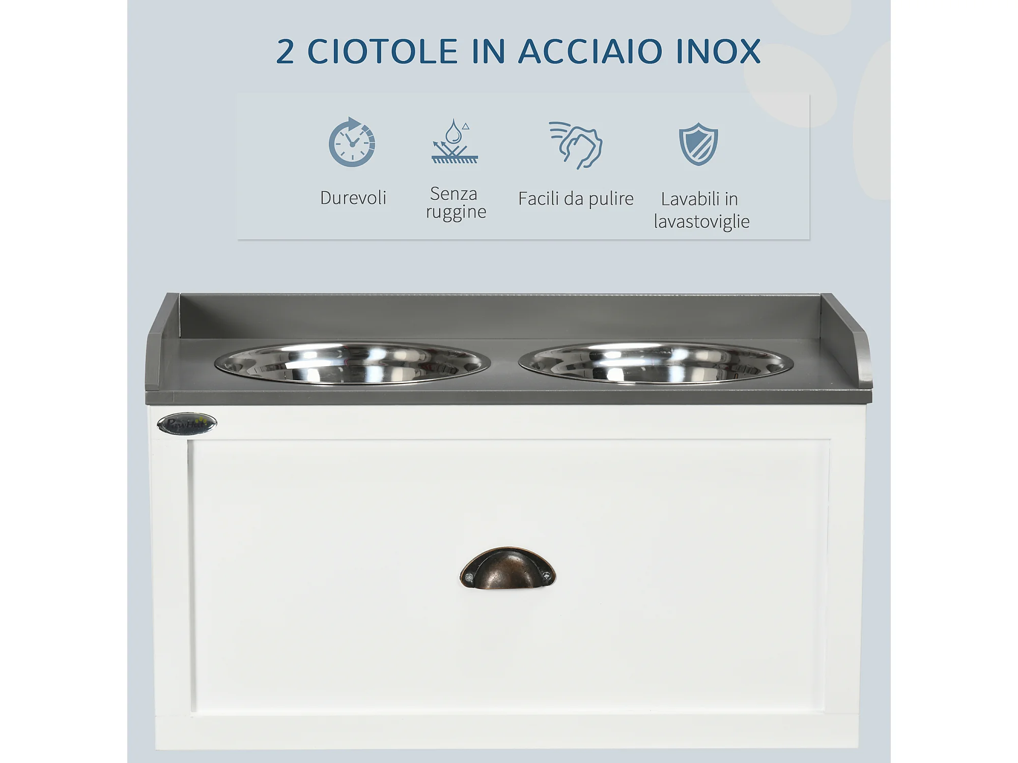Ciotole per cani rialzate con armadietto e 2 ciotole in acciaio bianco