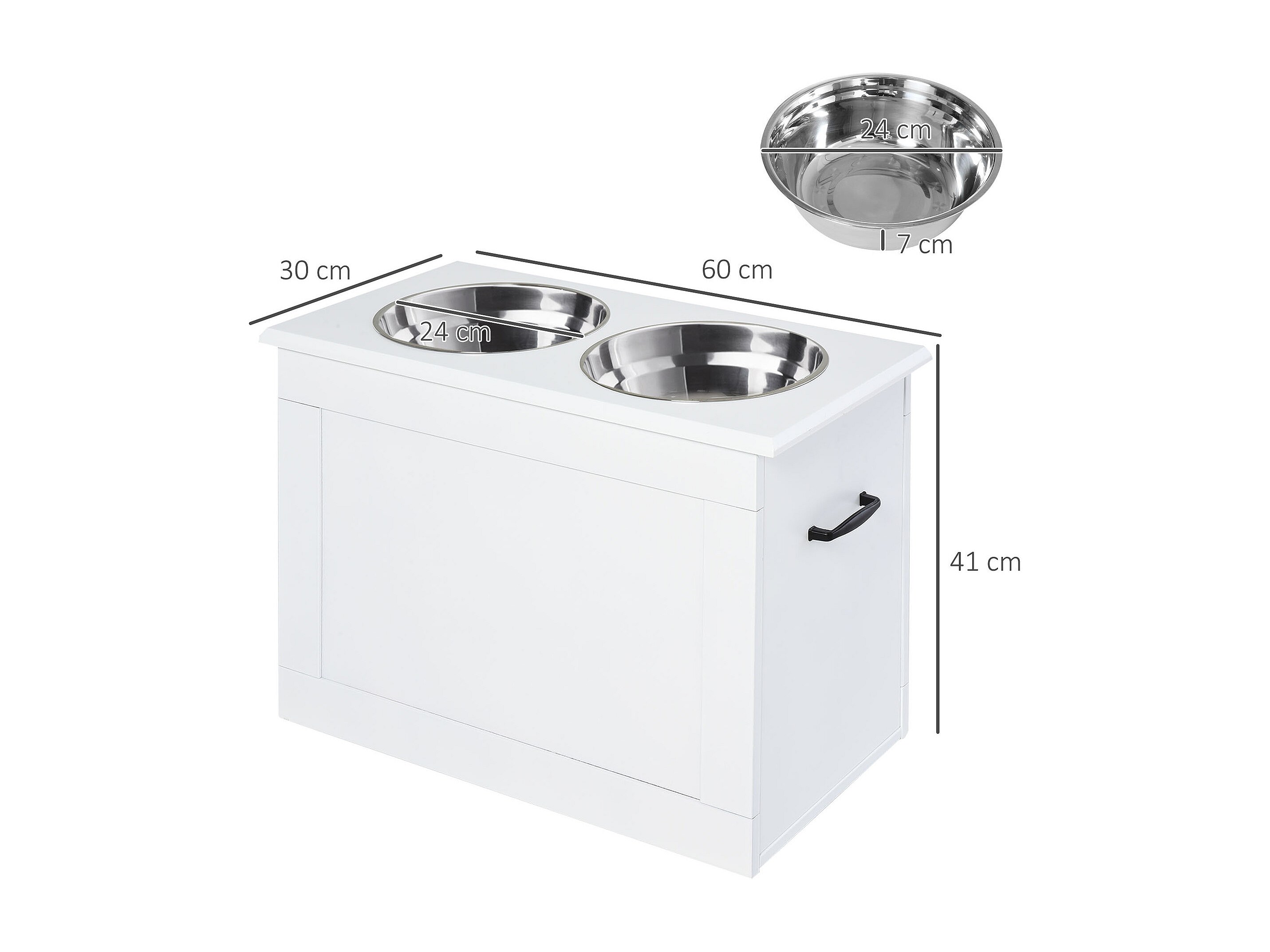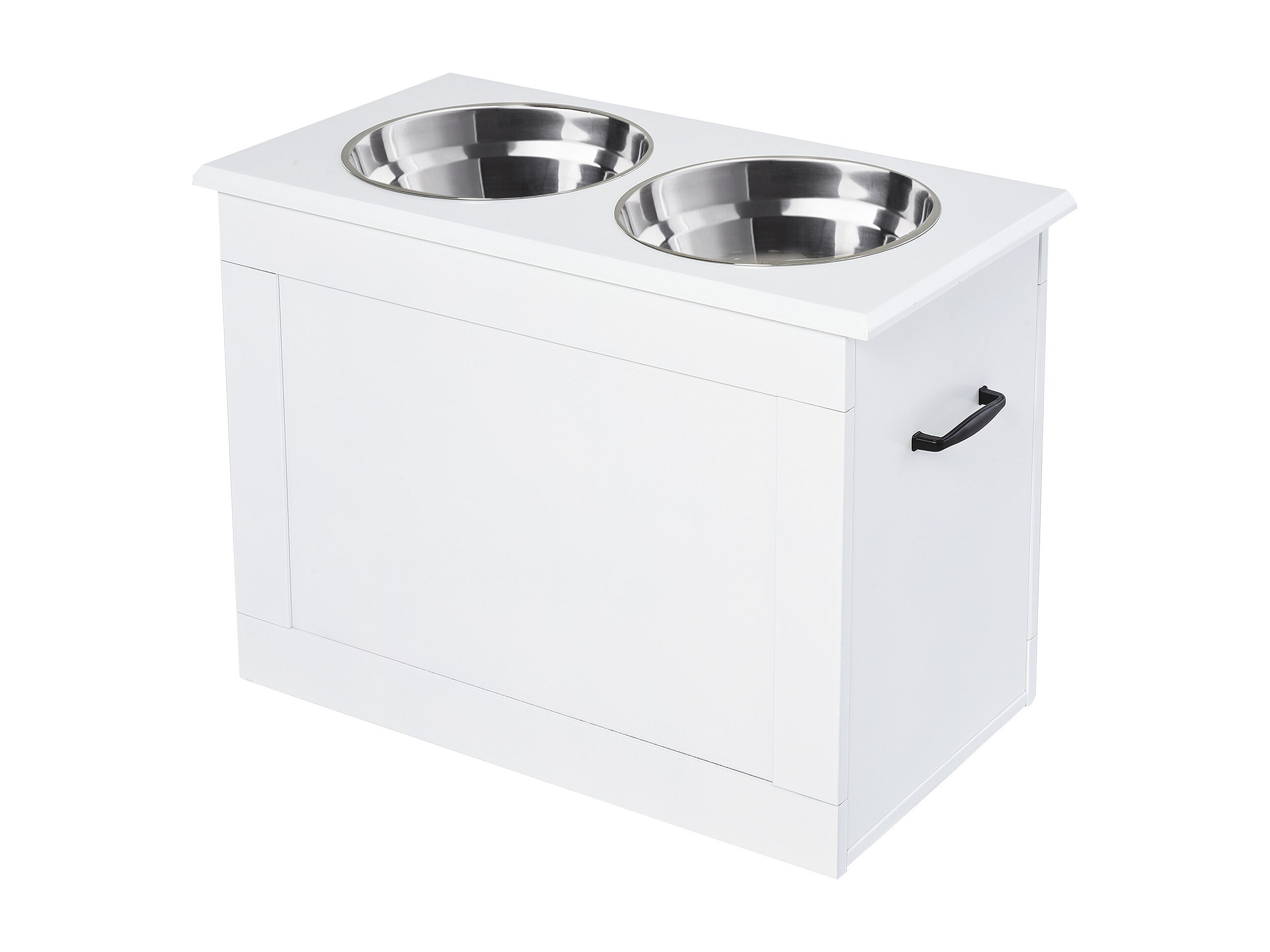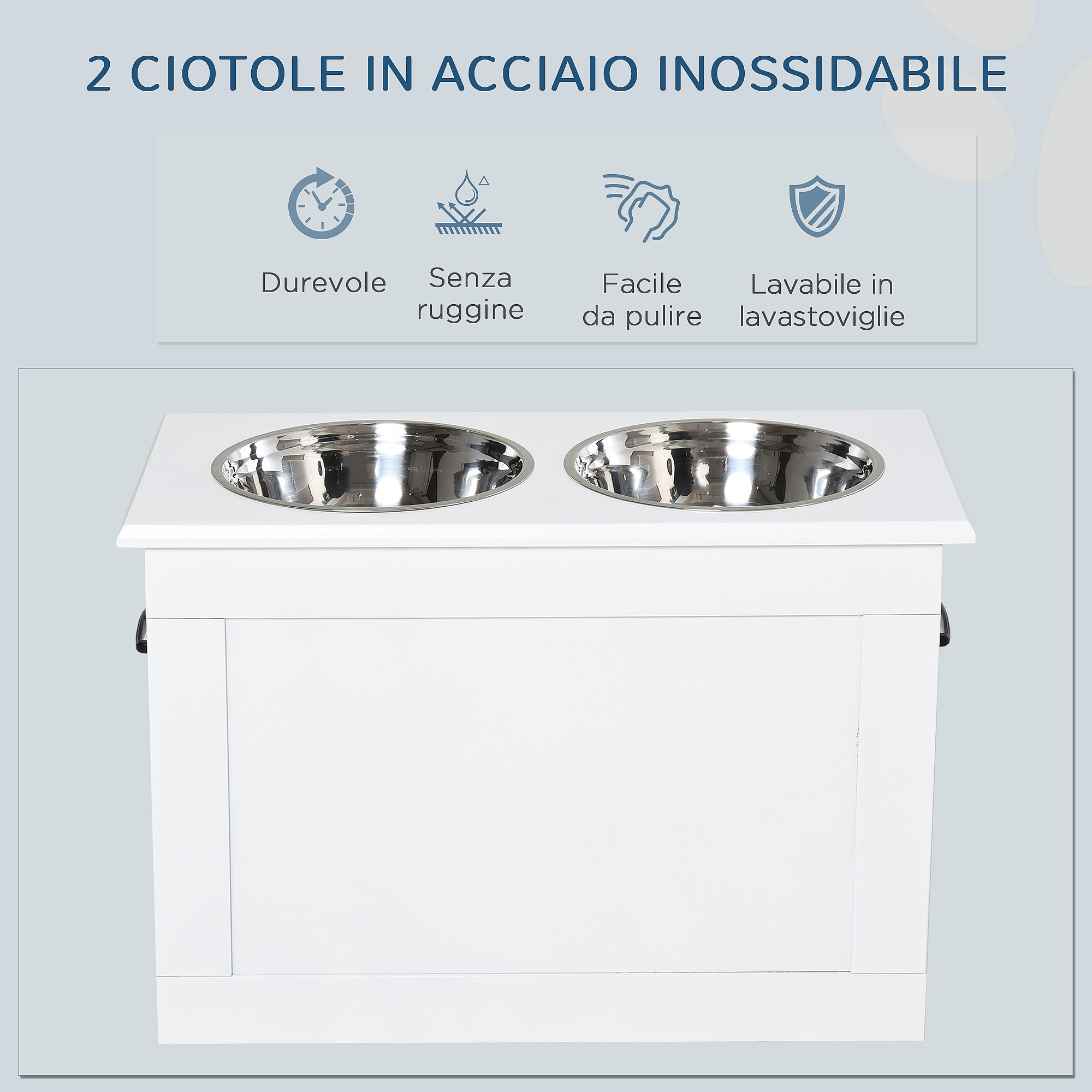 Ciotole rialzate per cani grandi in mdf e acciaio inox 60x30x41cm bianco