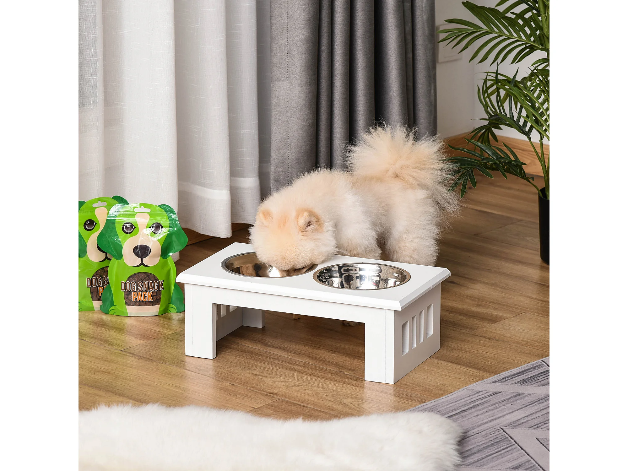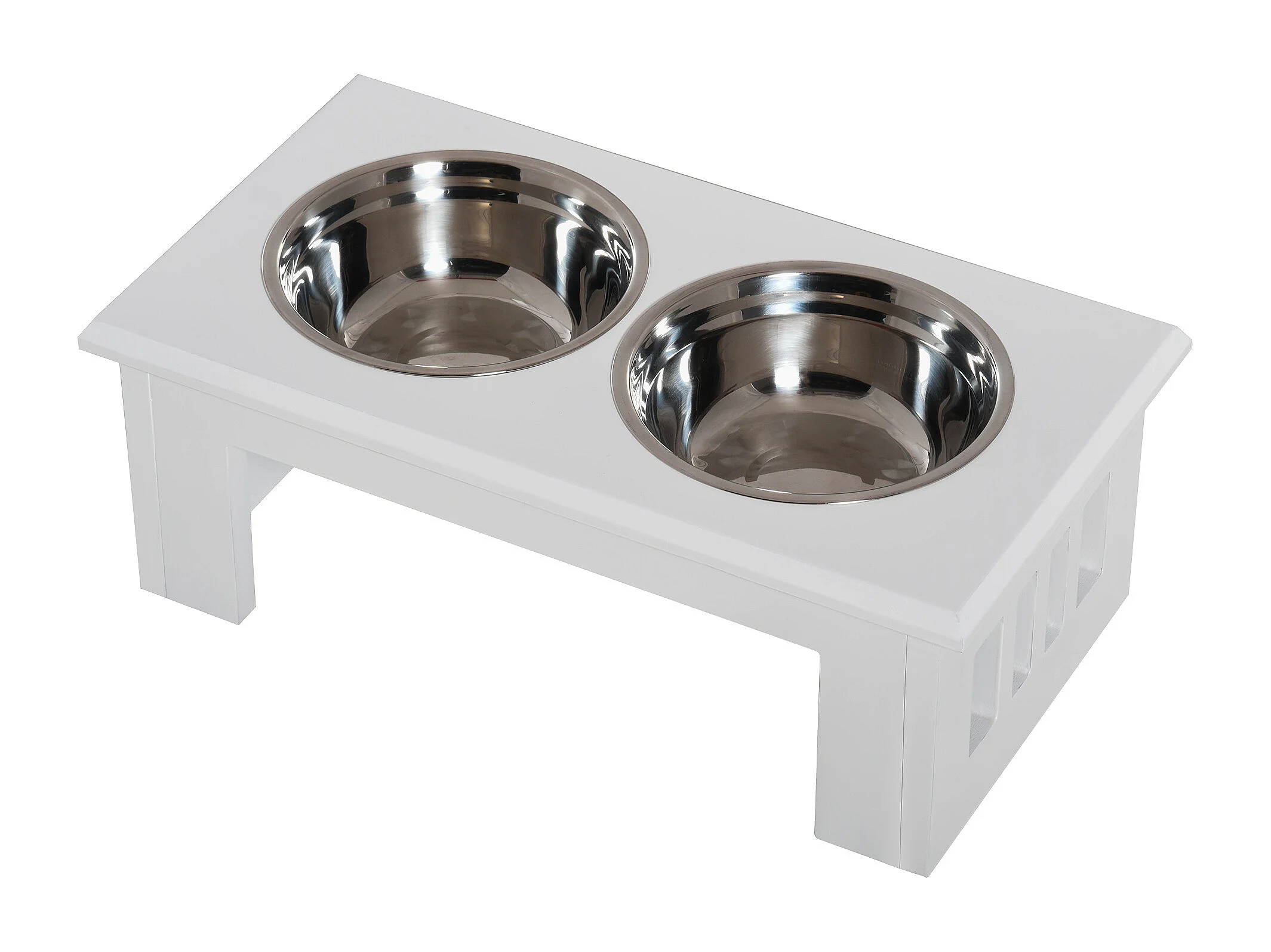Ciotole rialzate per cani piccoli e taglia media in acciaio e mdf bianco