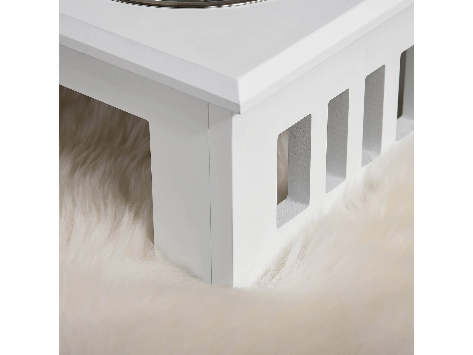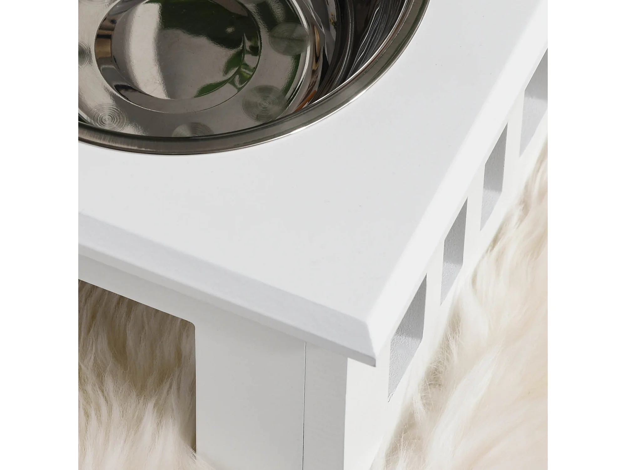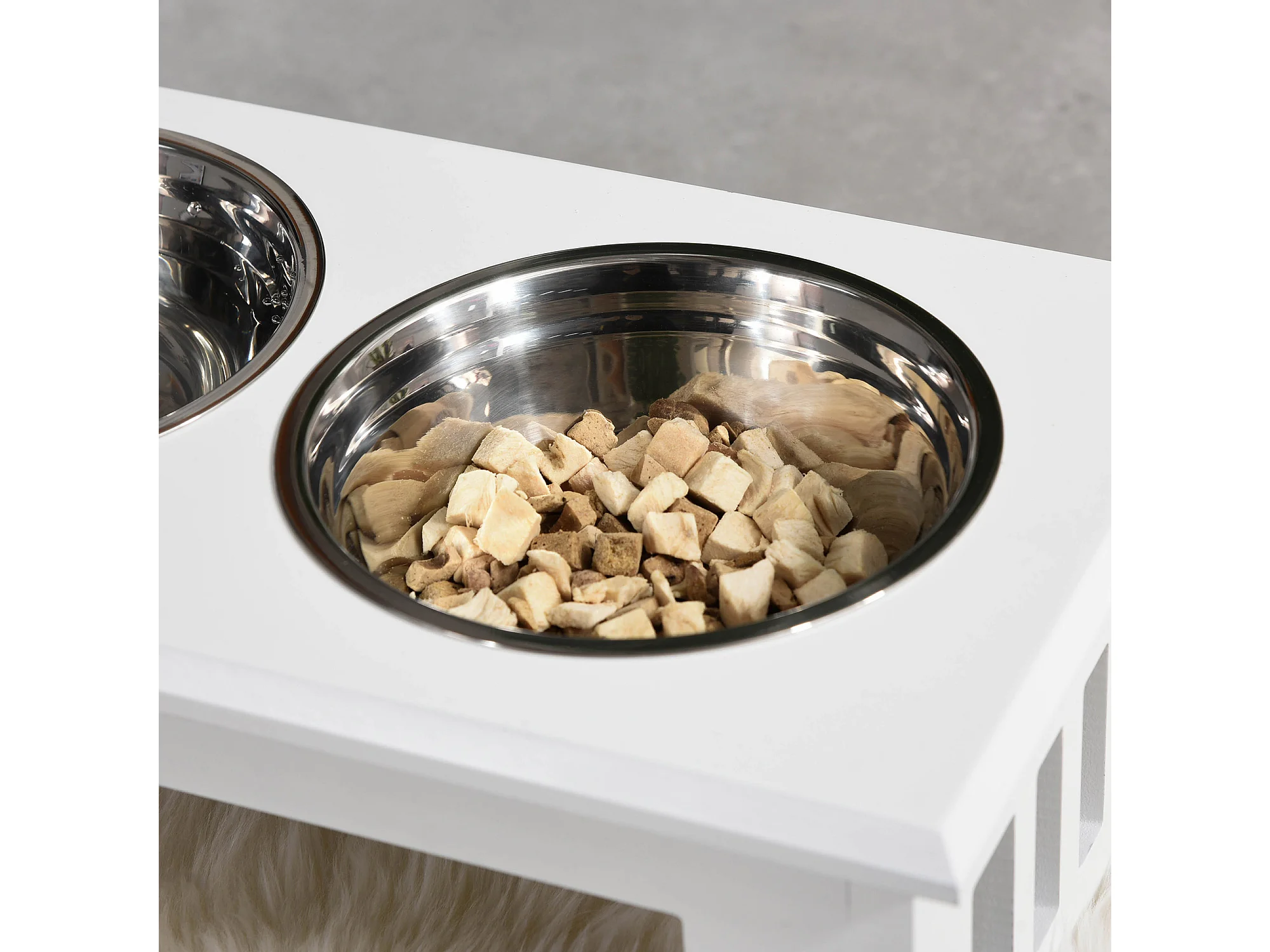 Ciotole per cani rialzate con armadietto e 2 ciotole in acciaio bianco