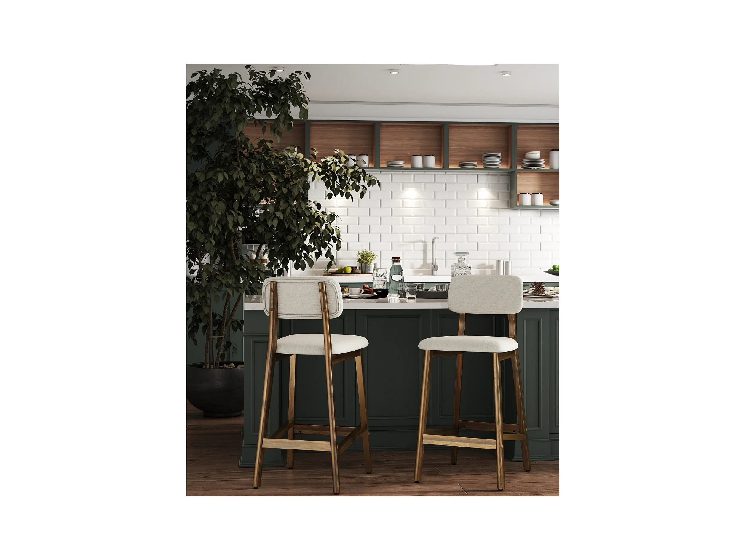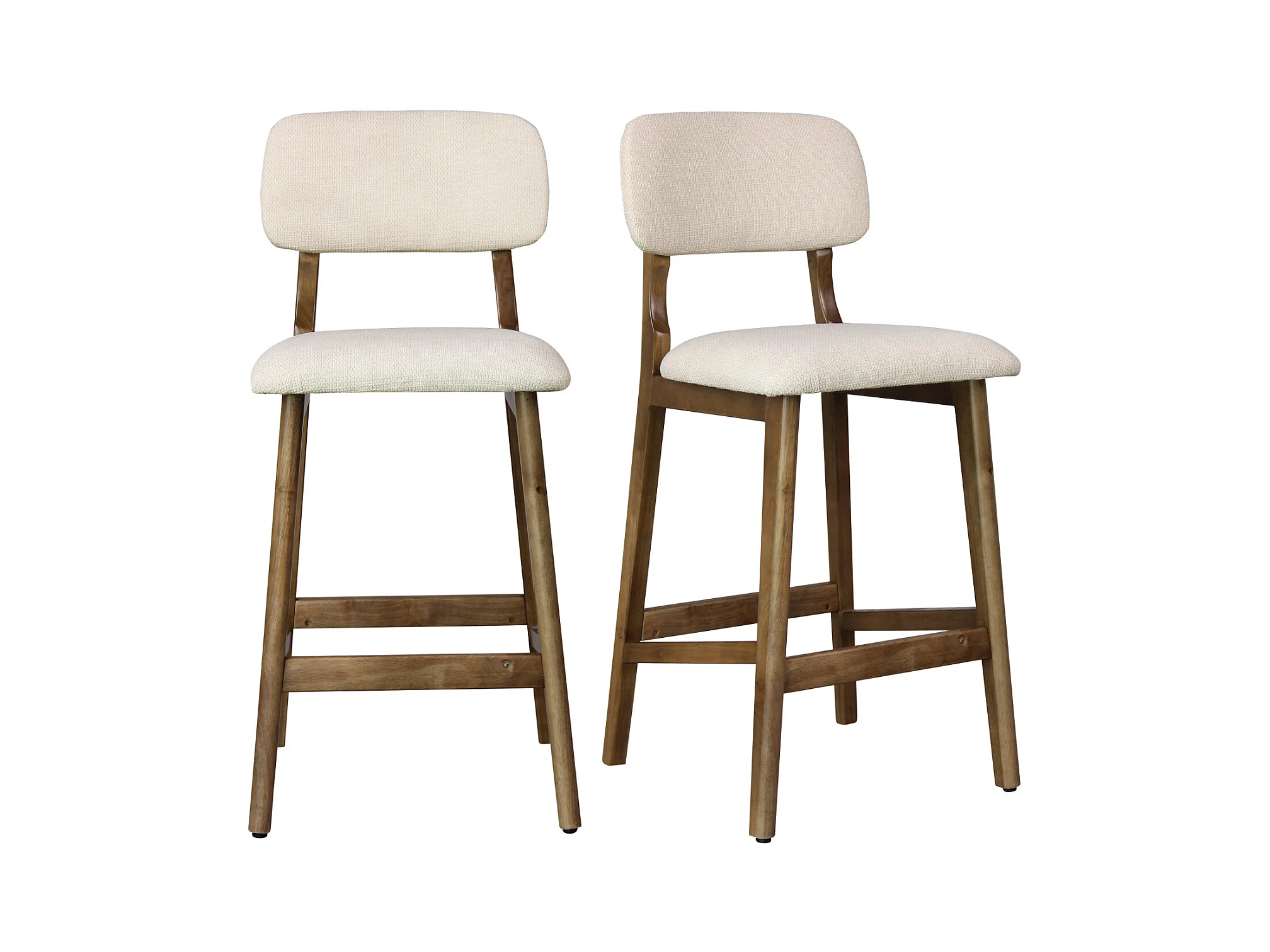 CLIFF-Sgabello da bar, tessuto ecrù e legno naturale (x2)