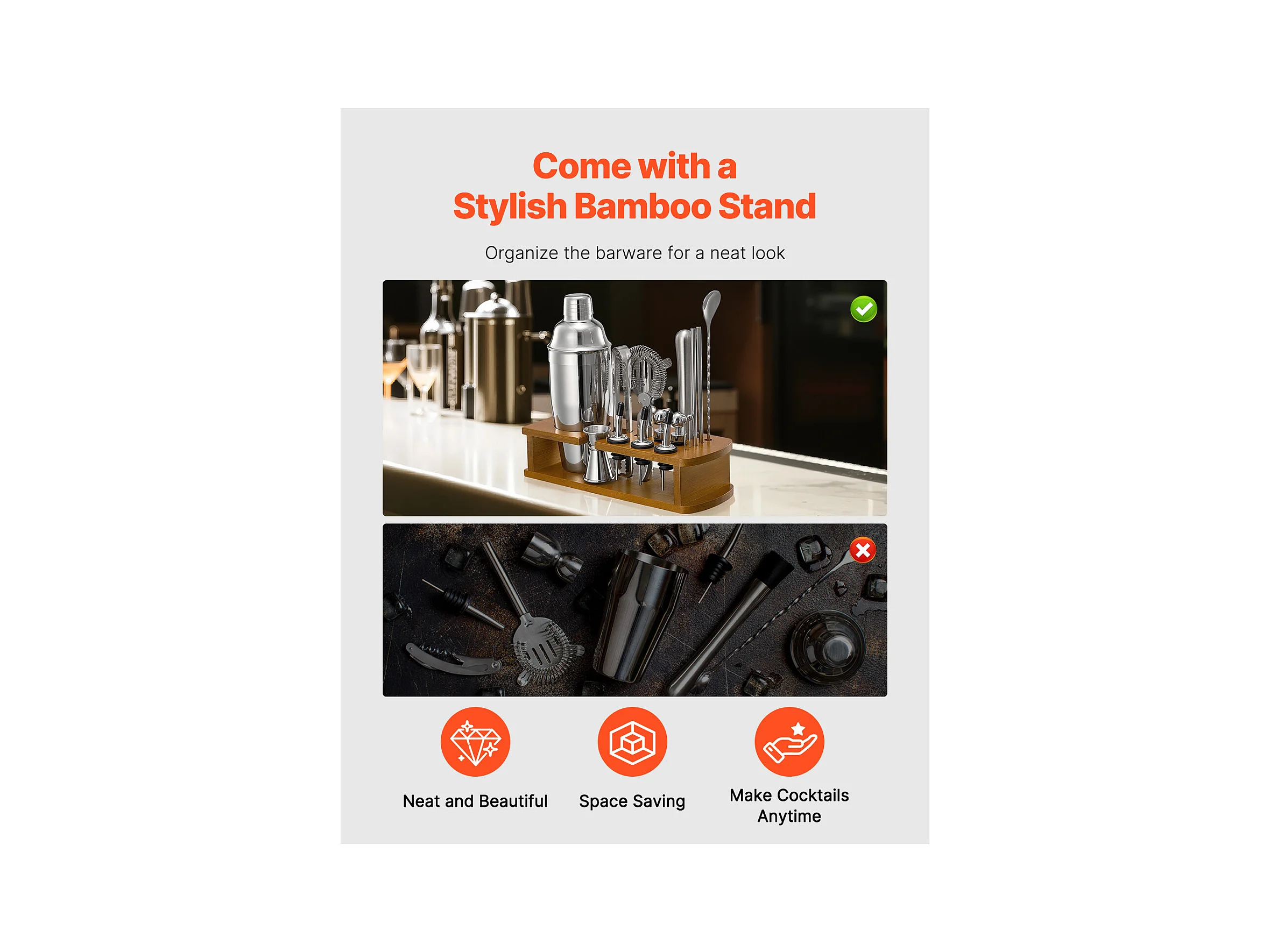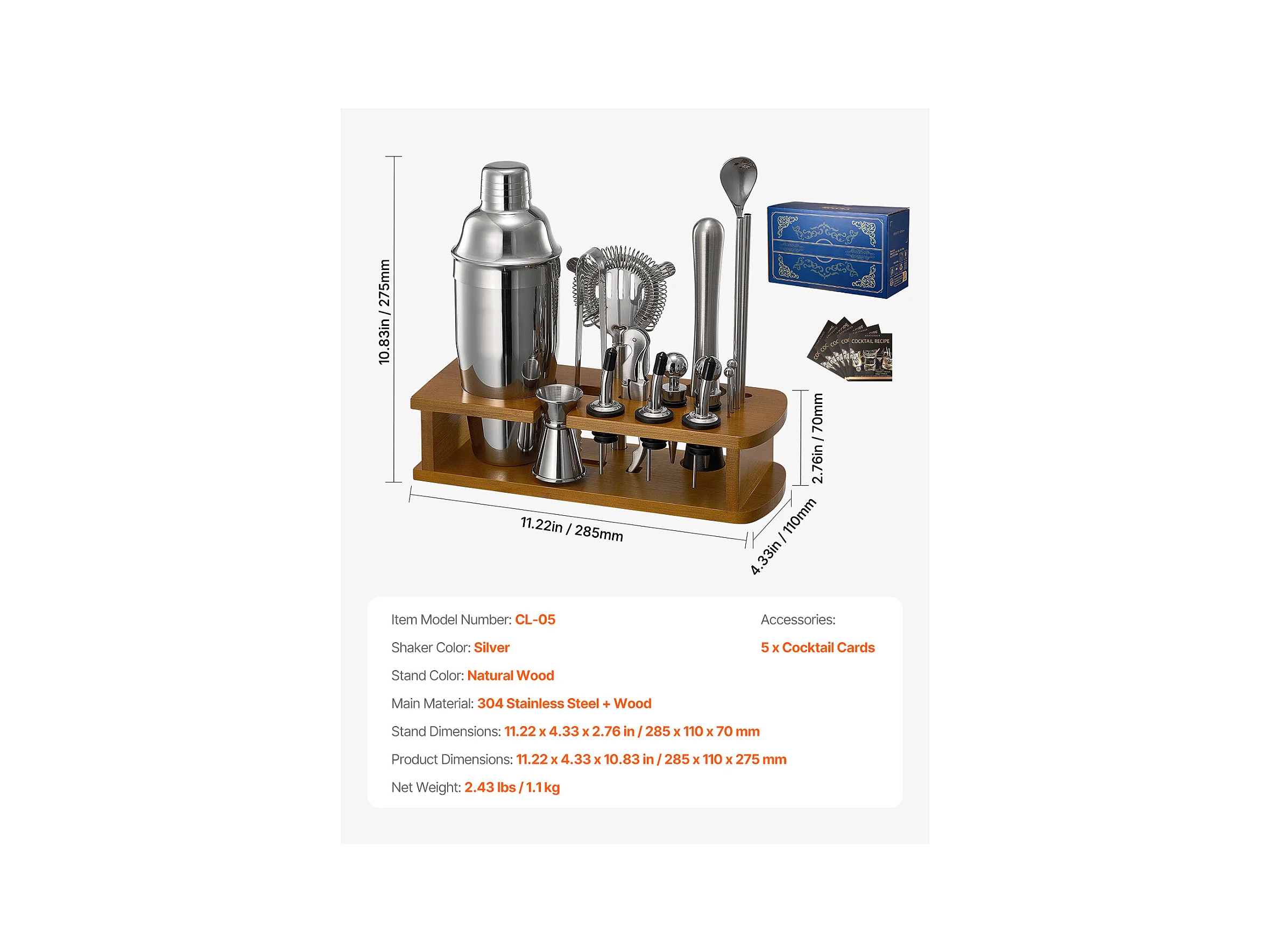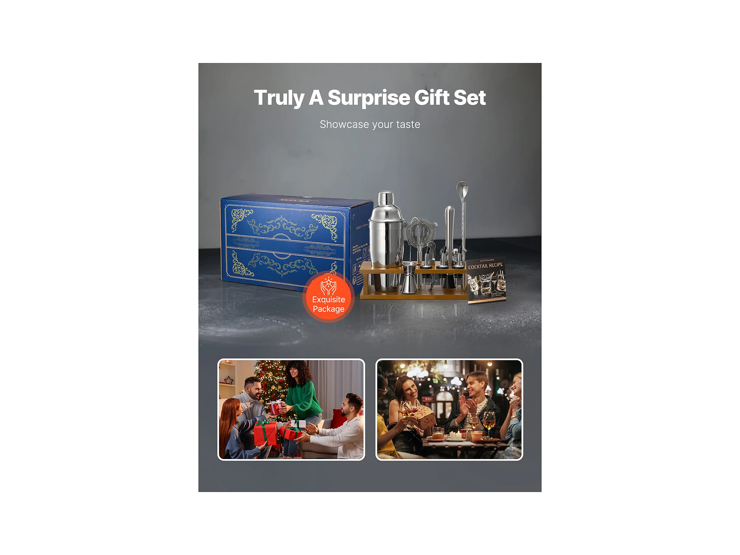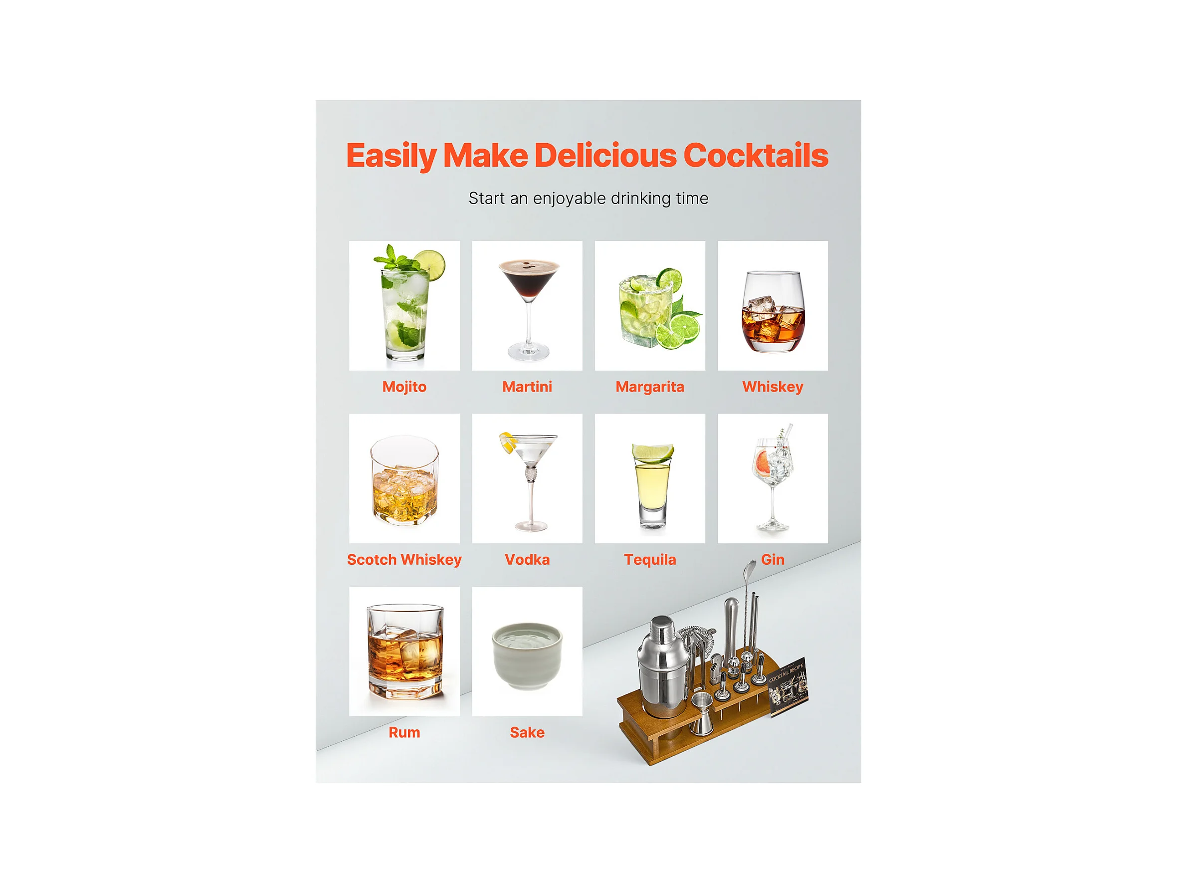 Cocktail SucceBuy Set Barman Kit Shaker da Cocktail in Acciaio Inox 18 Pezzi Argento