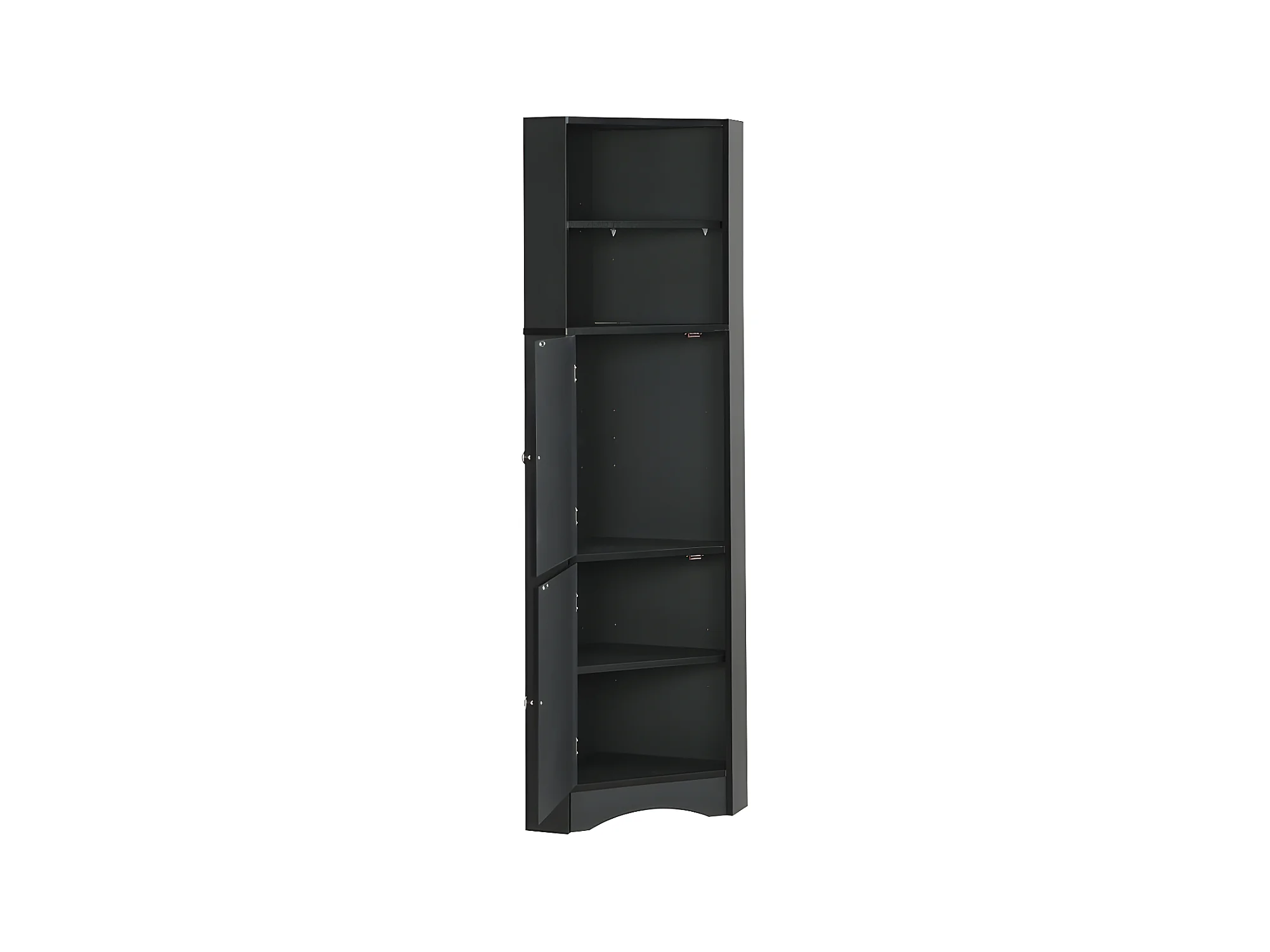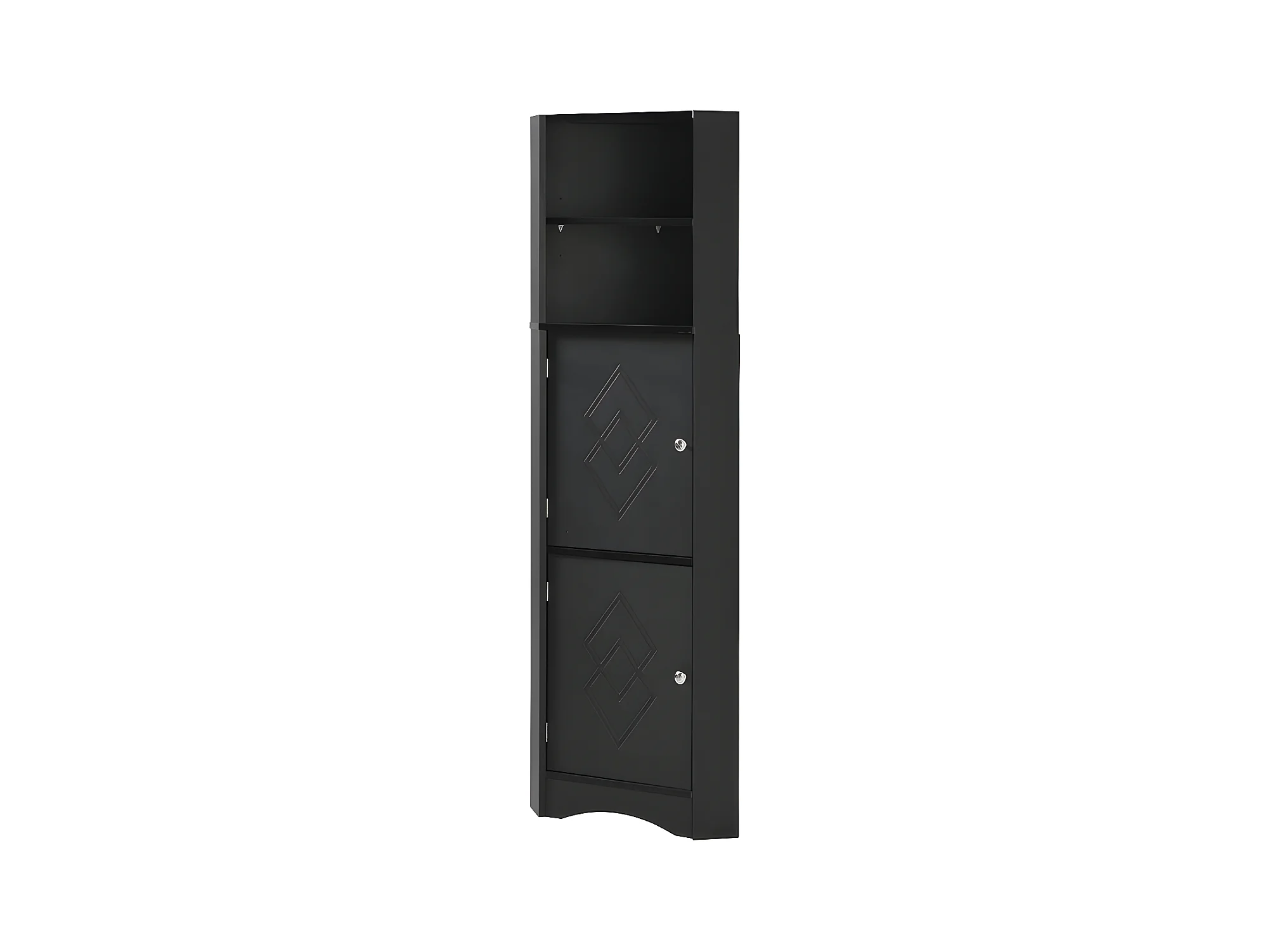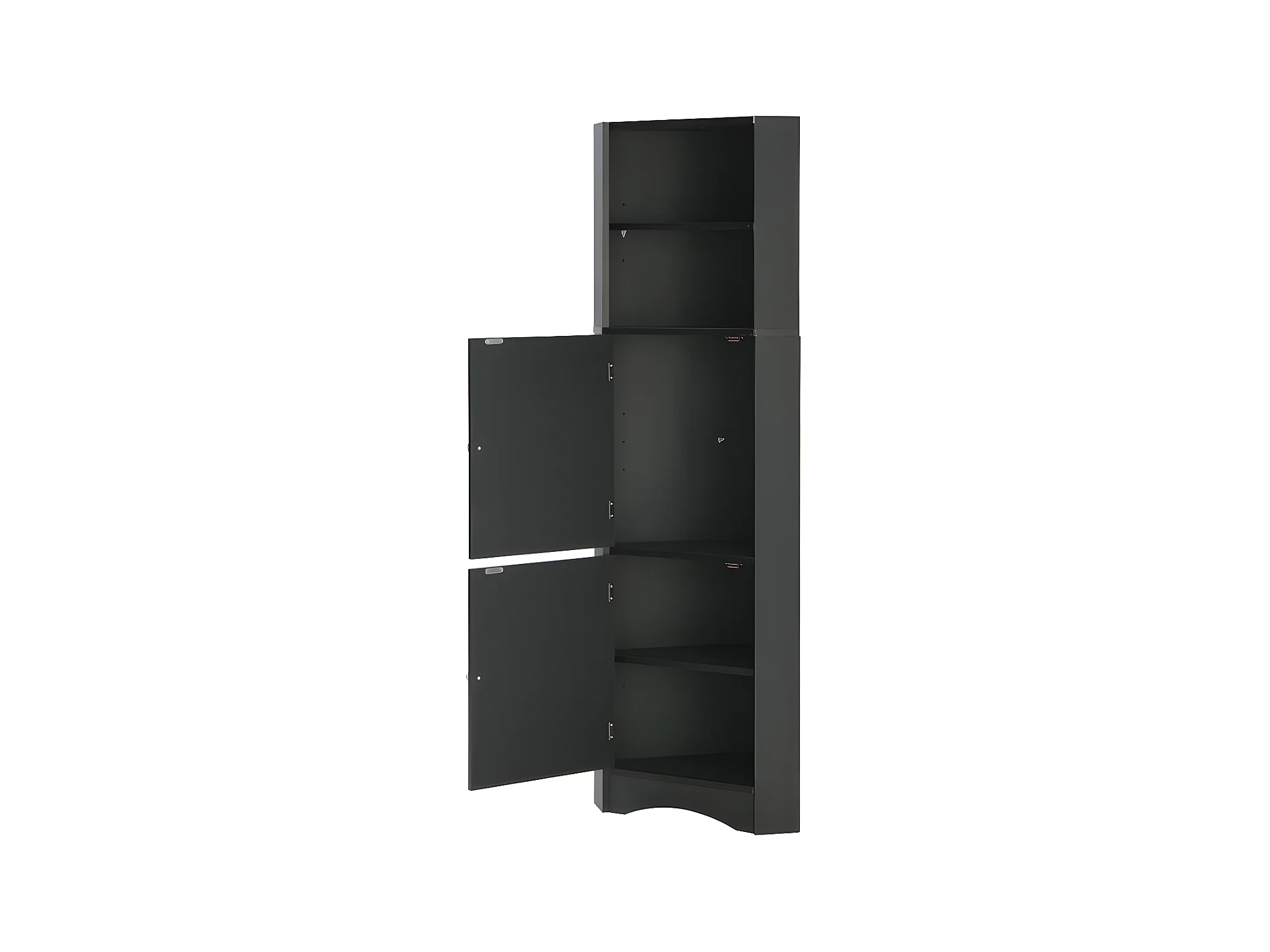 Colonna angolare da bagno - 2 vani aperti e 2 ante - ripiani regolabili - Nera