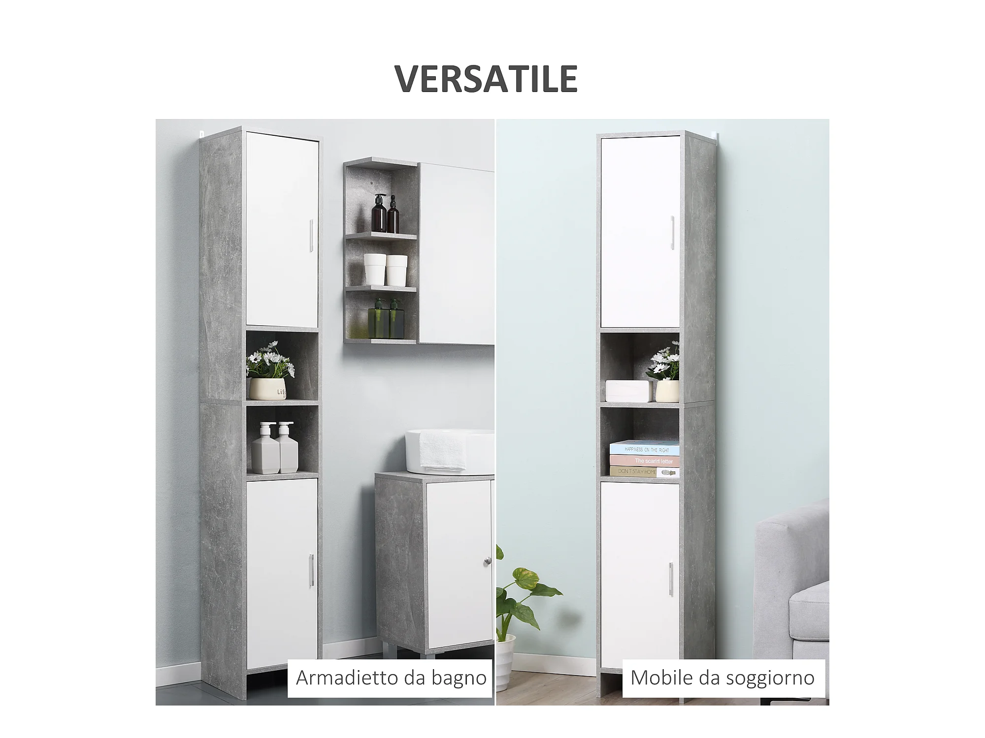 Mobile bagno grigio cemento 30x30x190 cm