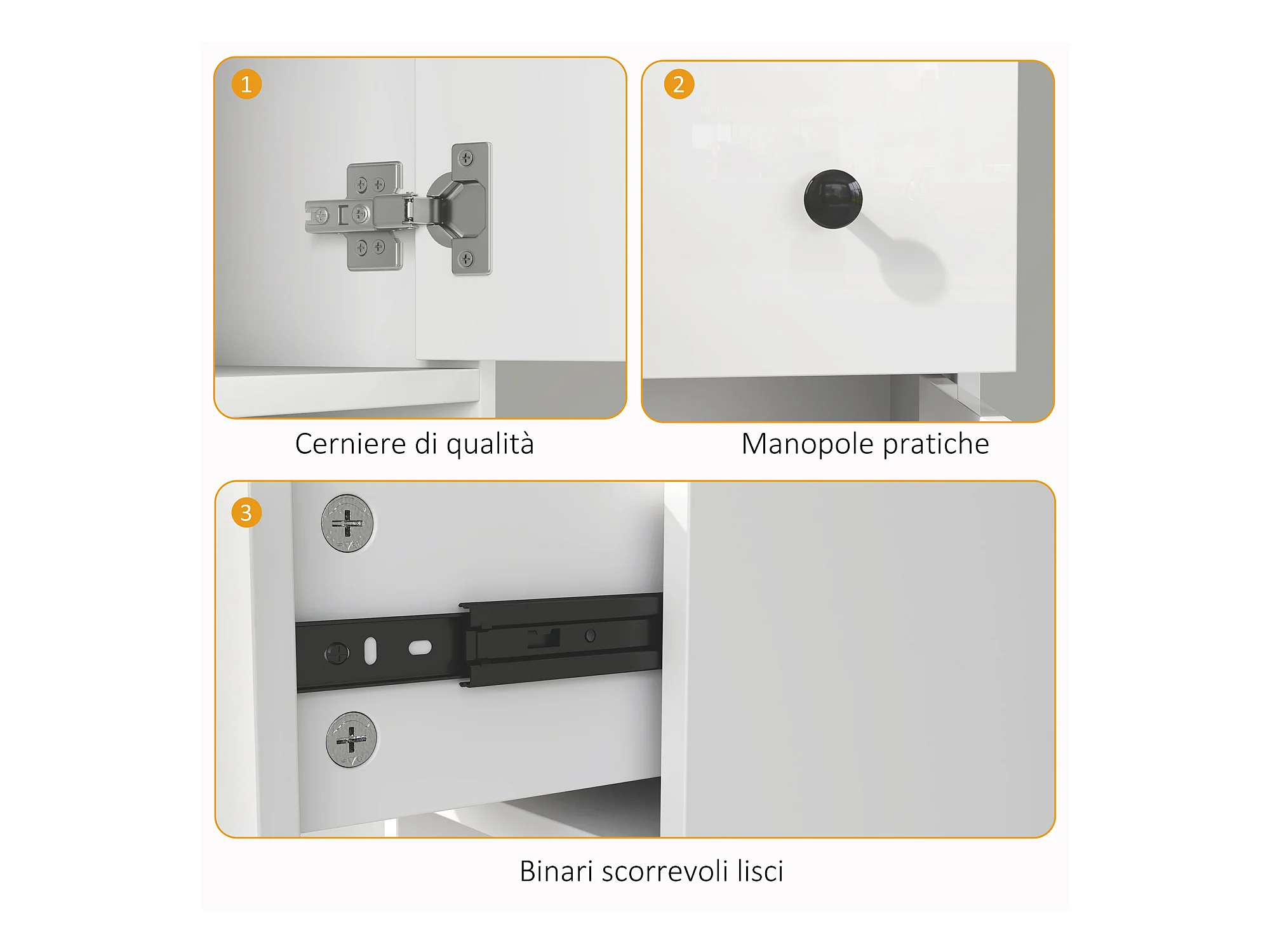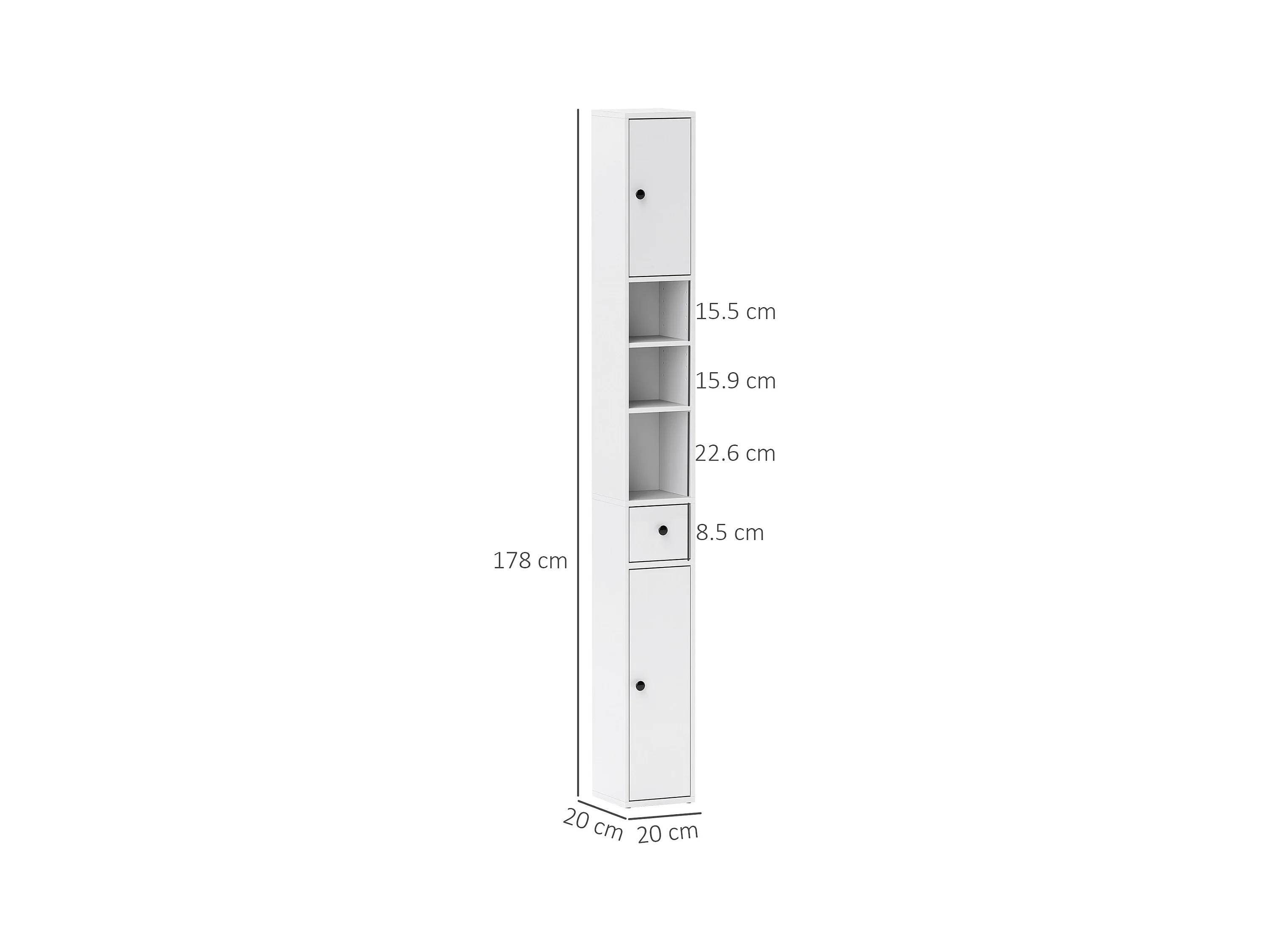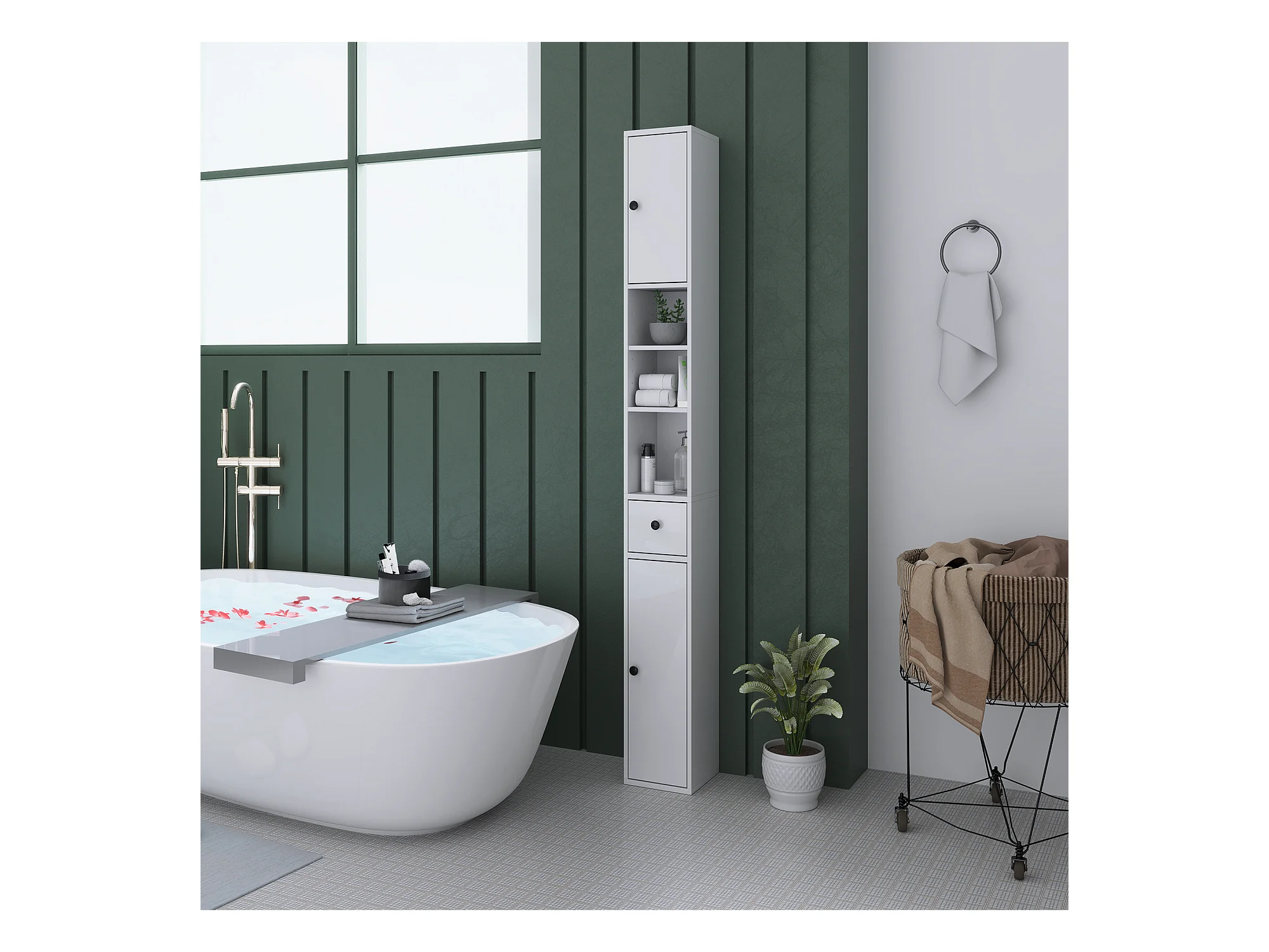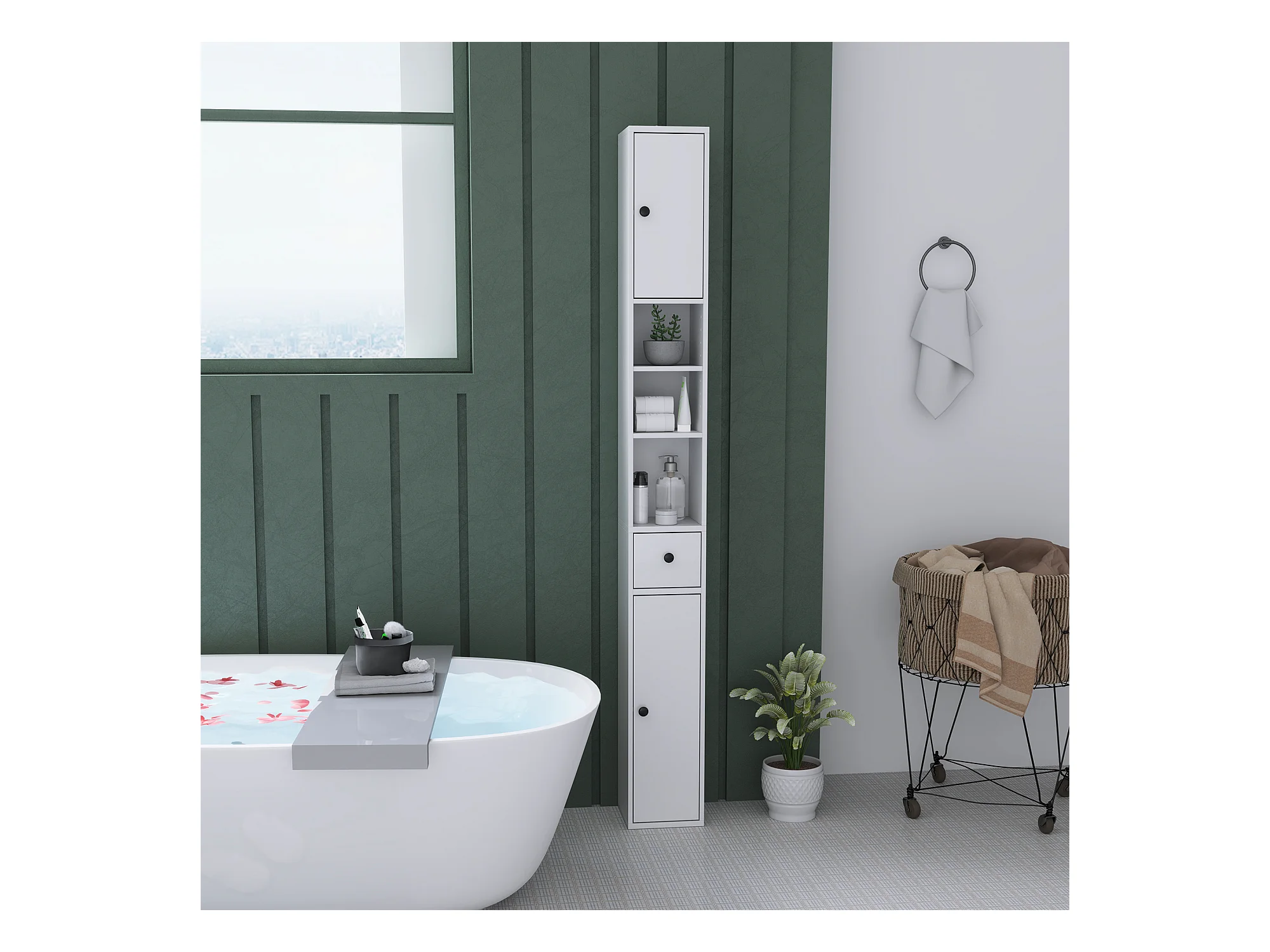 Colonna Bagno con cassetto, 2 armadietti e 4 ripiani aperti bianco