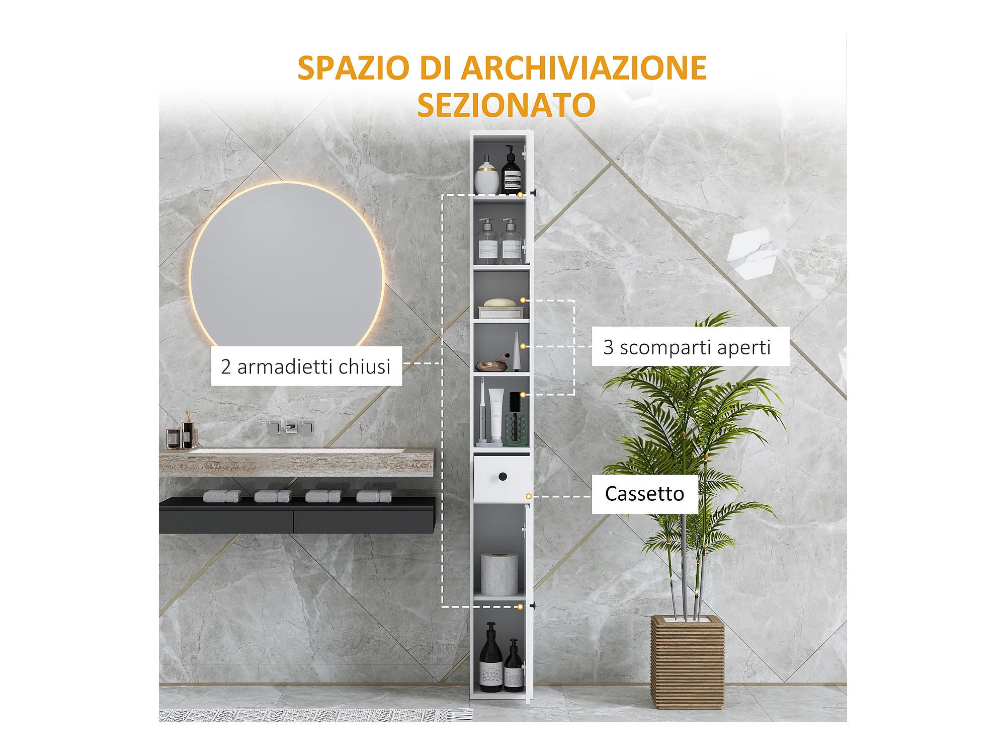Mobile colonna bagno salvaspazio 40x27x171.5cm in mdf bianco