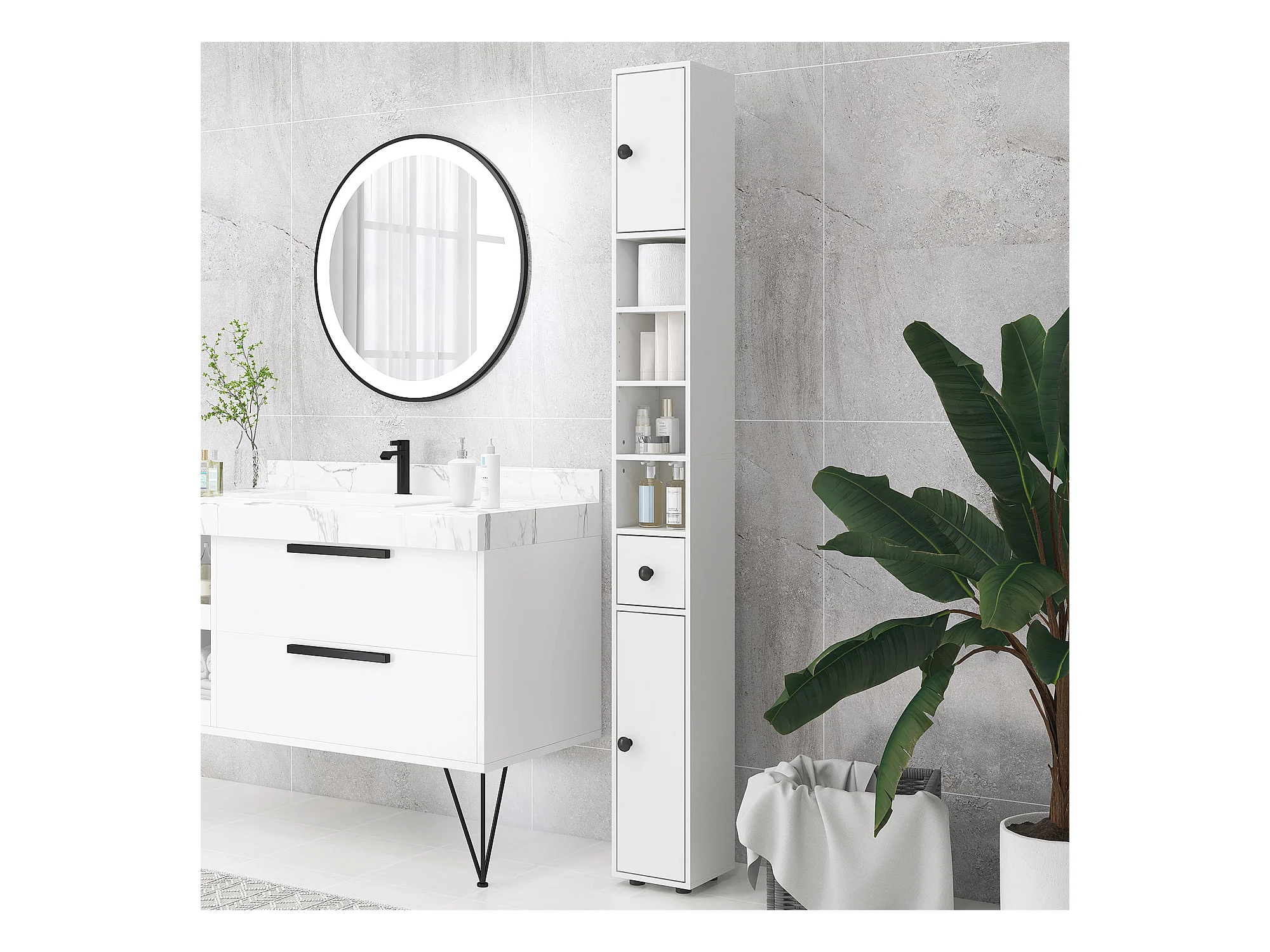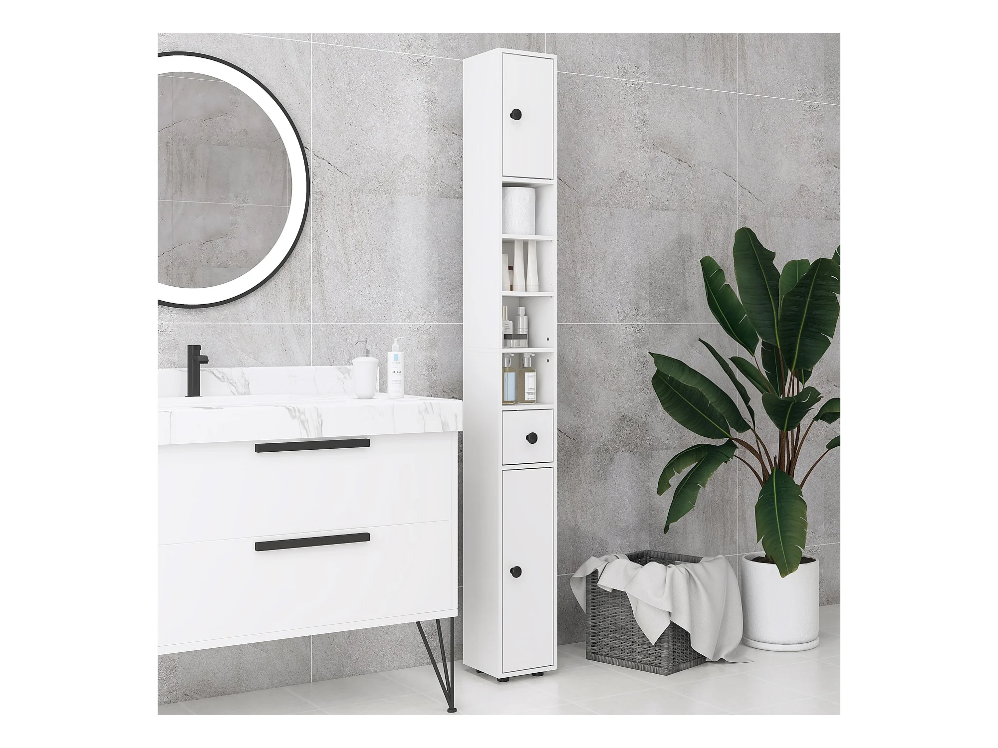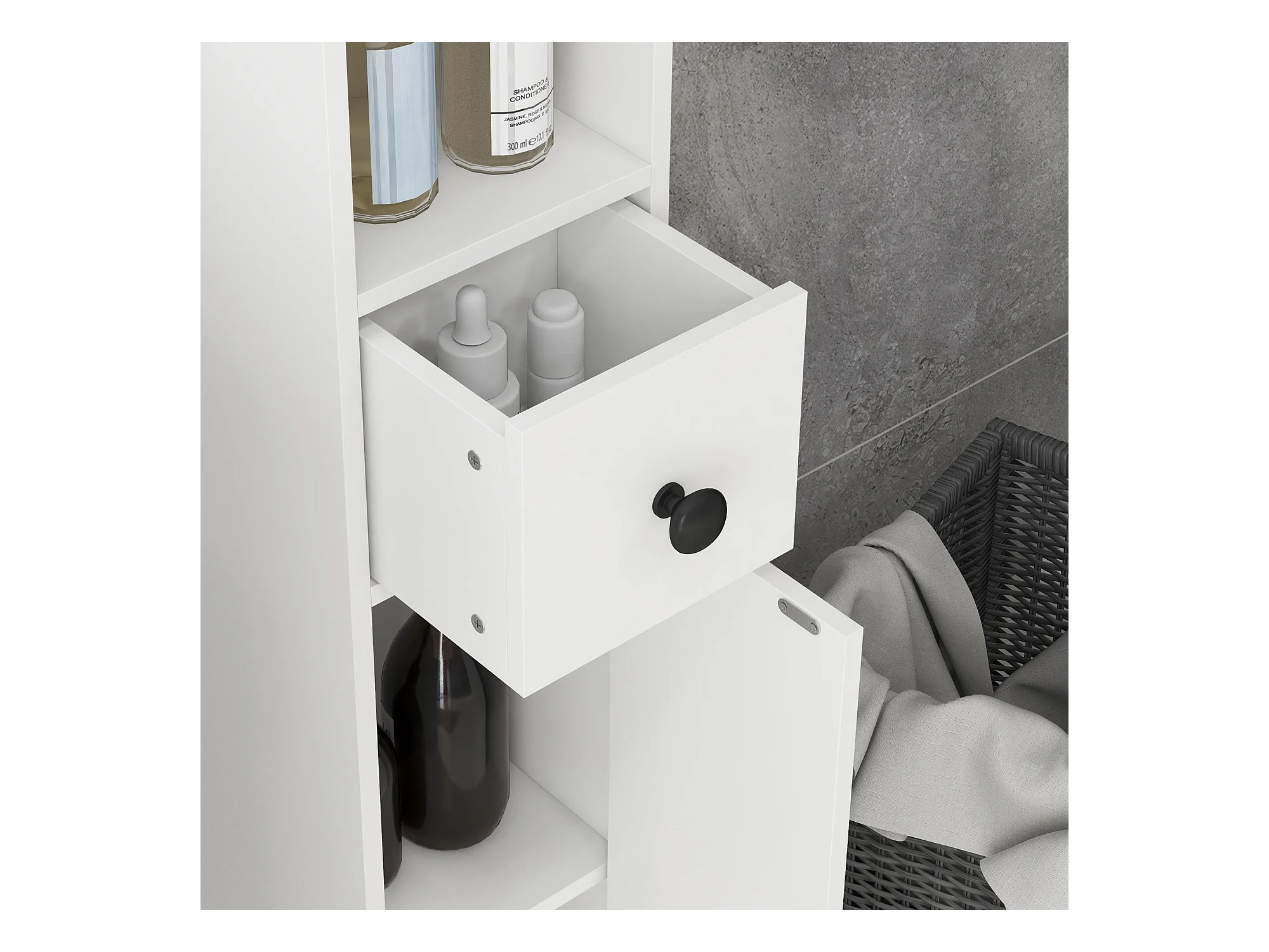 Colonna Bagno con cassetto, 2 armadietti e 4 ripiani aperti bianco