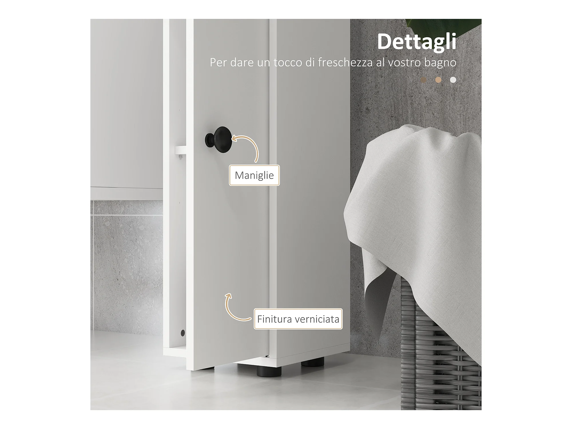 Mobiletto da bagno con portarotolo bianco 20,5x20x90 cm