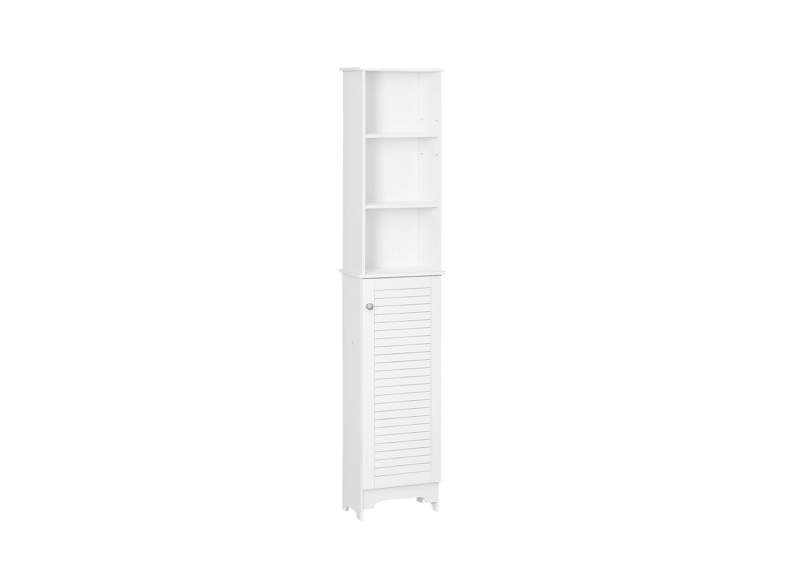 Mobiletto bagno salvaspazio con ripiani e armadietto bianco