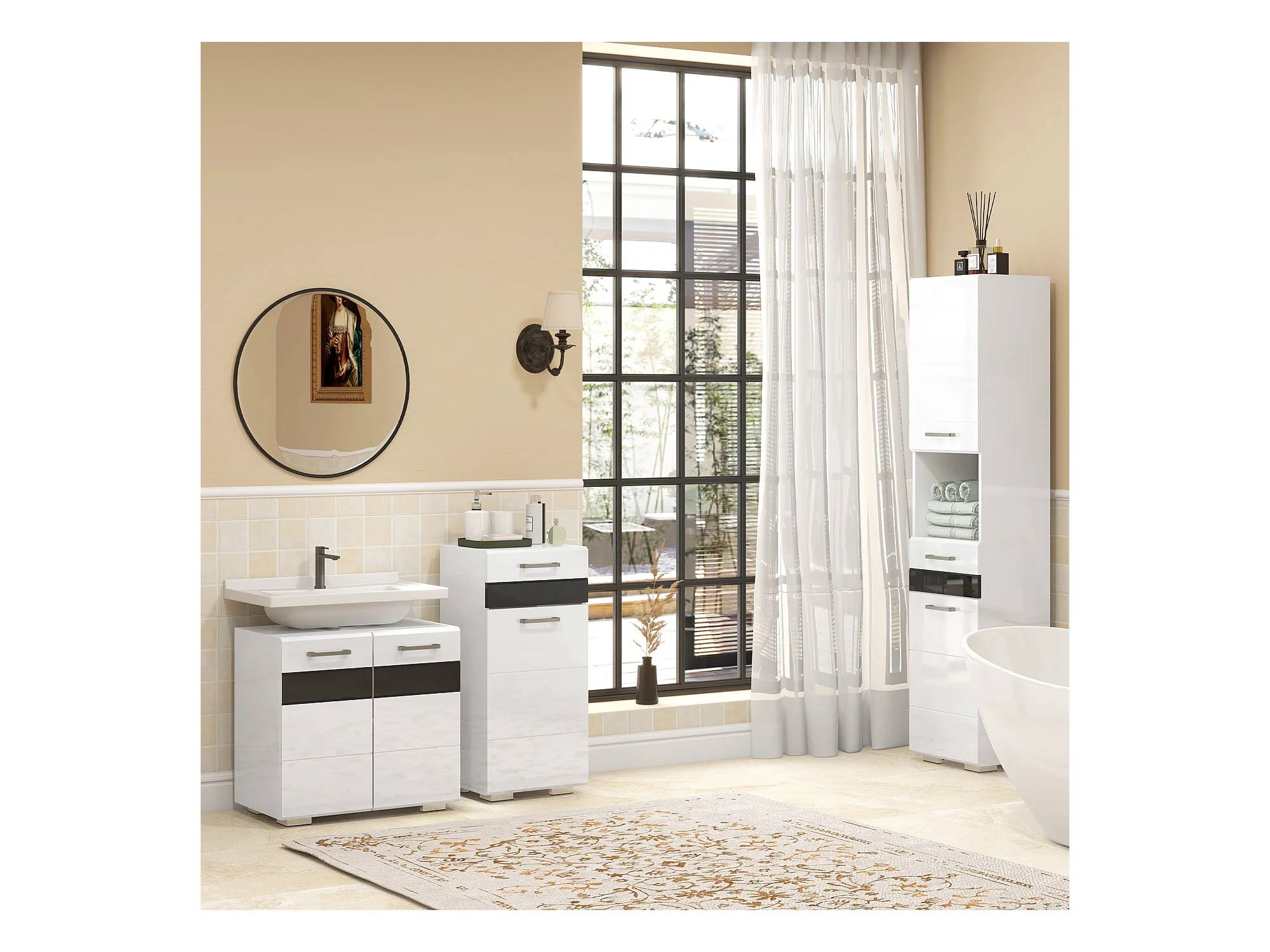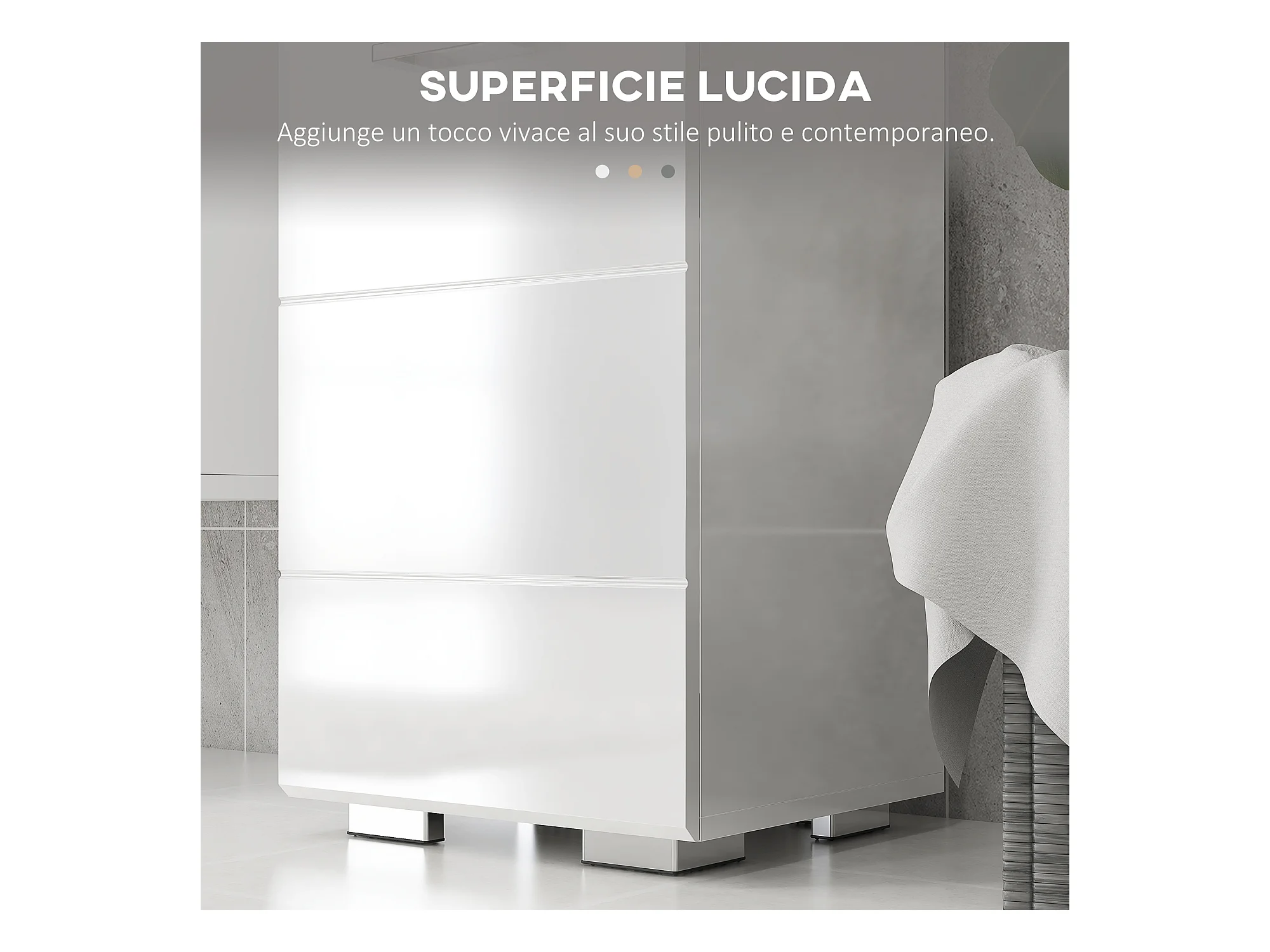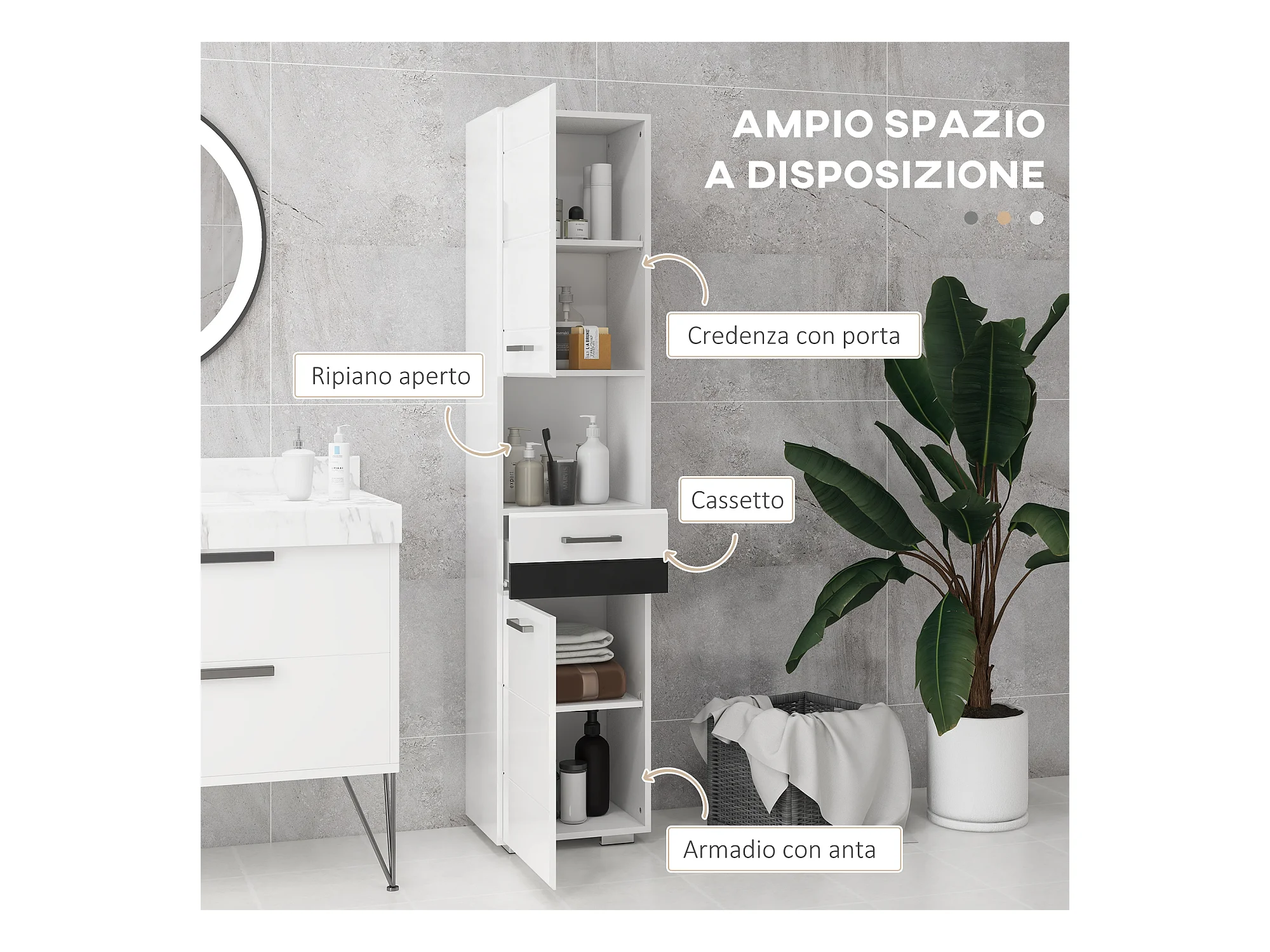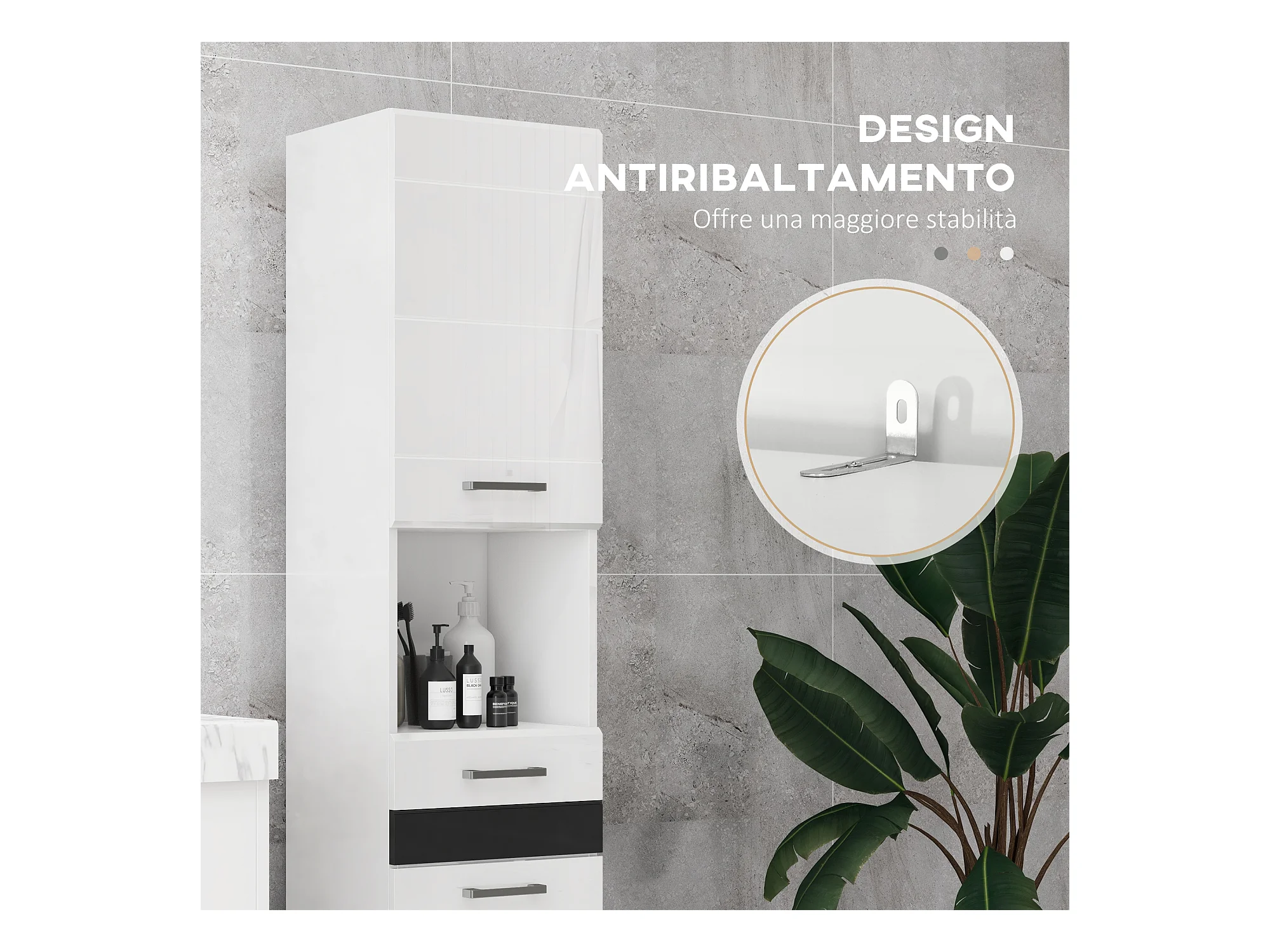 Colonna bagno con 2 armadietti e cassetto bianco lucido
