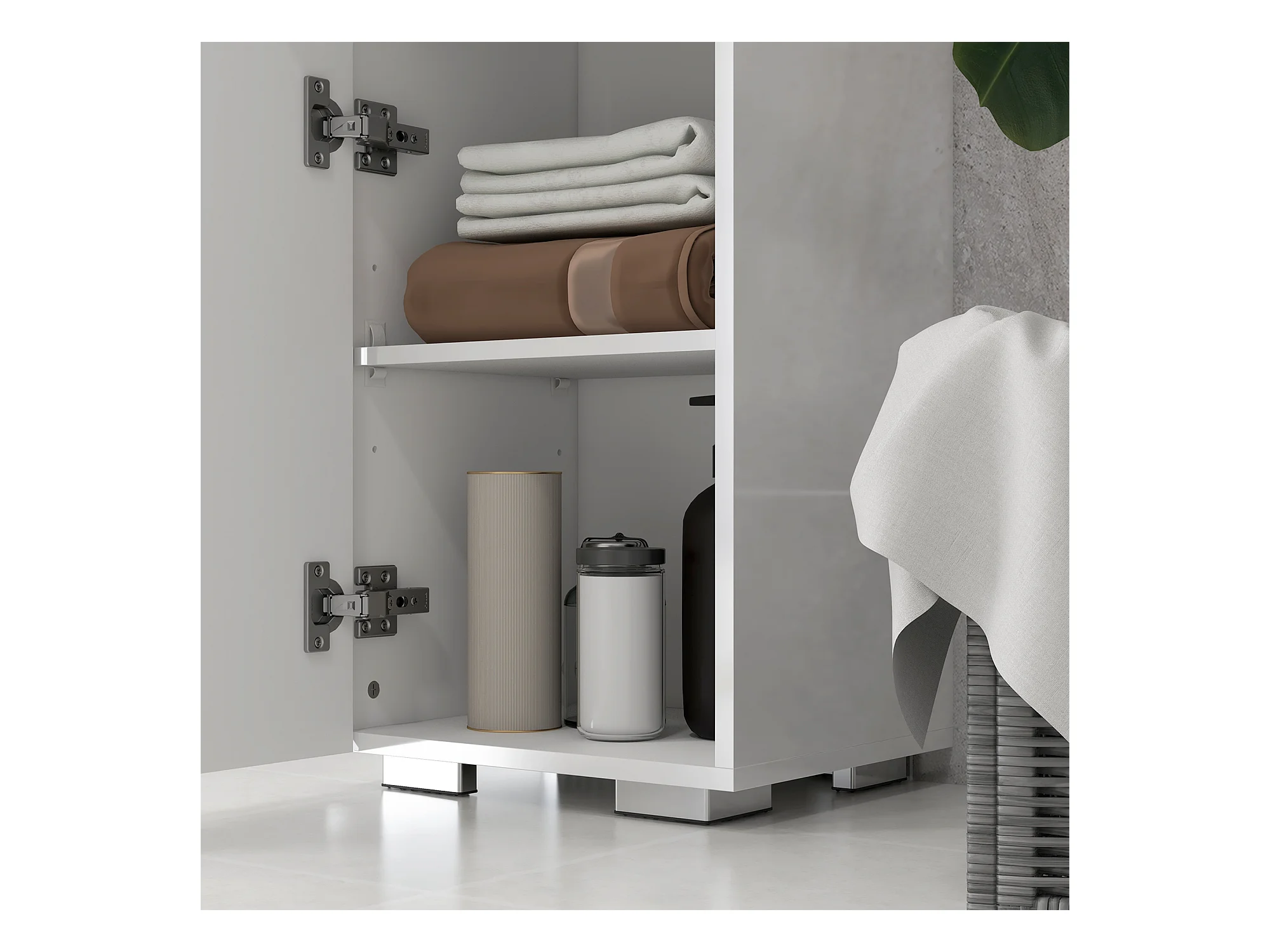 Mobiletto da bagno con anta a cestone e ripiani regolabili, MDF, bianco (66,6x29,8x86,5 cm)