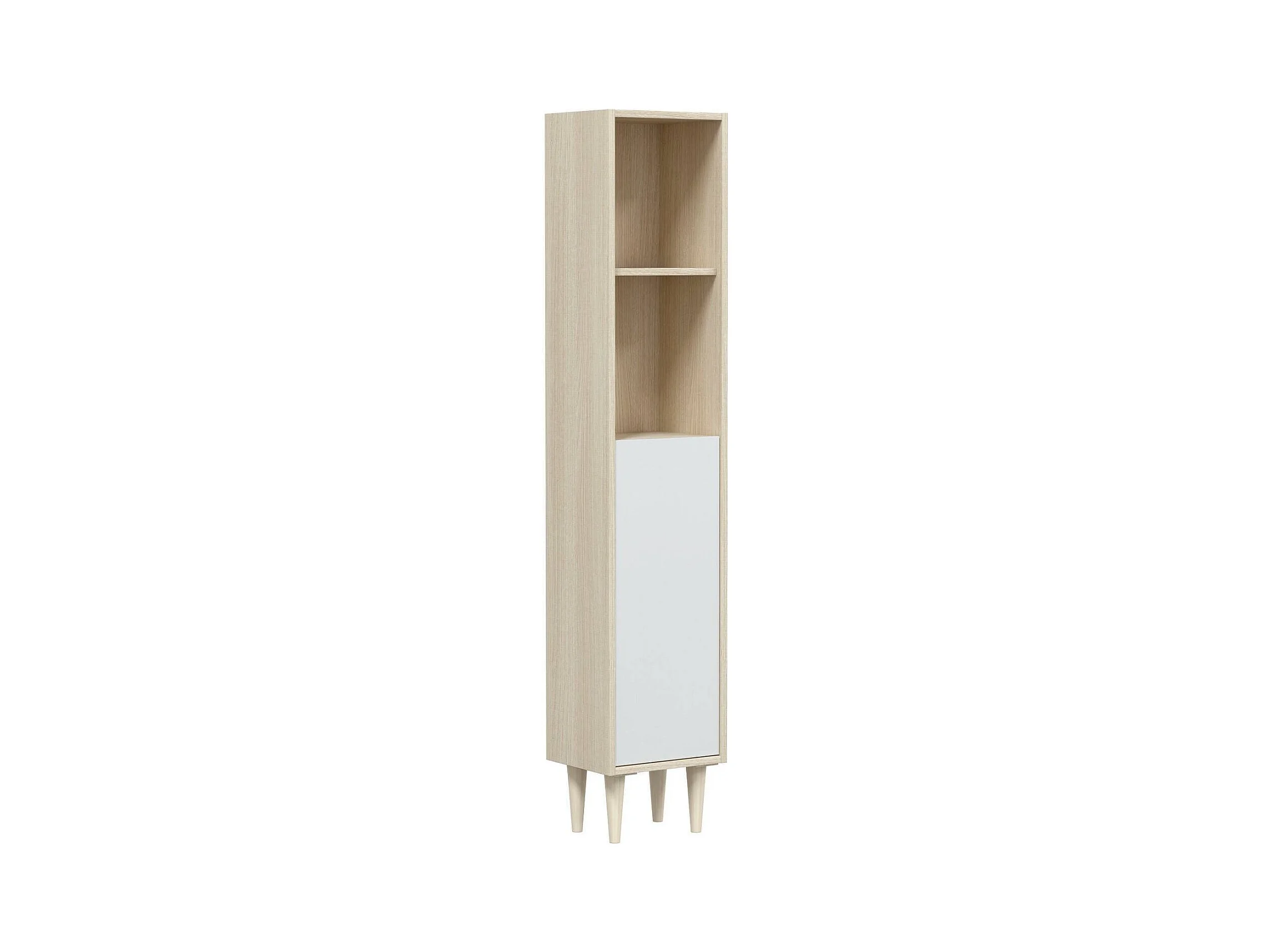 Colonna bagno Winooski, Pensile bagno con 1 anta, Armadio alto, 30x25h150 cm, Rovere e Bianco lucido