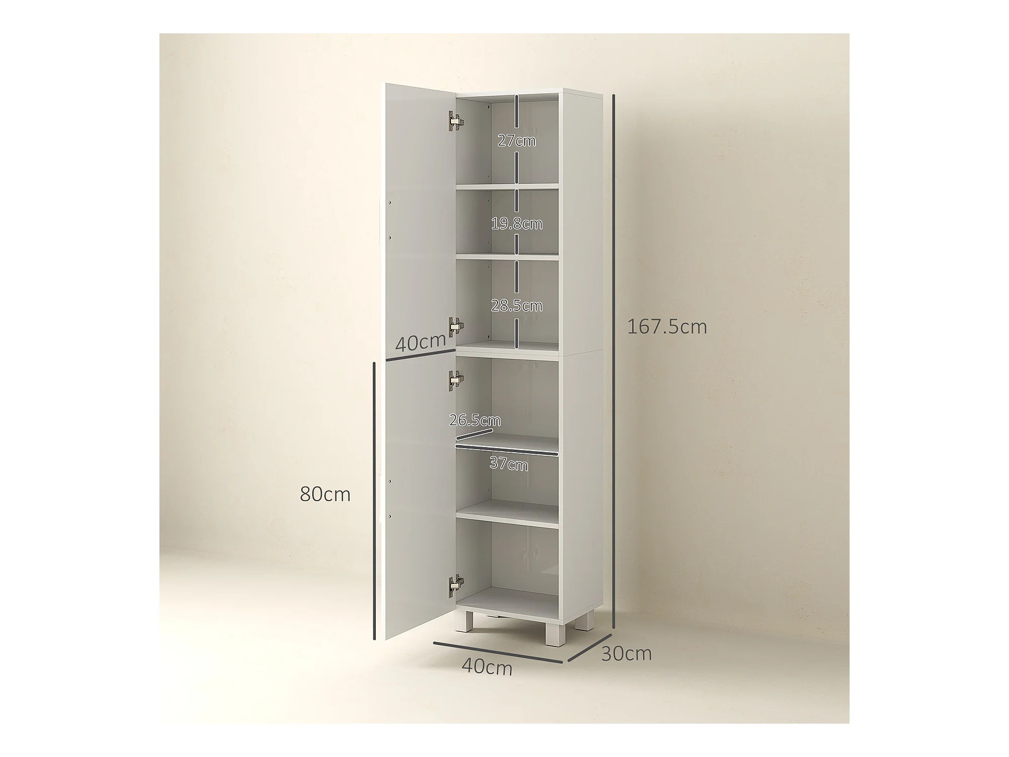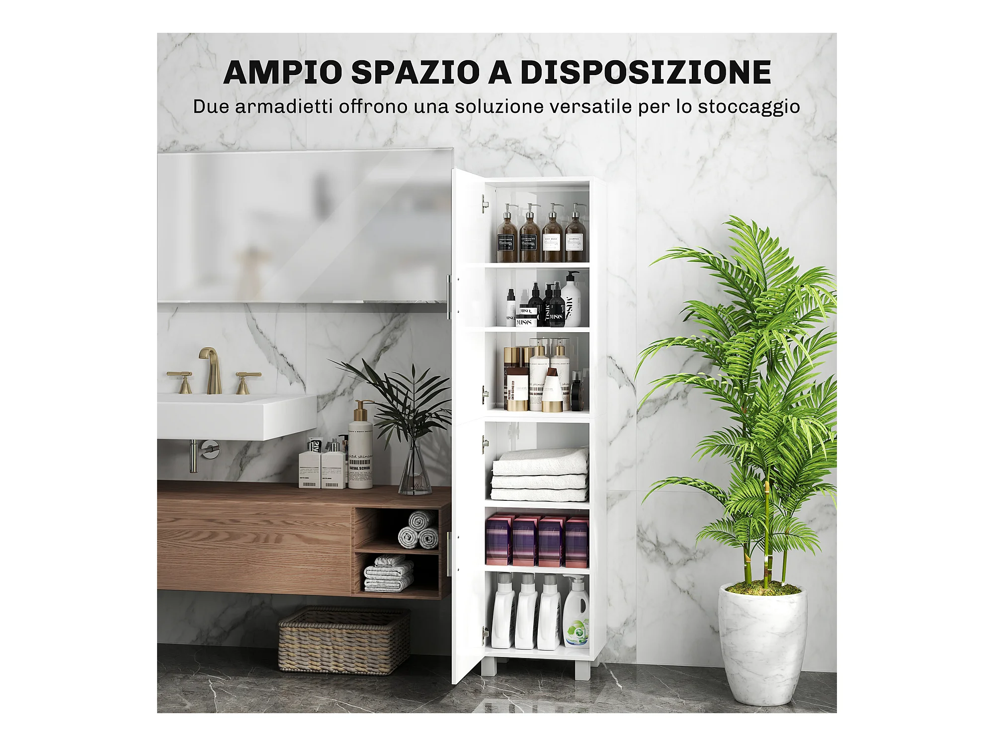Colonna bagno moderna con 2 armadietti e ripiani regolabili bianco