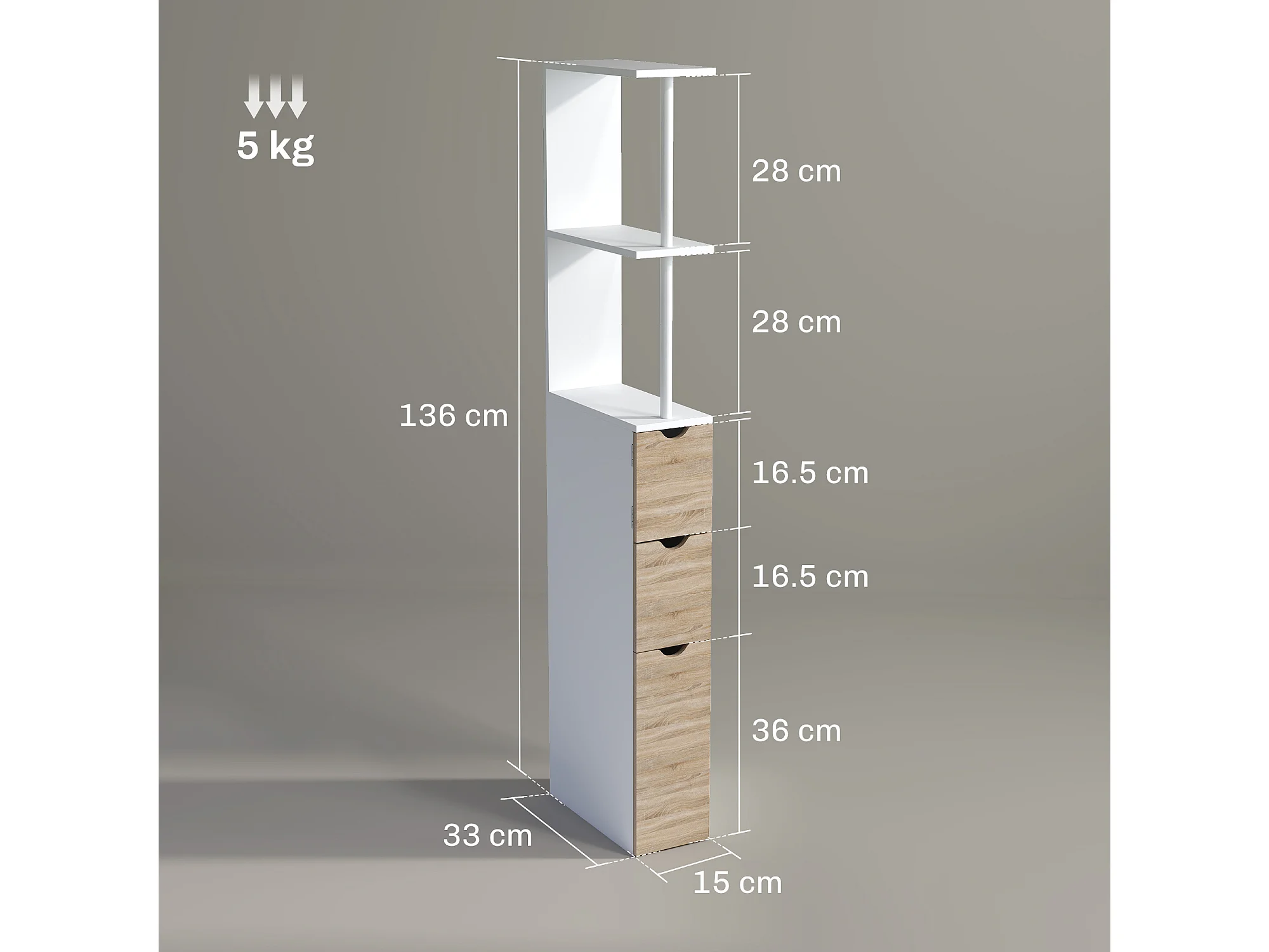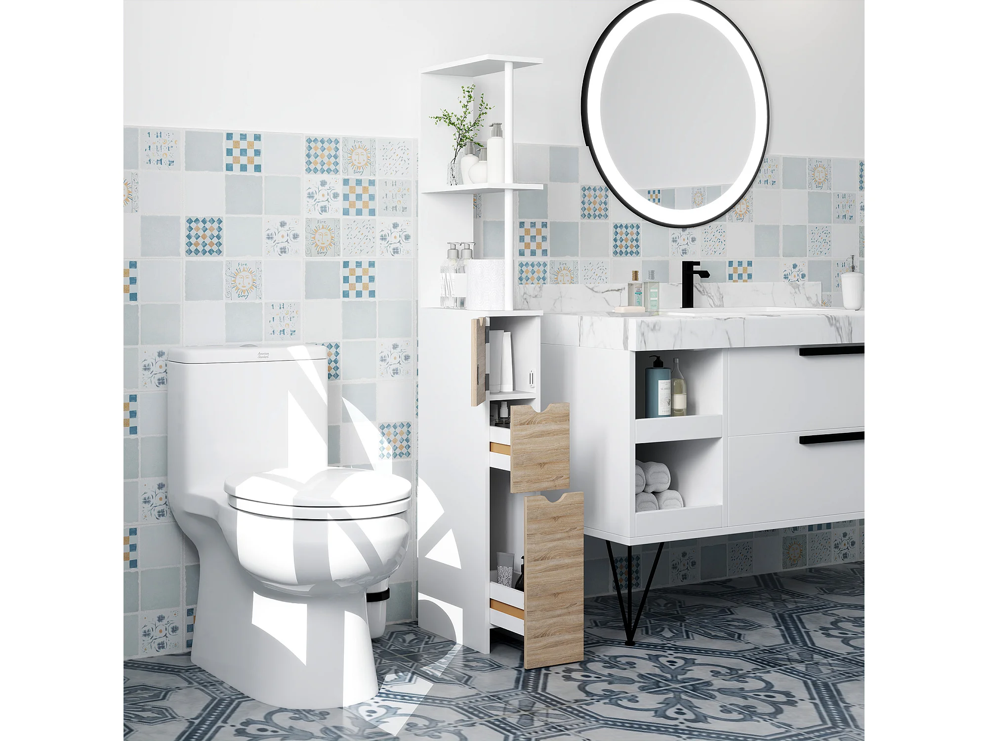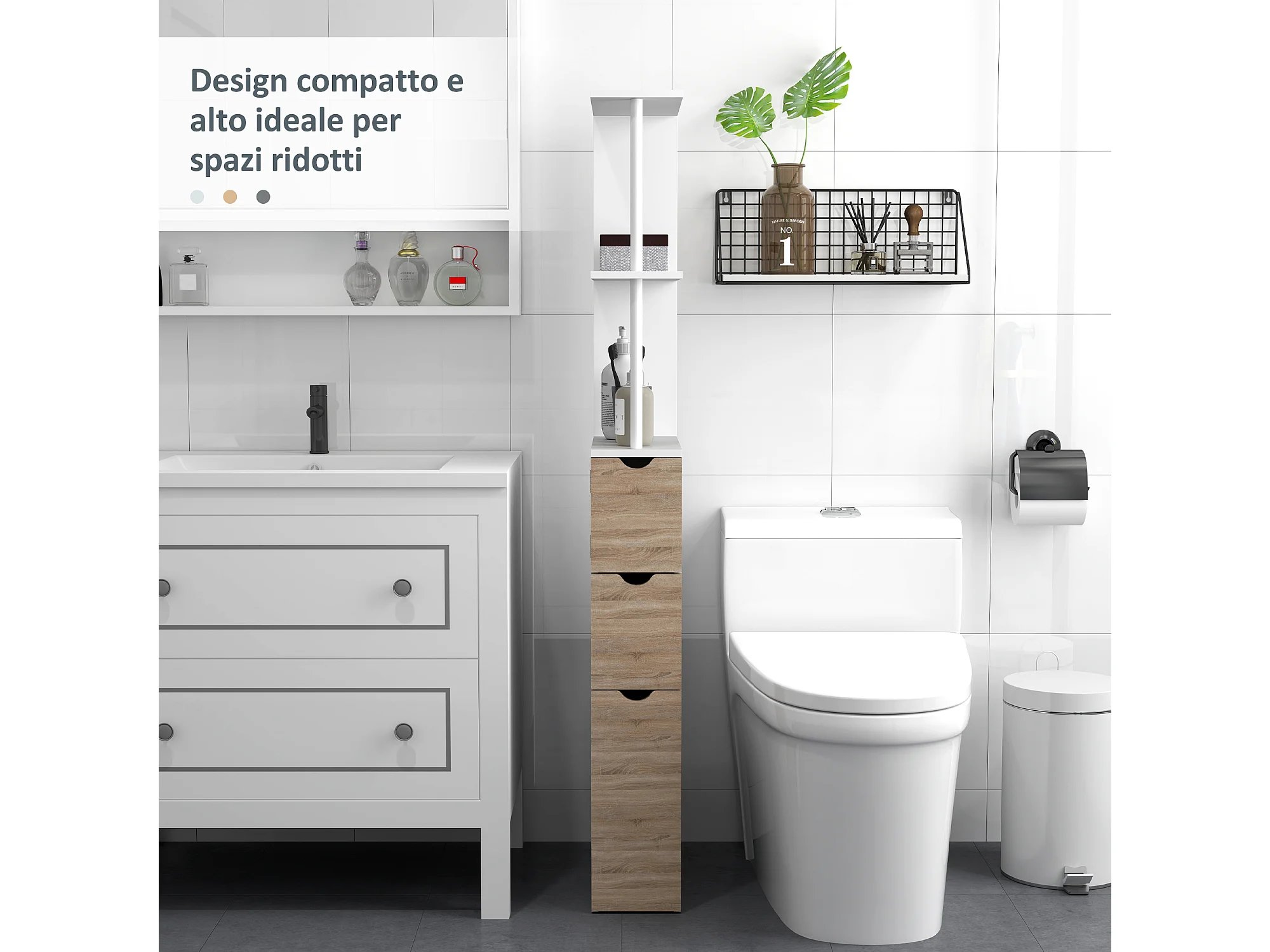 Colonna bagno salvaspazio con armadietto 2 cassetti e 2 ripiani legno