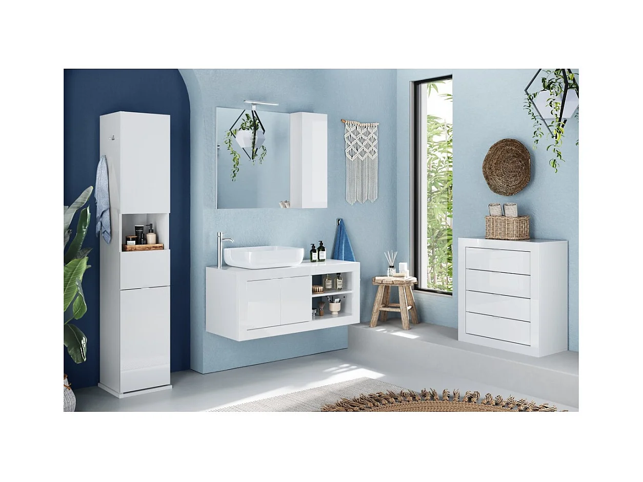 Mobile da bagno sospeso ISORA – 1 porta – Bianco lucido – Design moderno