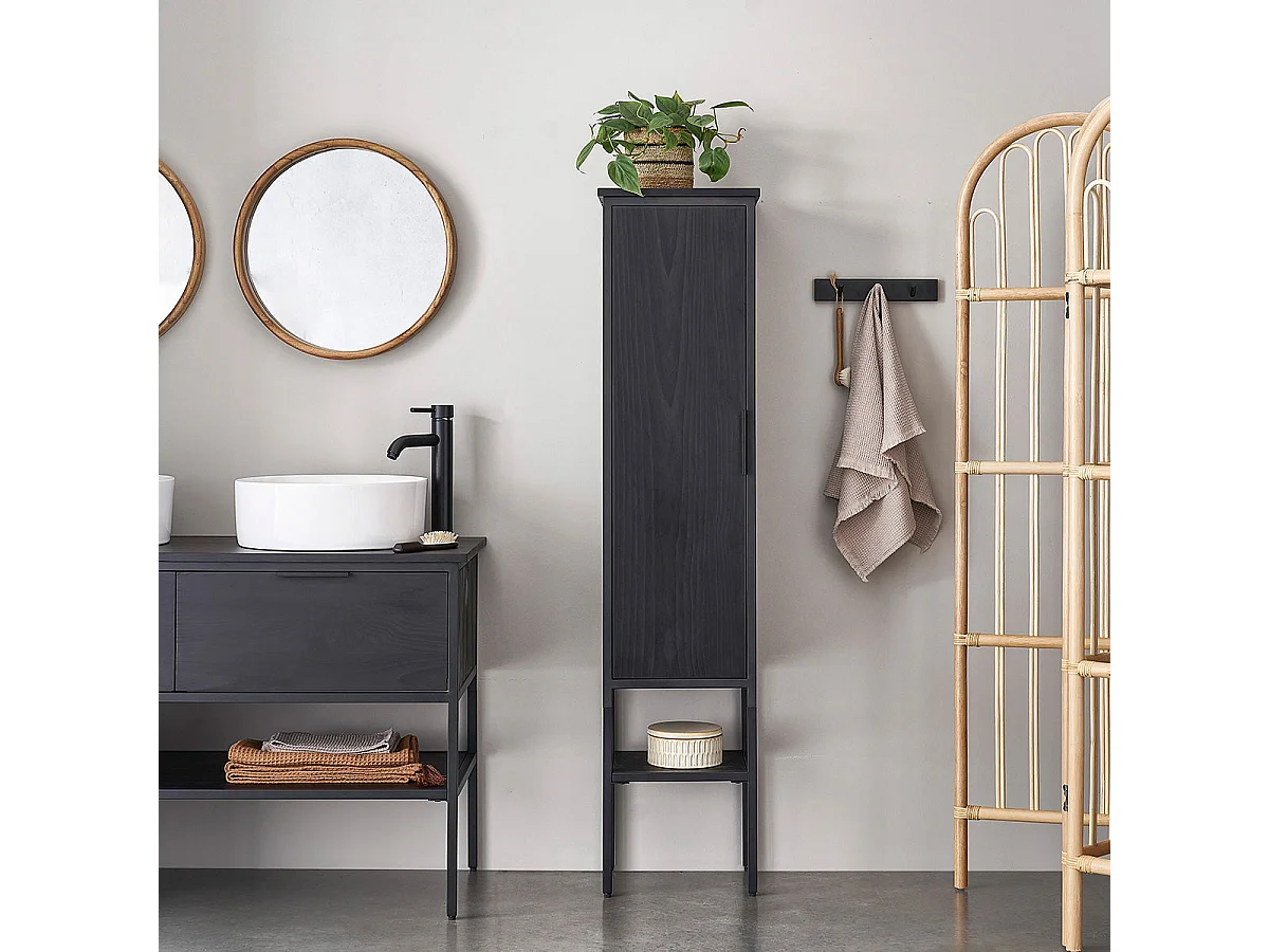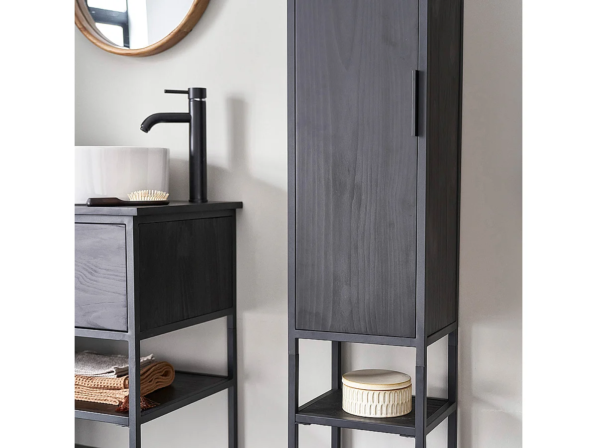 Mobile bagno sospeso orizzontale Pawlacz con mensola in rovere craft nero da 80 cm.