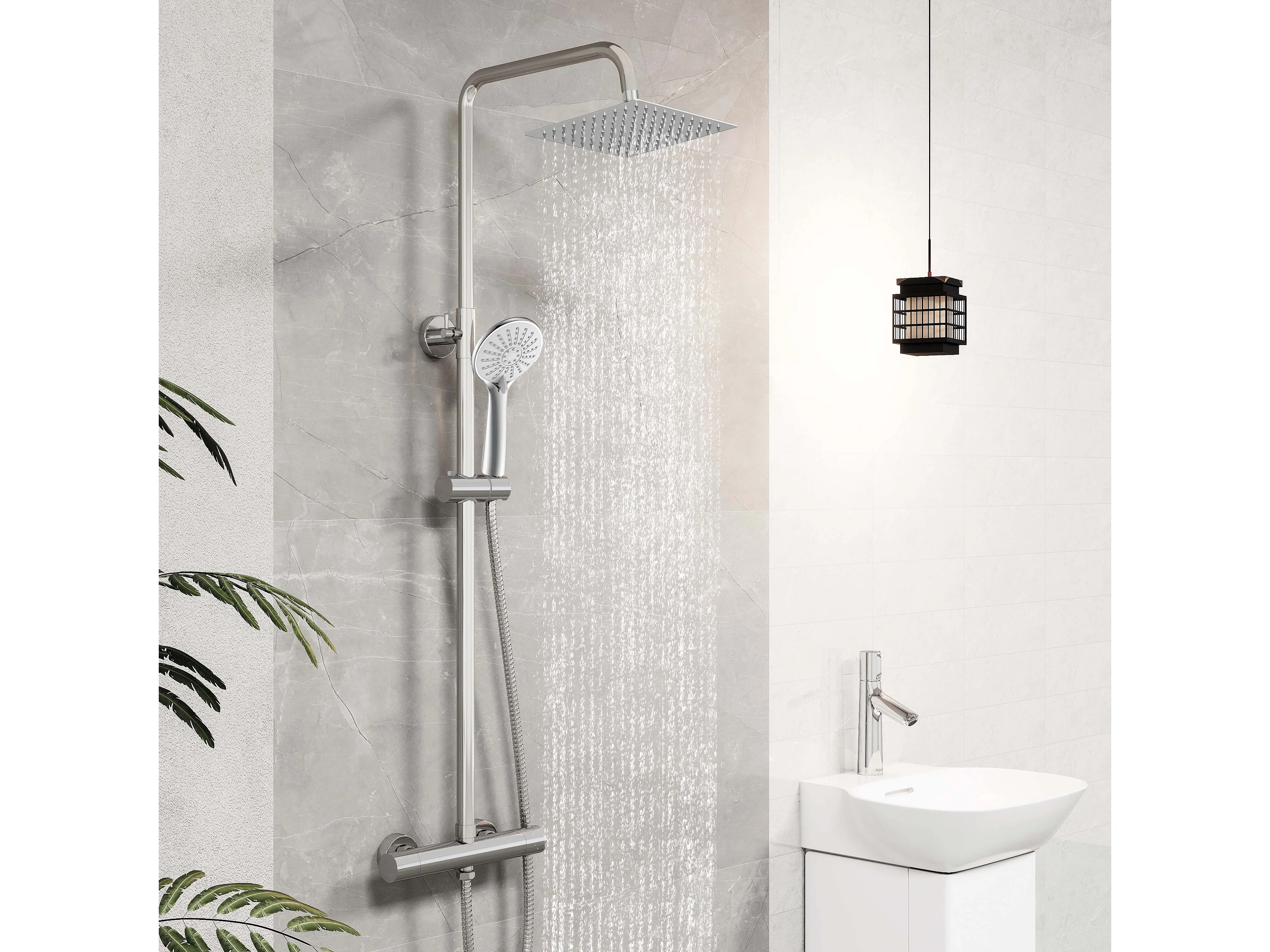 Colonna doccia con miscelatore termostatico, siffione doccia quadrato 25x25cm acciaio inox, cromato