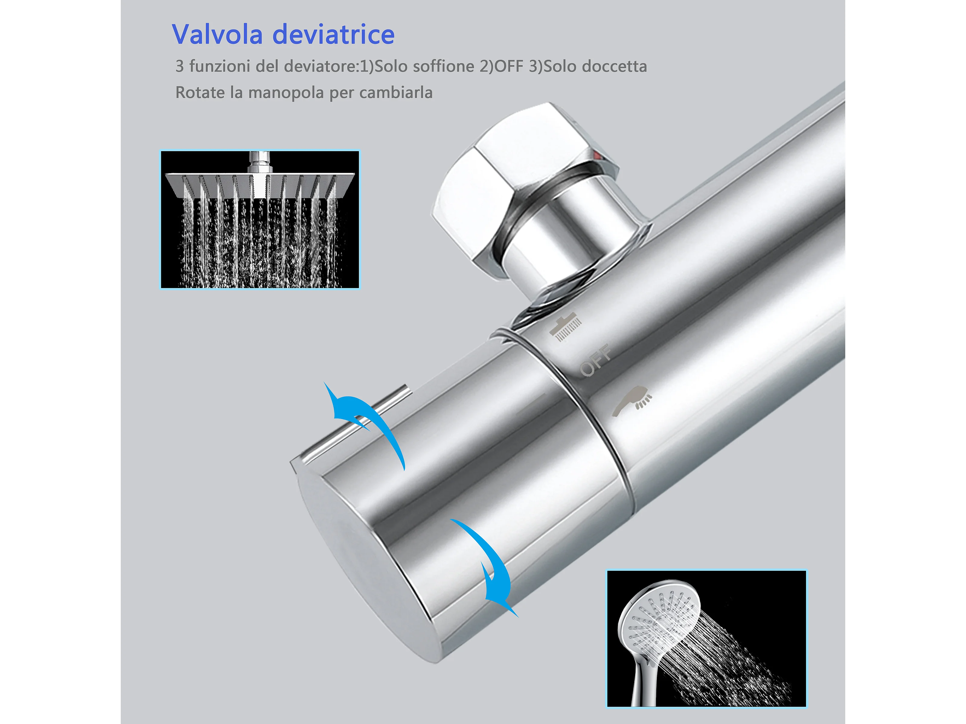 Miscelatore doccia termostatico con manopola in lega di zinco,colonna doccia soffione acciaio inox, cromato
