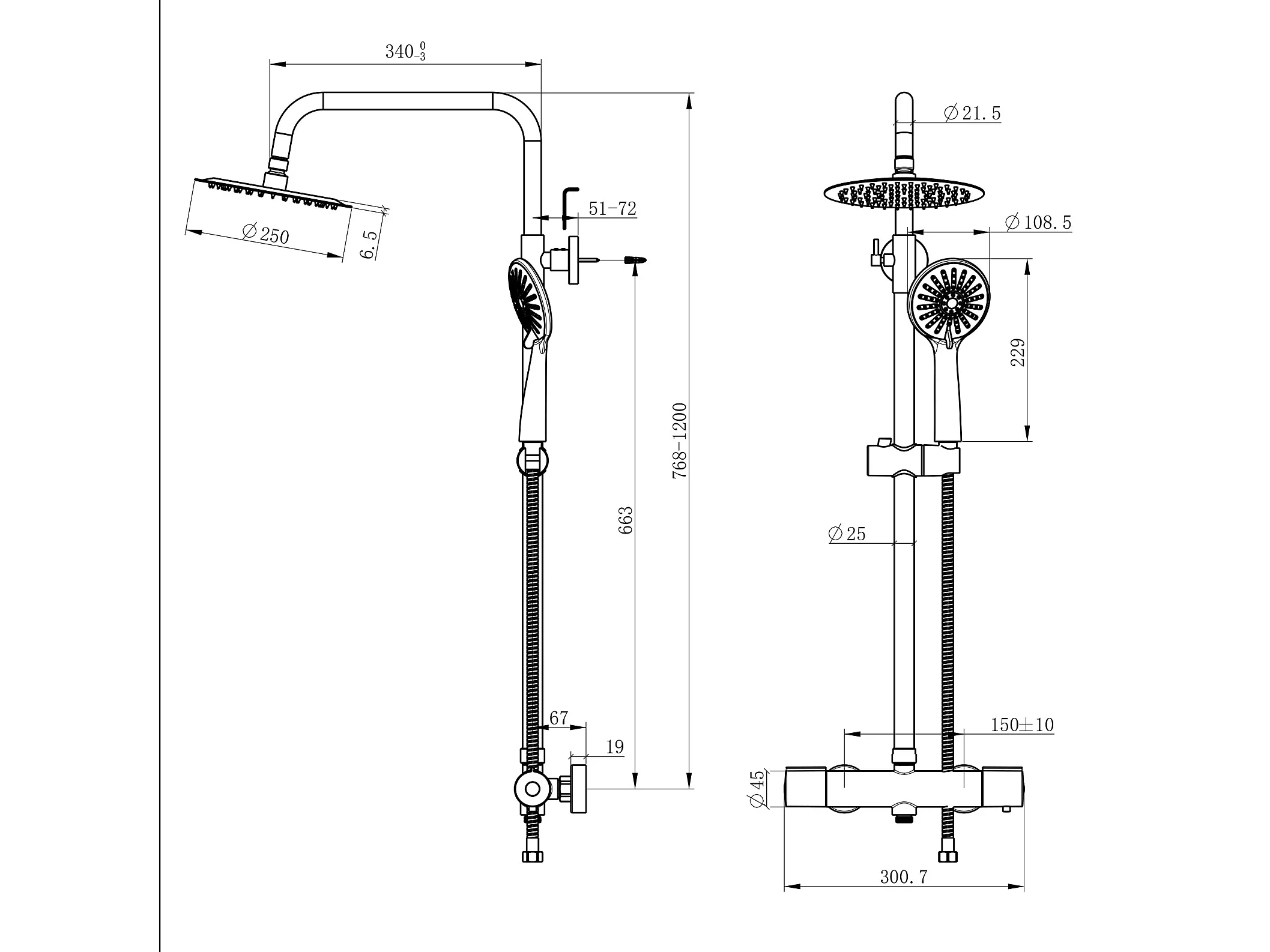 Colonna doccia con miscelatore termostatico,doccia soffione rotondo 25x25cm in acciaio inox, nero opaco