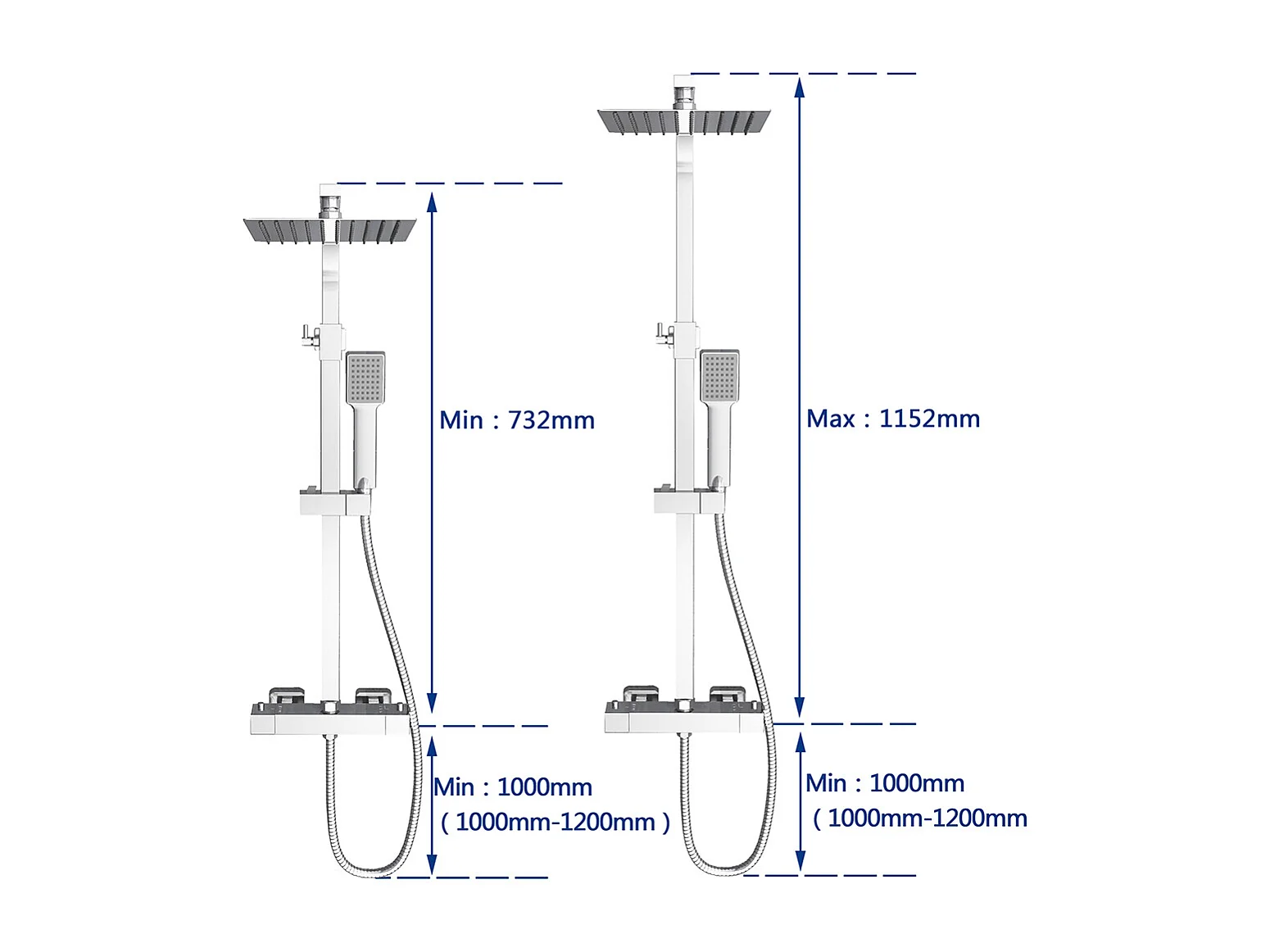 Colonne Doccia Termostatiche, Sistema Doccia con Miscelatore Termostatico a 38℃ e Soffione Quadrato Altezza Regolabile 73-115cm Cromo