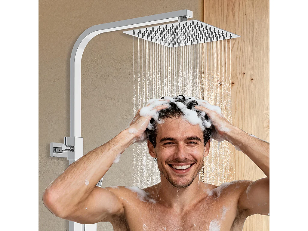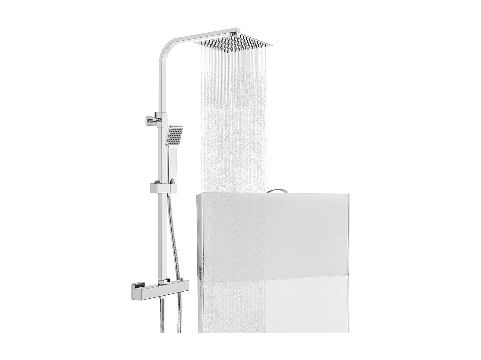 Colonna doccia con miscelatore termostatico, saliscendi doccia quadrato regolabile 73-115cm, cromo