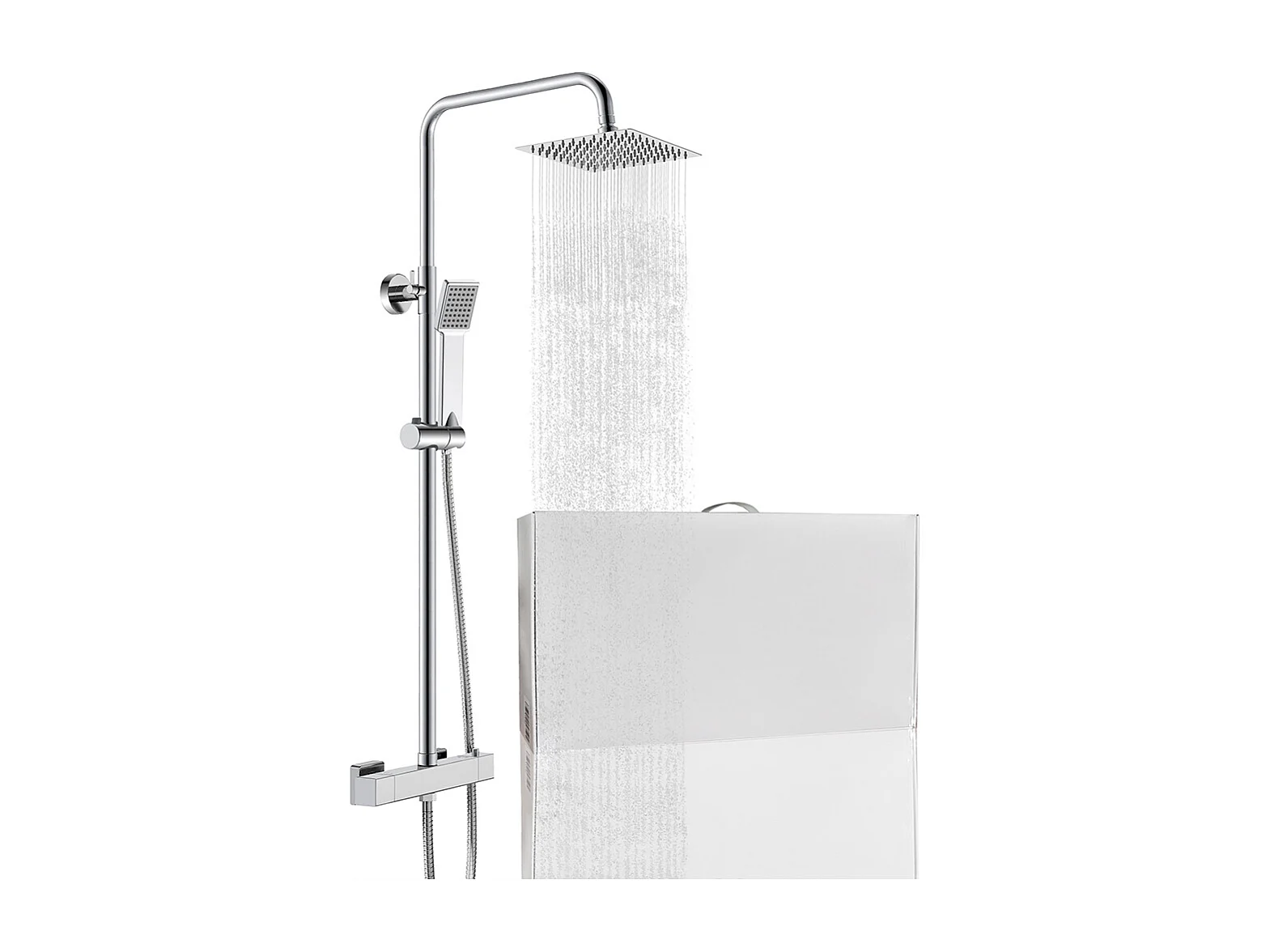Colonna doccia con miscelatore termostatico, saliscendi doccia tondo regolabile 75-125cm, cromo