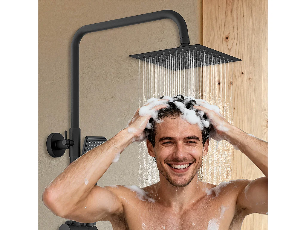 Colonna doccia con miscelatore termostatico, saliscendi doccia tondo regolabile 75-125cm, nero