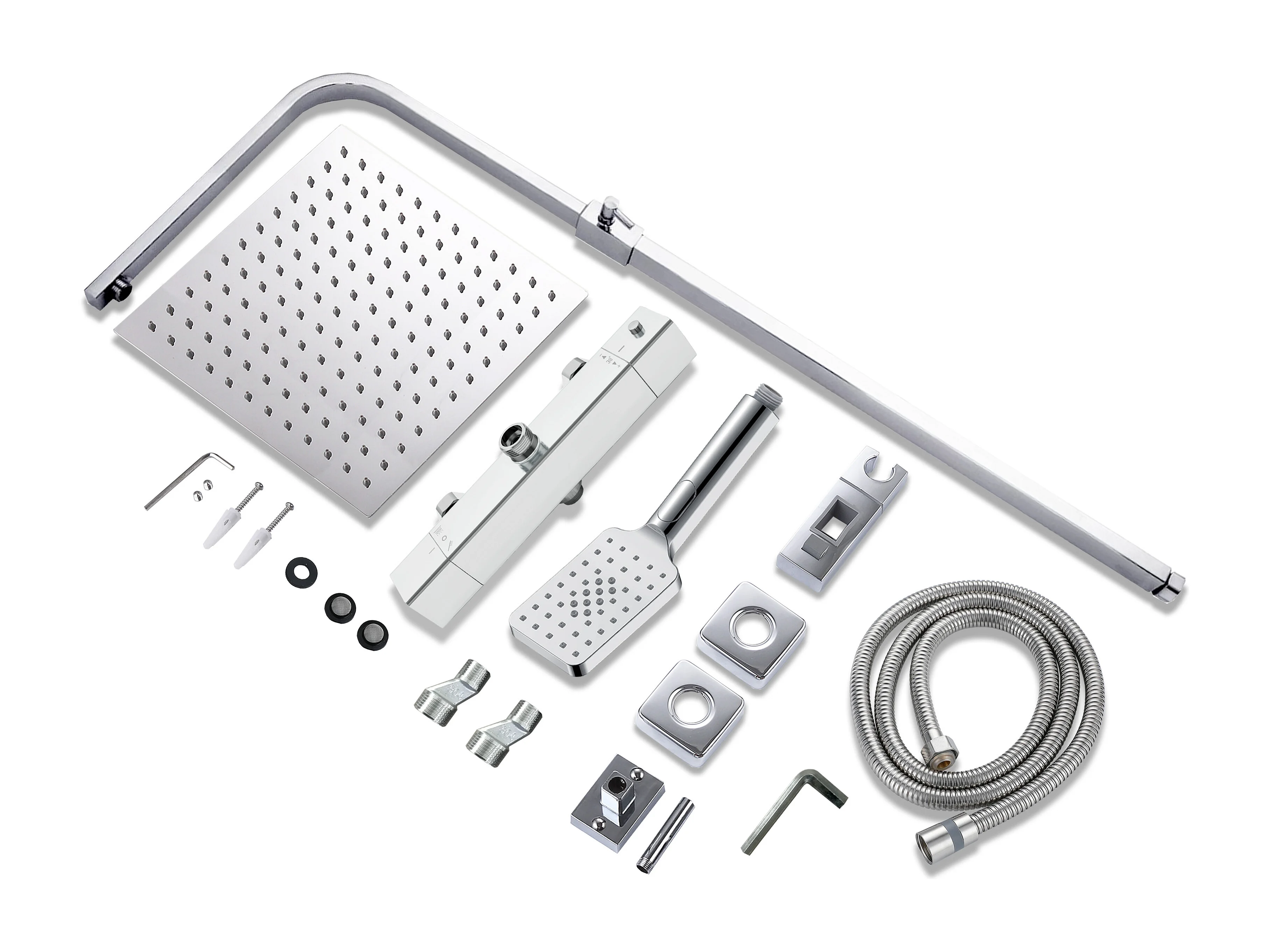 Colonna doccia idromassaggio con rubinetto termostatico, soffione doccia quadrato 20x20cm in acciaio inox, cromato lucido