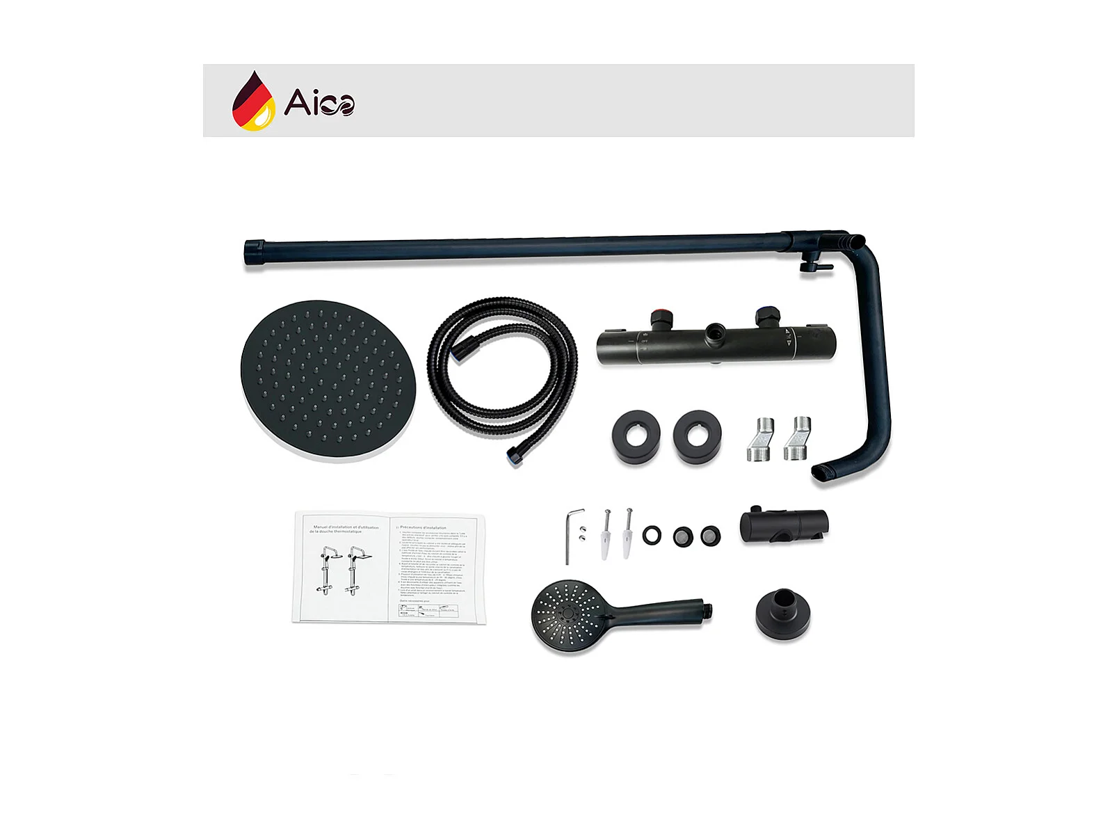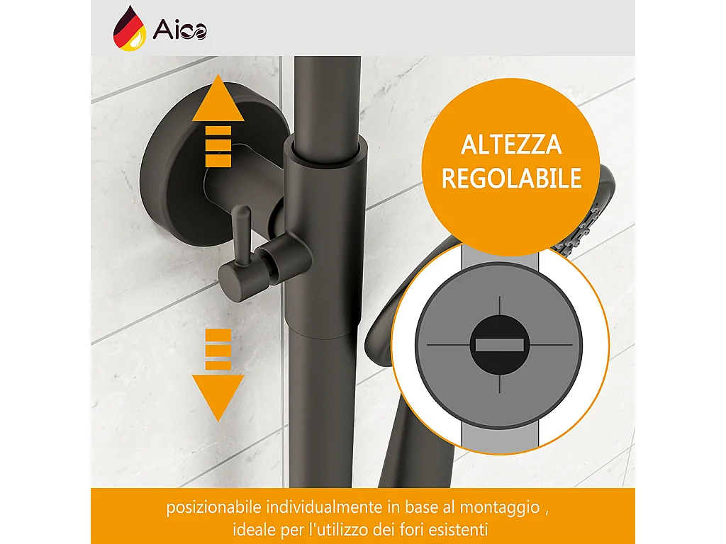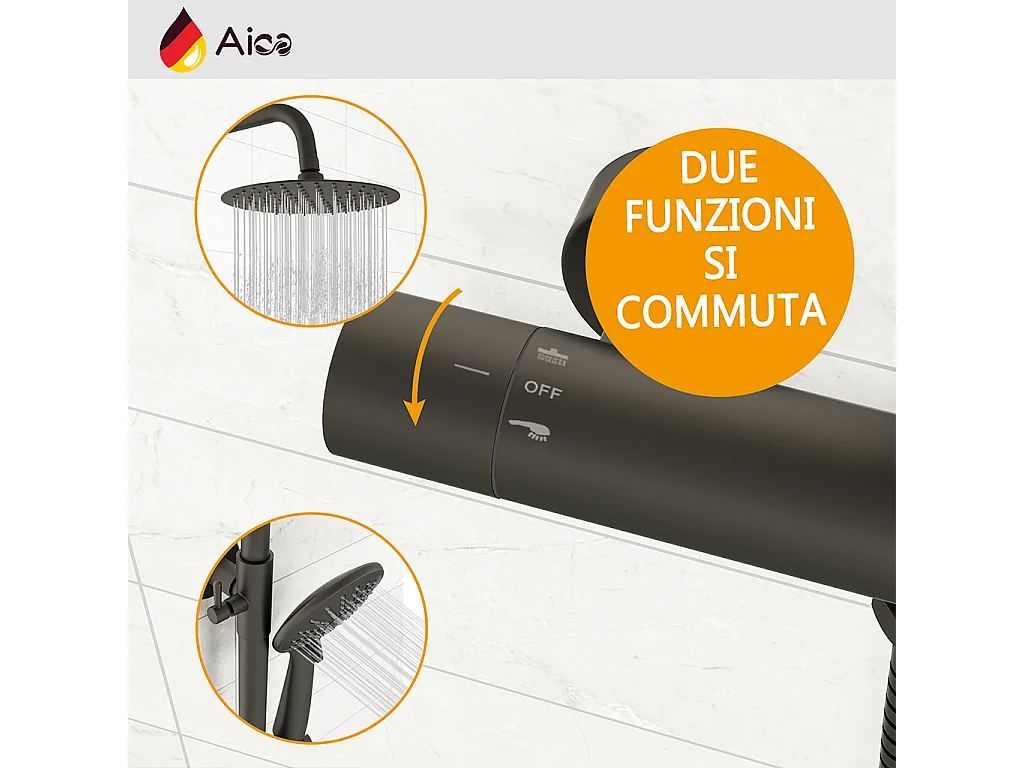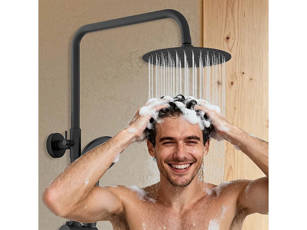Colonna doccia con miscelatore termostatico, soffione doccia rotondo rotante 360°, nero