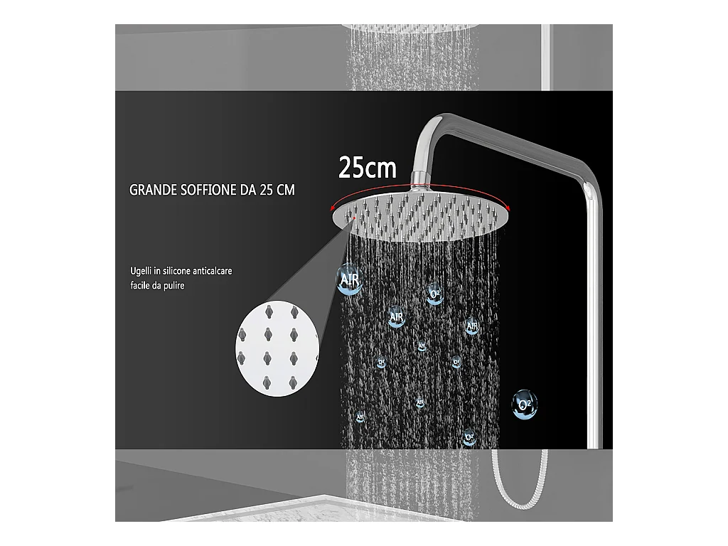 Colonna doccia idromassaggio con rubinetto termostatico, soffione doccia rotondo 25x25cm in acciaio inox, cromato lucido