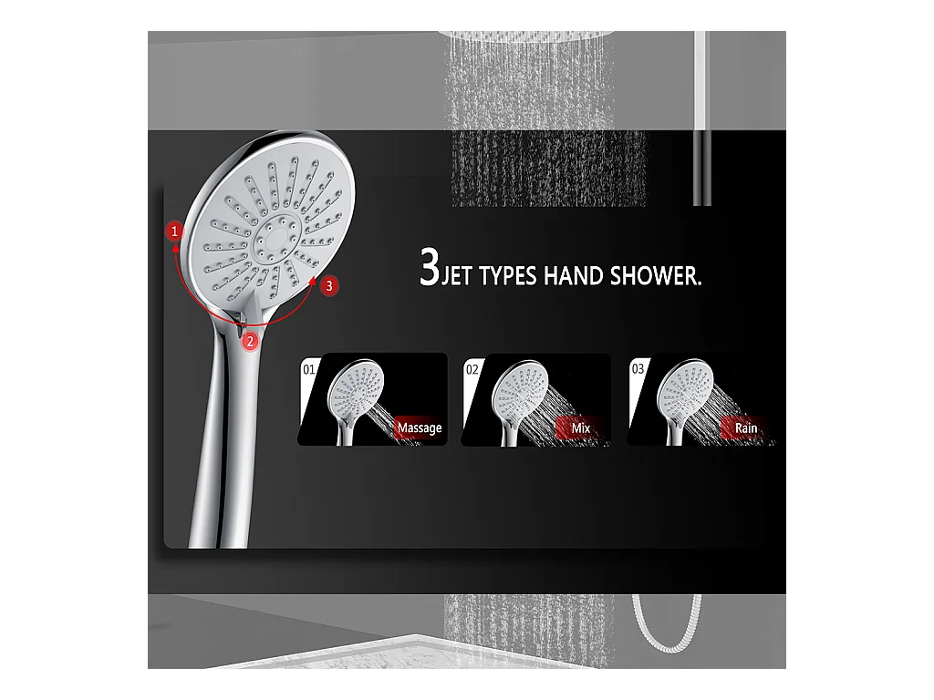 Colonna doccia idromassaggio con miscelatore termostatico, doccetta rotonda a 3 getti, cromato lucido
