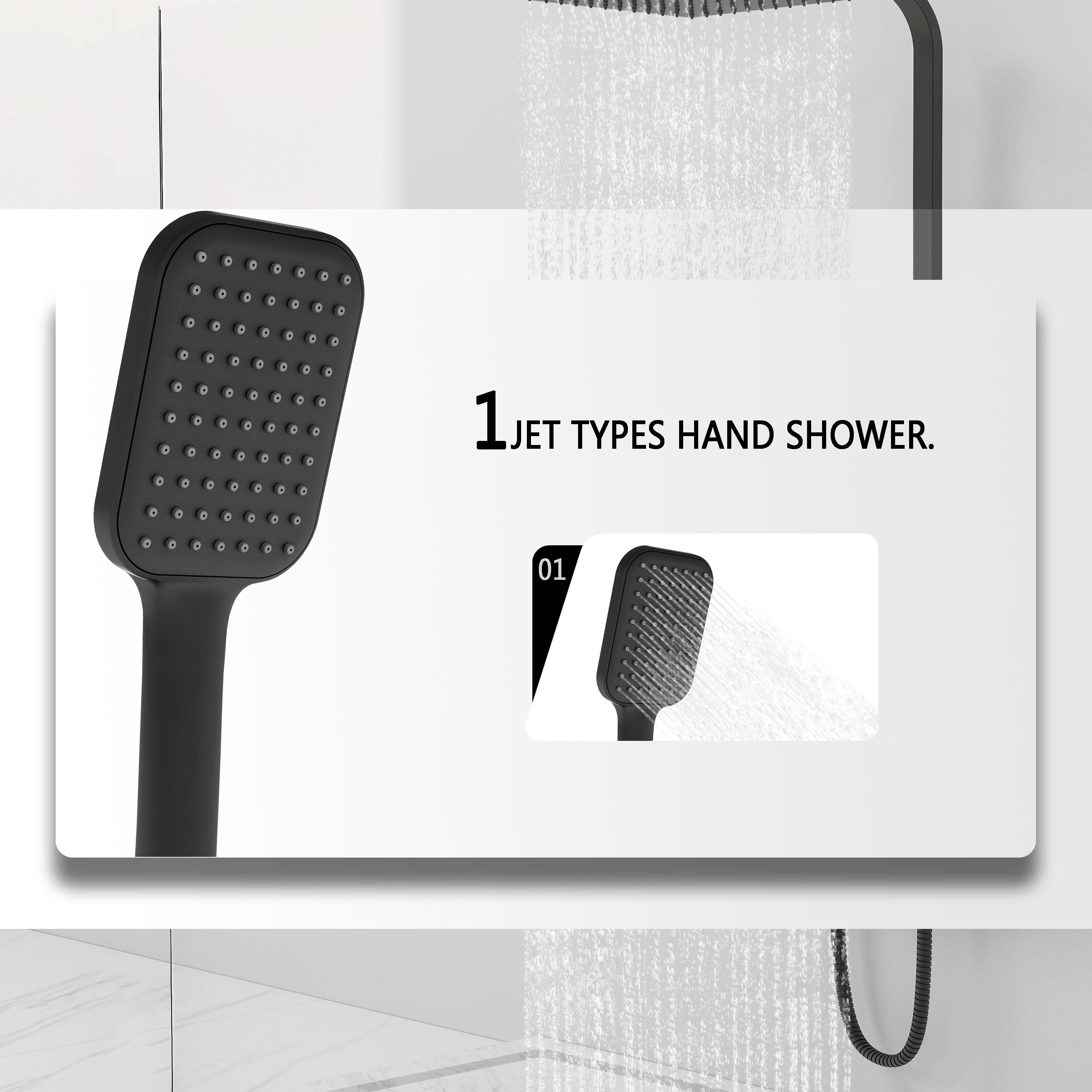 Colonna doccia idromassaggio con rubinetto termostatico, soffione quadrato 25x25cm in acciaio inox, nero opaco