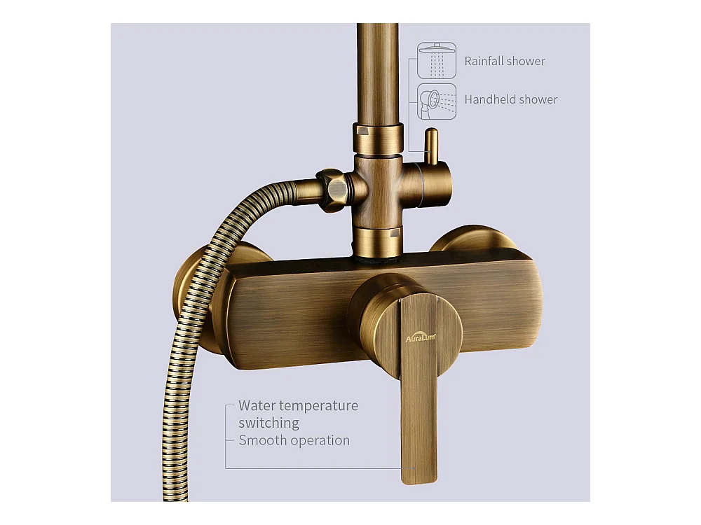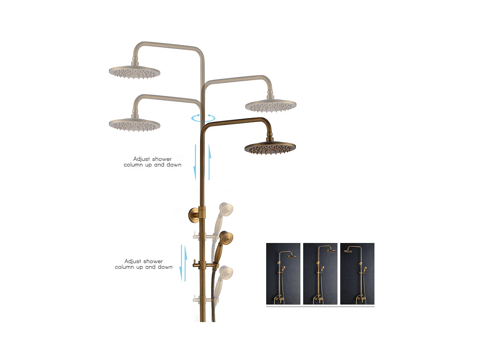 AURALUM MAX Colonna doccia in ottone bronzo retrò,Set doccia con miscelatore meccanico,Sistema doccia regolabile in altezza per bagno