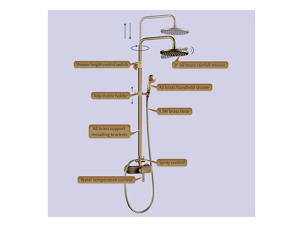 Colonna doccia in laitoN Bronzo Retro,Set Doccia con Miscelatore Meccanico, Sistema Doccia Altezza Regolabile per Bagno
