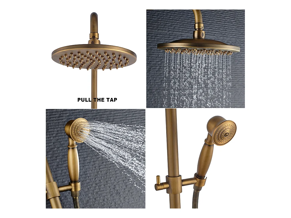 Colonna Doccia Meccanica Set Doccia a Doppia Maniglia Retro Sistema Doccia Regolabile Kit di DOuche in ottone antico finitura bronzo