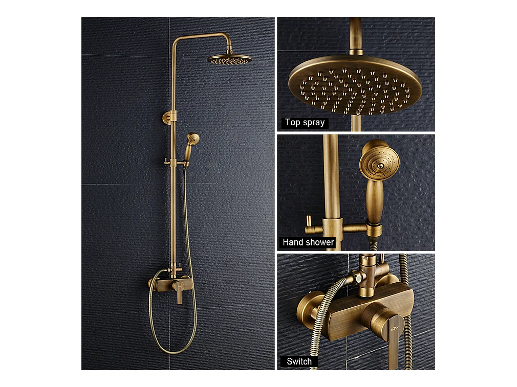 Colonna doccia in laitoN Bronzo Retro,Set Doccia con Miscelatore Meccanico, Sistema Doccia Altezza Regolabile per Bagno