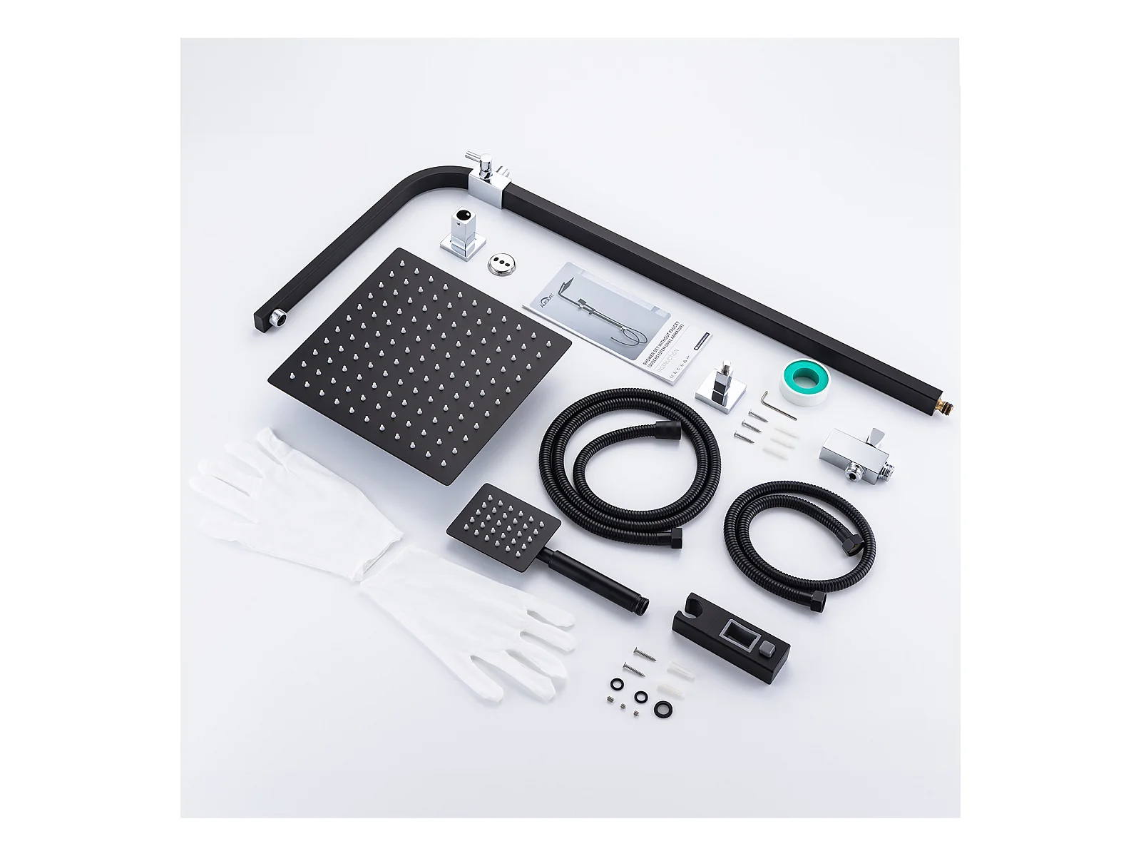 Colonna Doccia Nera Senza Miscelatore Sistema Doccia con Doccia a Mano/Soffione Doccia Quadrata 10 Pollici/Altezza Regolabile 690-1130 mm,Modello UE