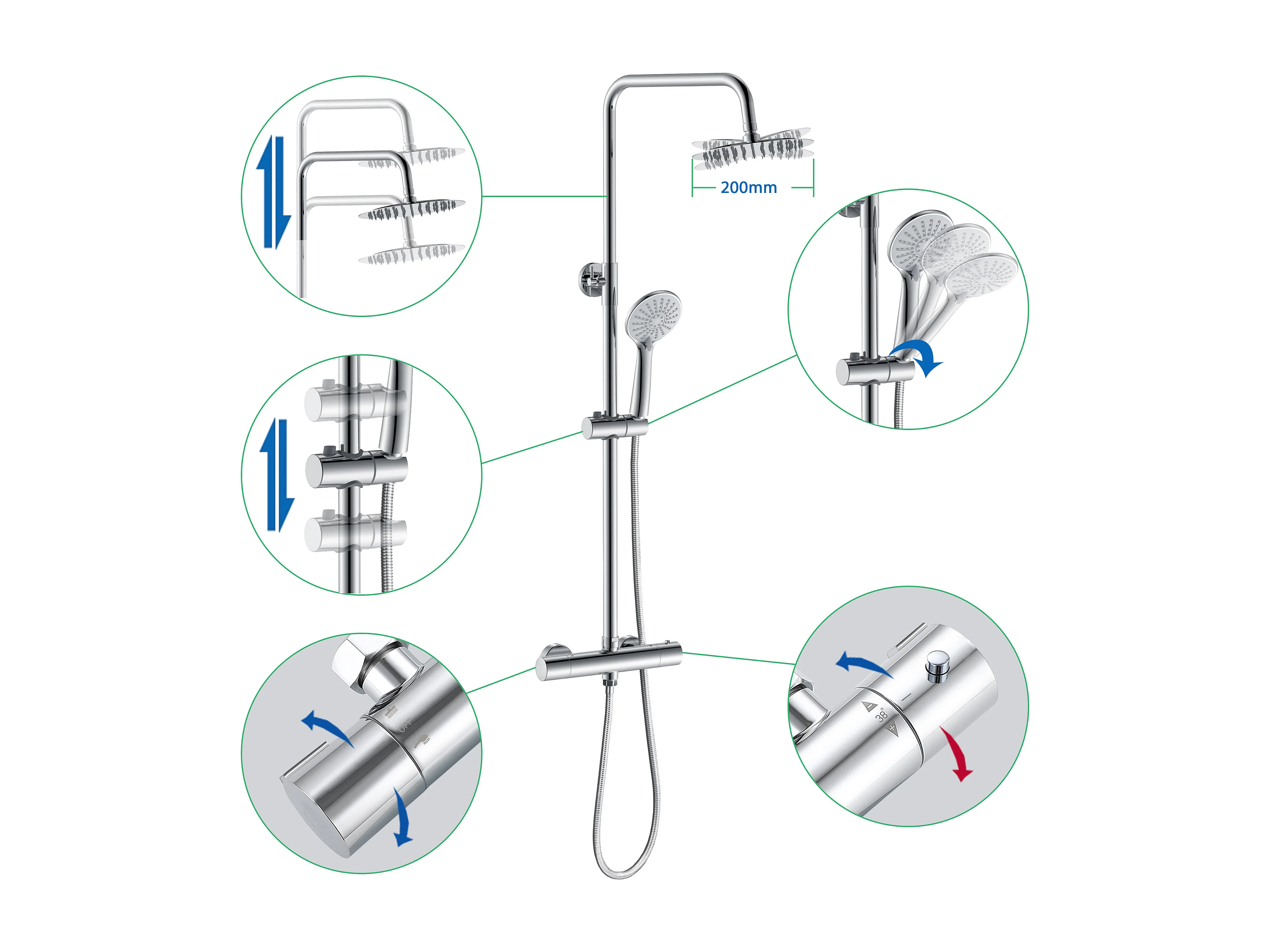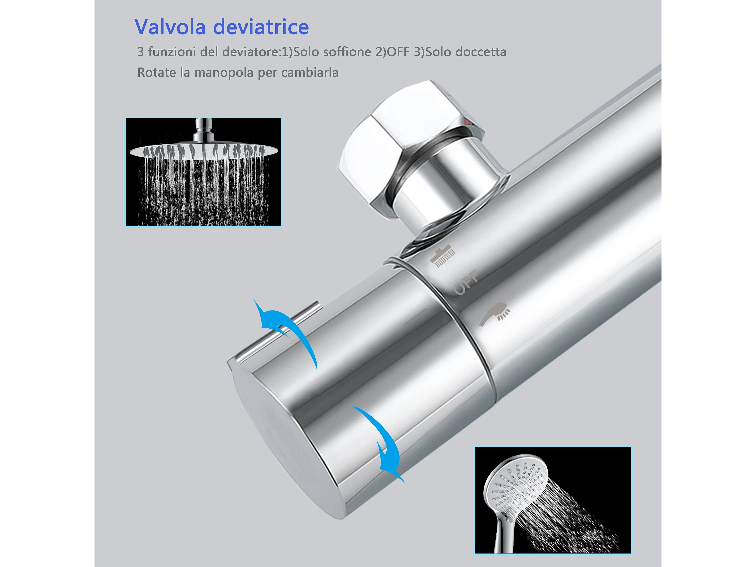 Miscelatore doccia termostatico con manopola in lega di zinco,colonna doccia soffione acciaio inox, cromato