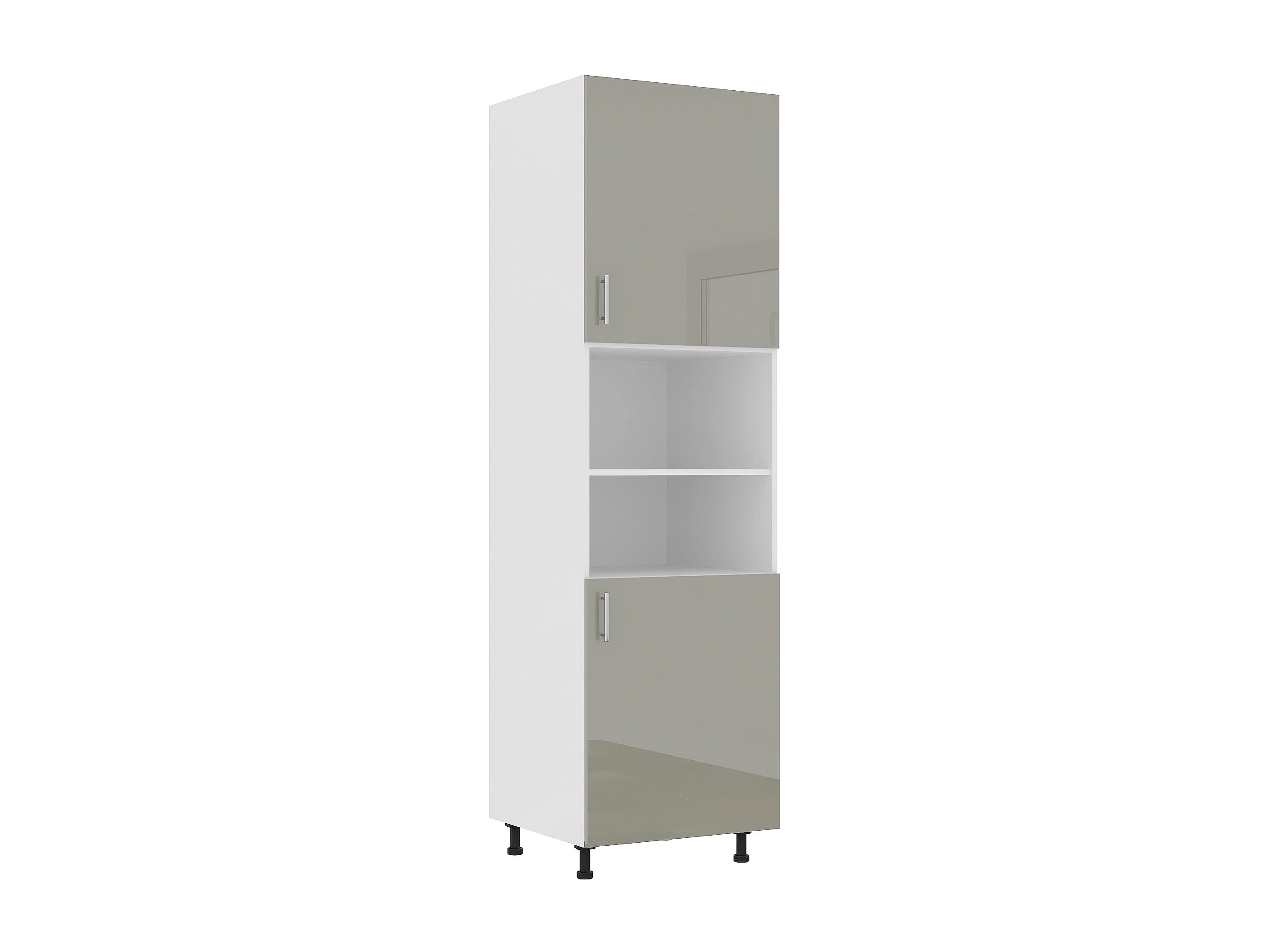 Colonna haaus Karo, 2 ante, con vano per forno, Grigio Lucido/Bianco, MDF, 60 x 50 x 200 cm