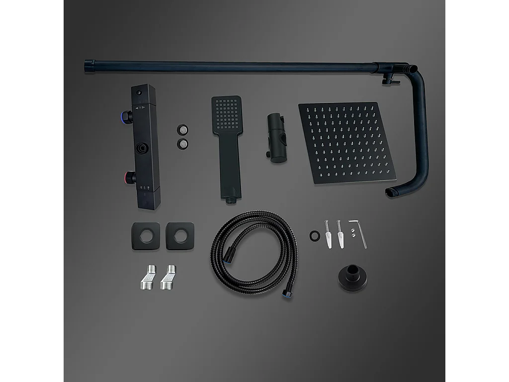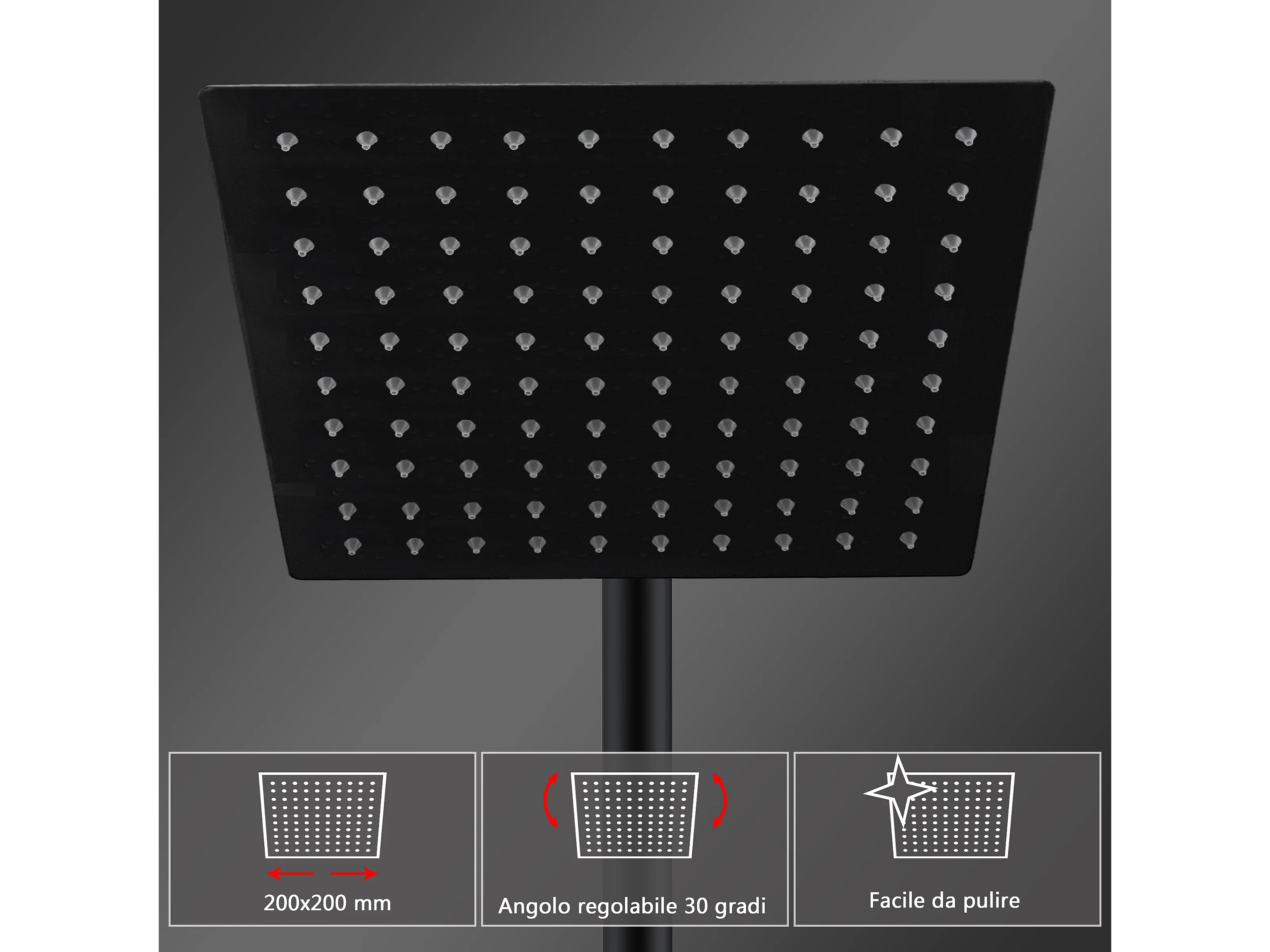 Colonne doccia nero, soffione doccia quadrato 20x20cm acciaio inox, miscelatore termostatico doccia rettangolo antiscottature