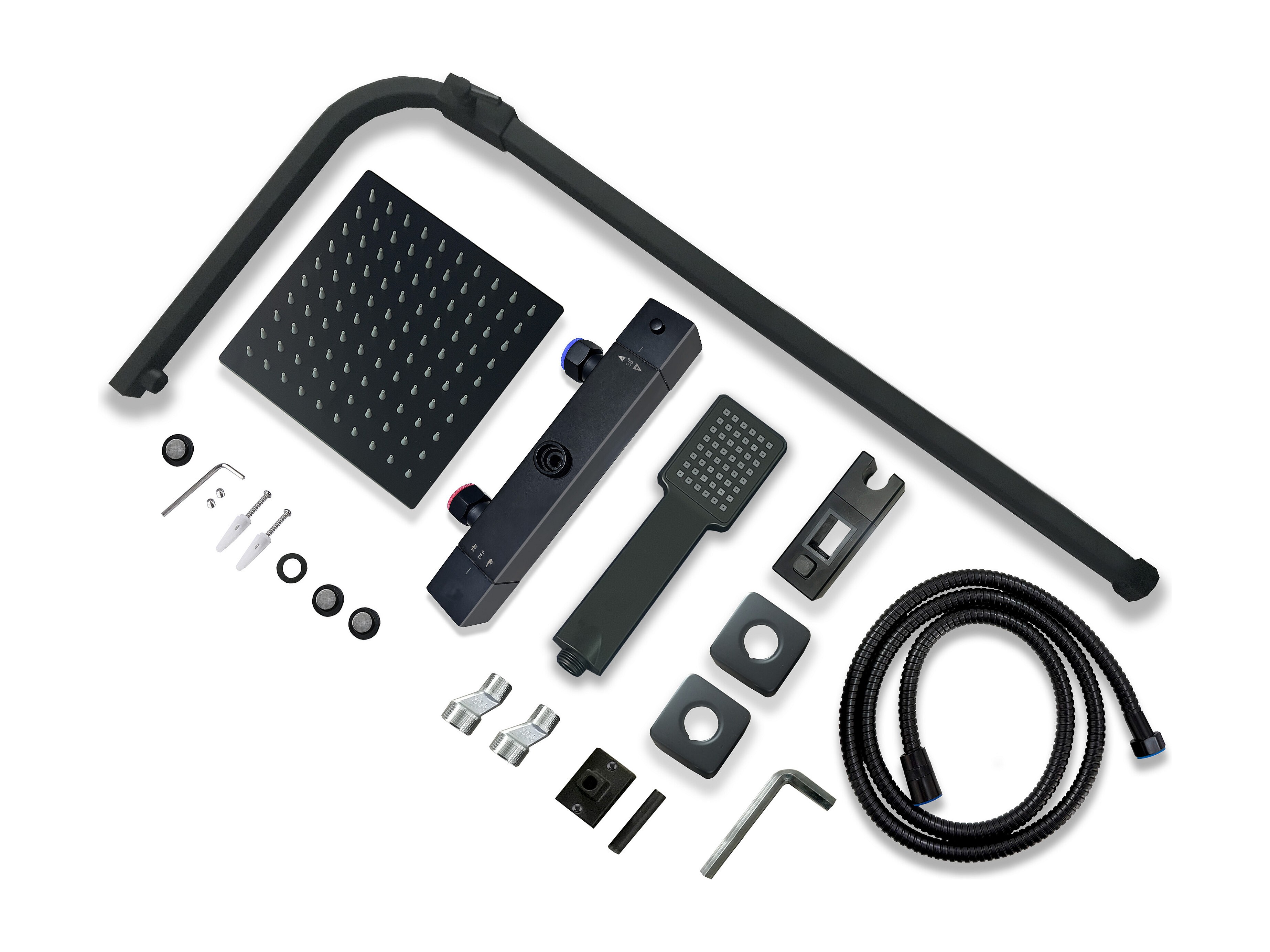 AICA Colonna doccia a ponte con soffione quadrato 20x20cm, sistema doccia con miscelatore, nero opaco