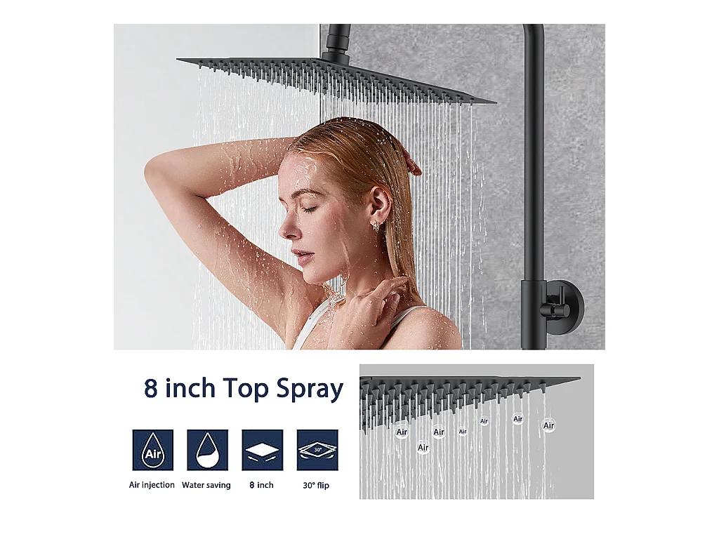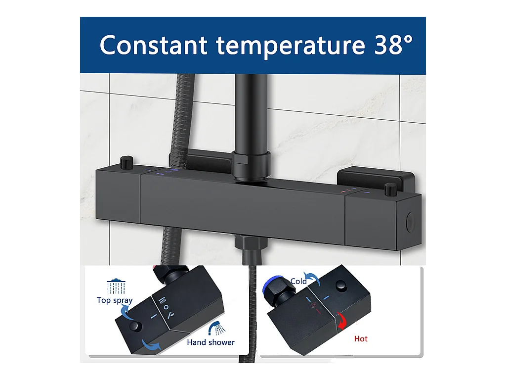 Colonna doccia termostatica, Aica ITALY soffione doccia 20*20CM, regolabile in altezza 75-115cm, set doccia con miscelatore, nero